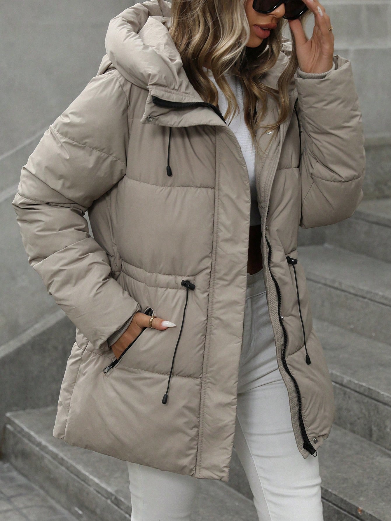 Aveloria Fashionable Casual Adjustable Waist Quilted Mid-Length Hooded Padded Padded Coat Clothes Winter