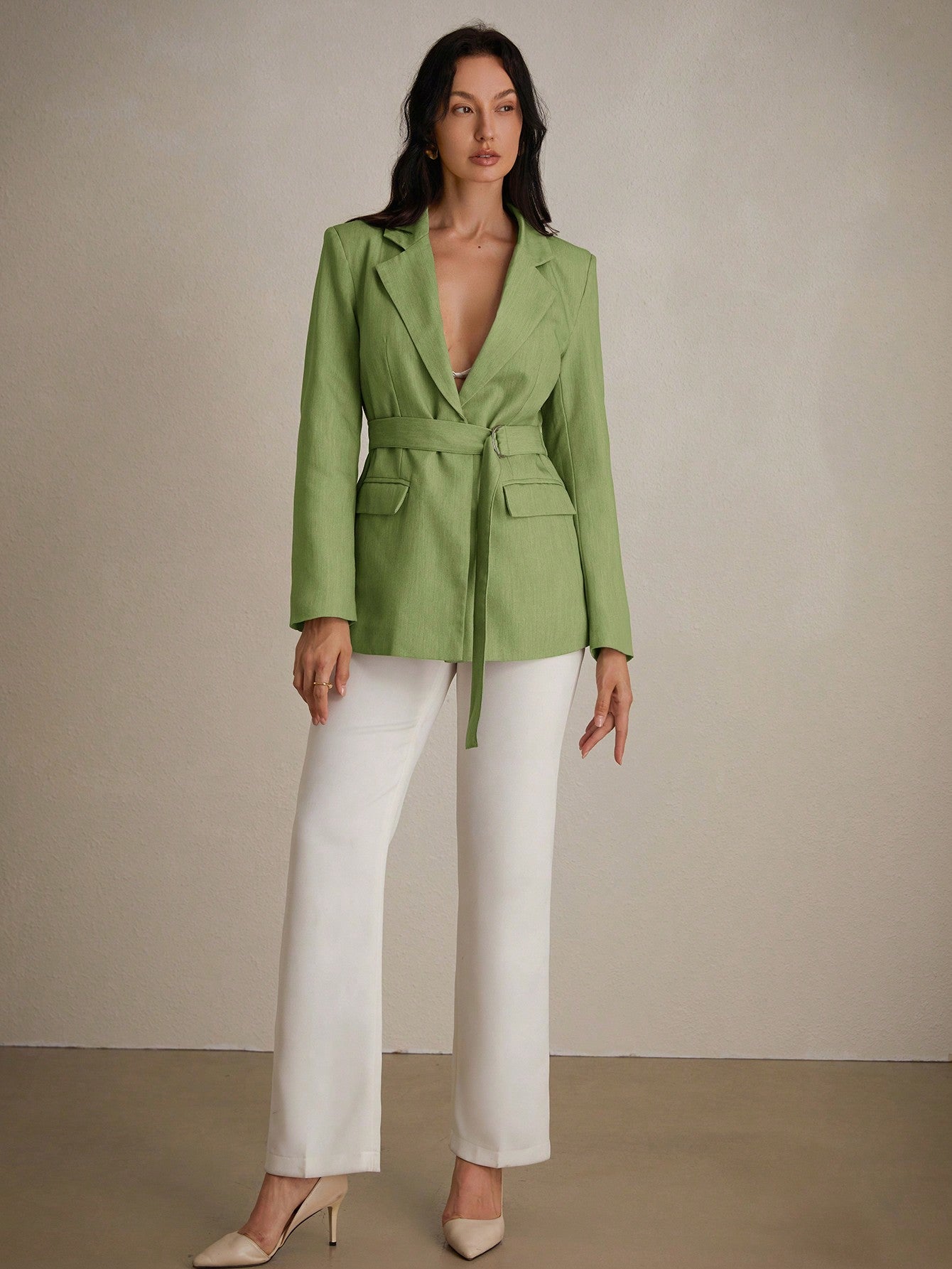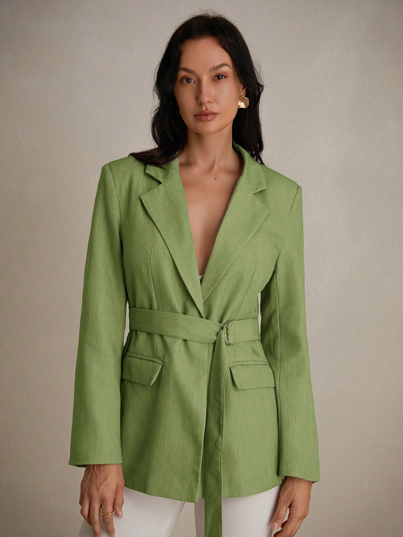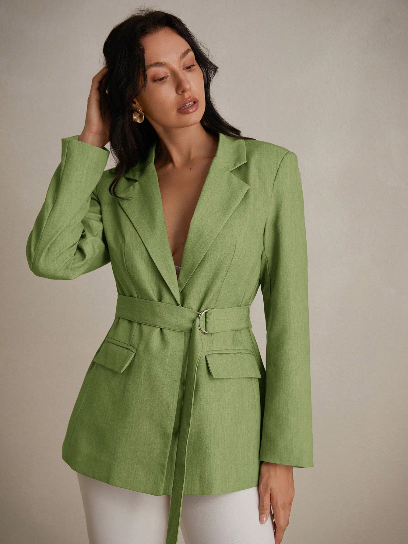Aveloria Modichic High-End Commuting Fashionable French-Style Simple Business Blazer With Belted Waist