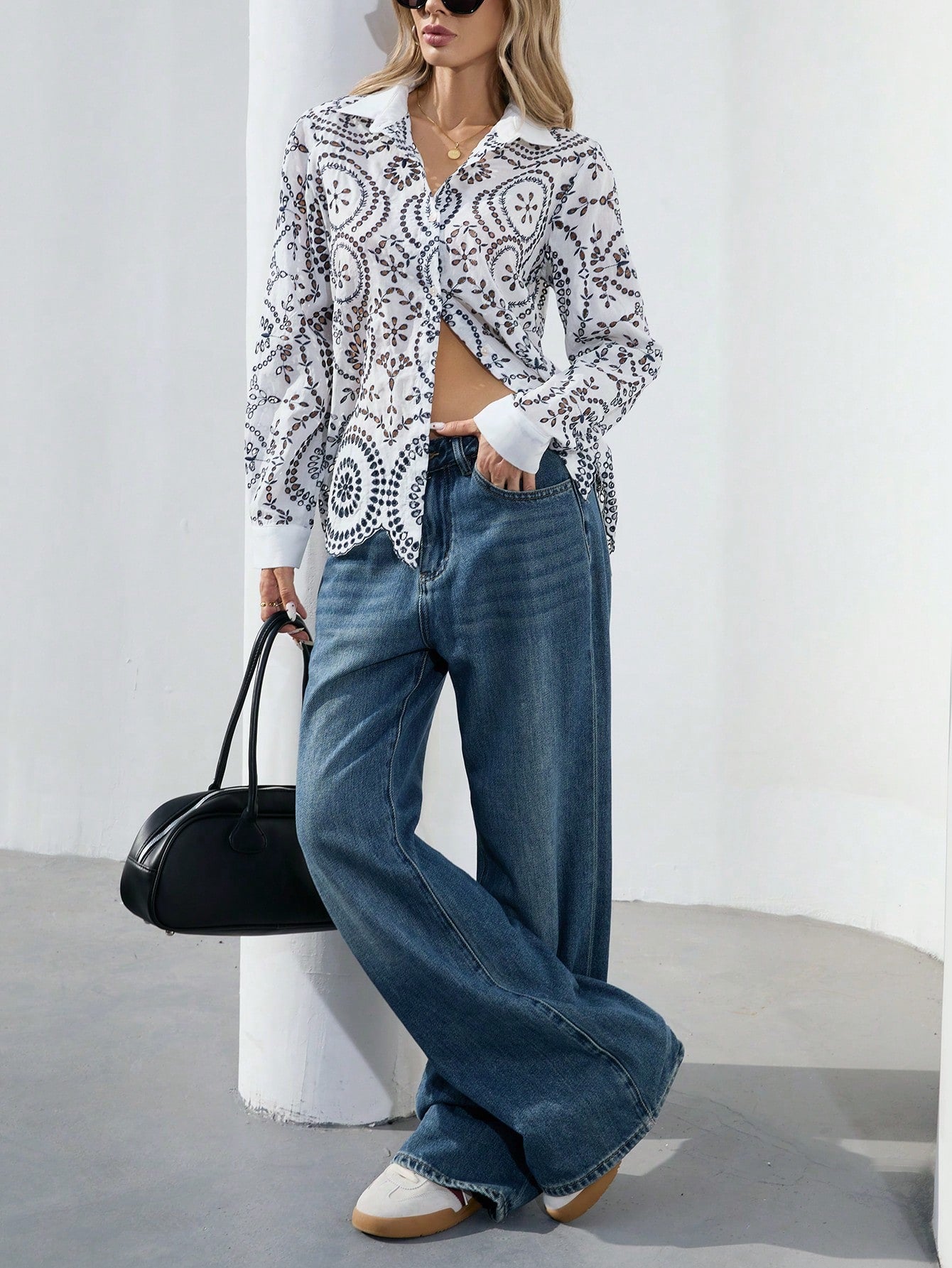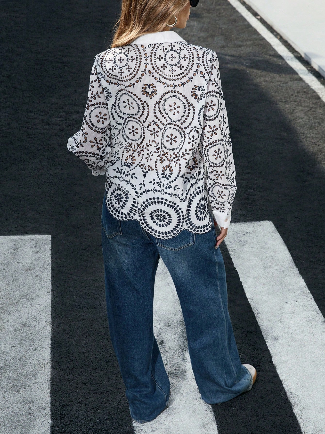 Aveloria Modichic Women's Vintage Lace Embroidery Button Down Long Sleeve Blouse Elegant Business Casual