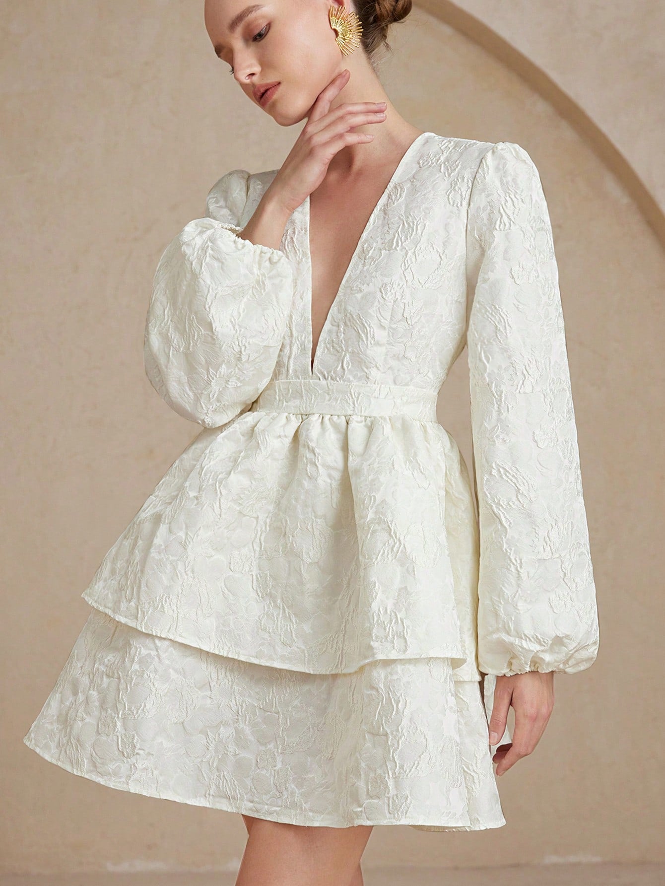 Aveloria Rosie Vintage Elegant Lady-Like Puff Sleeve Long Sleeve Sexy Cake Ruffle Hem Mini Dress