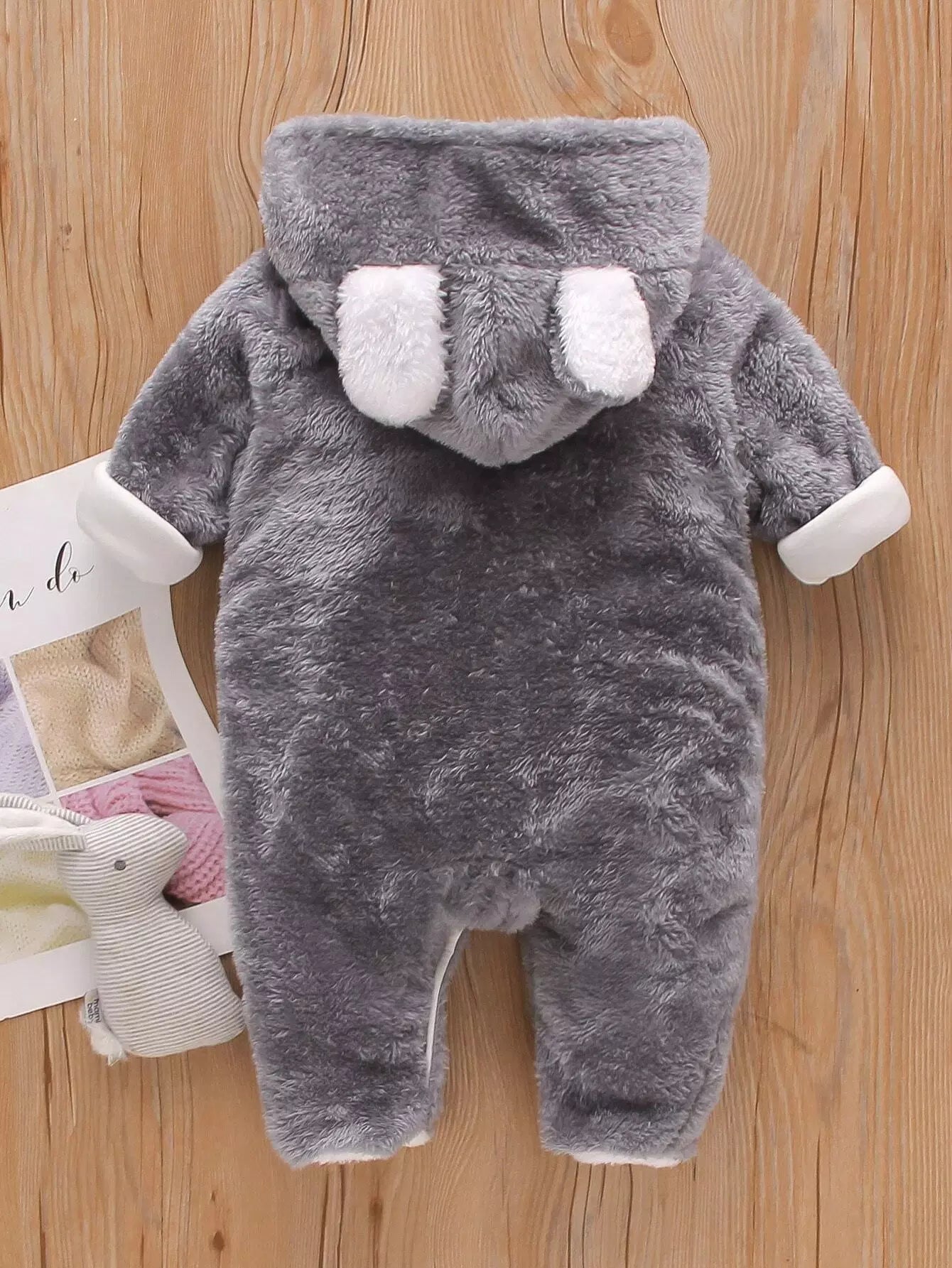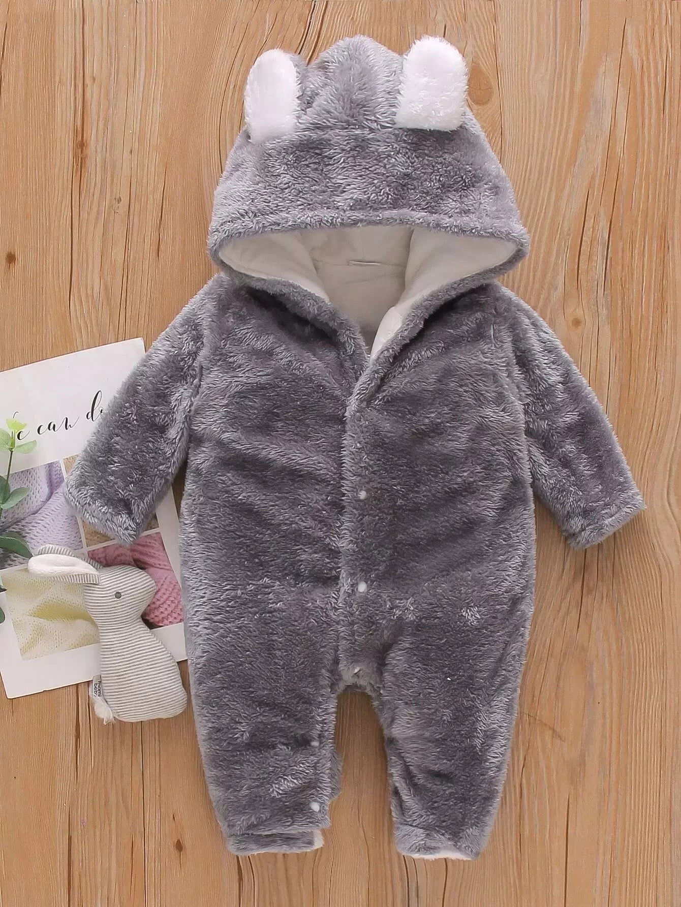 Baby 3D Ear Design Hooded Footed Flannel Jumpsuit