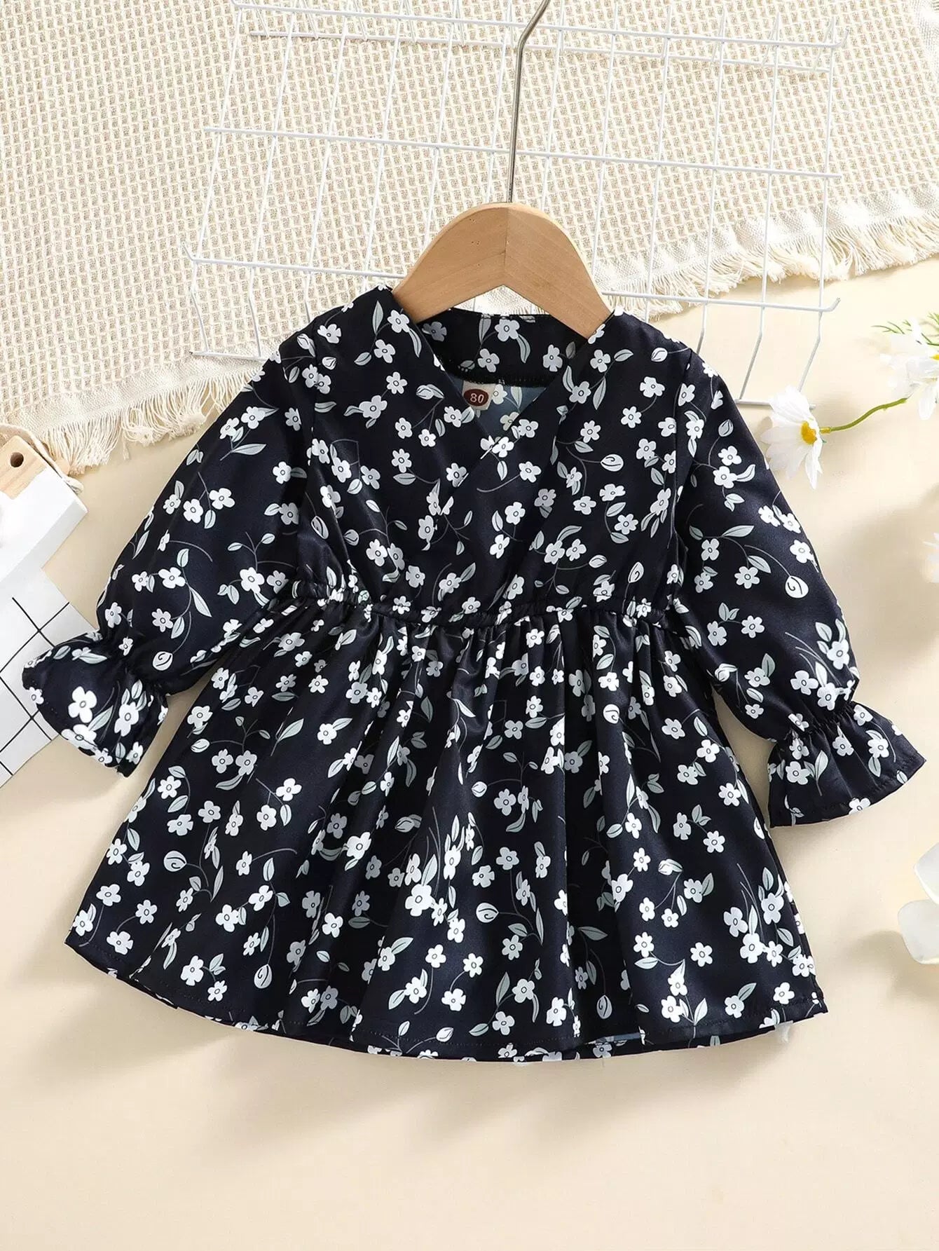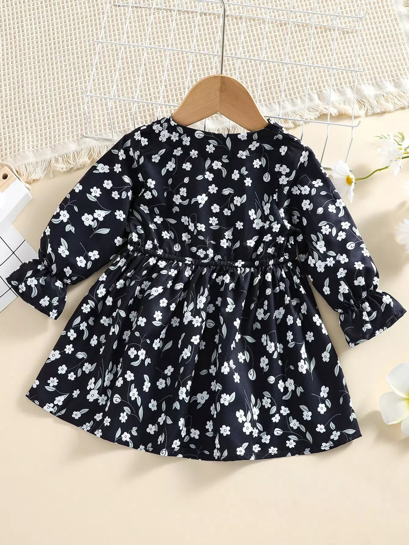 Baby Allover Floral Flounce Sleeve Dress