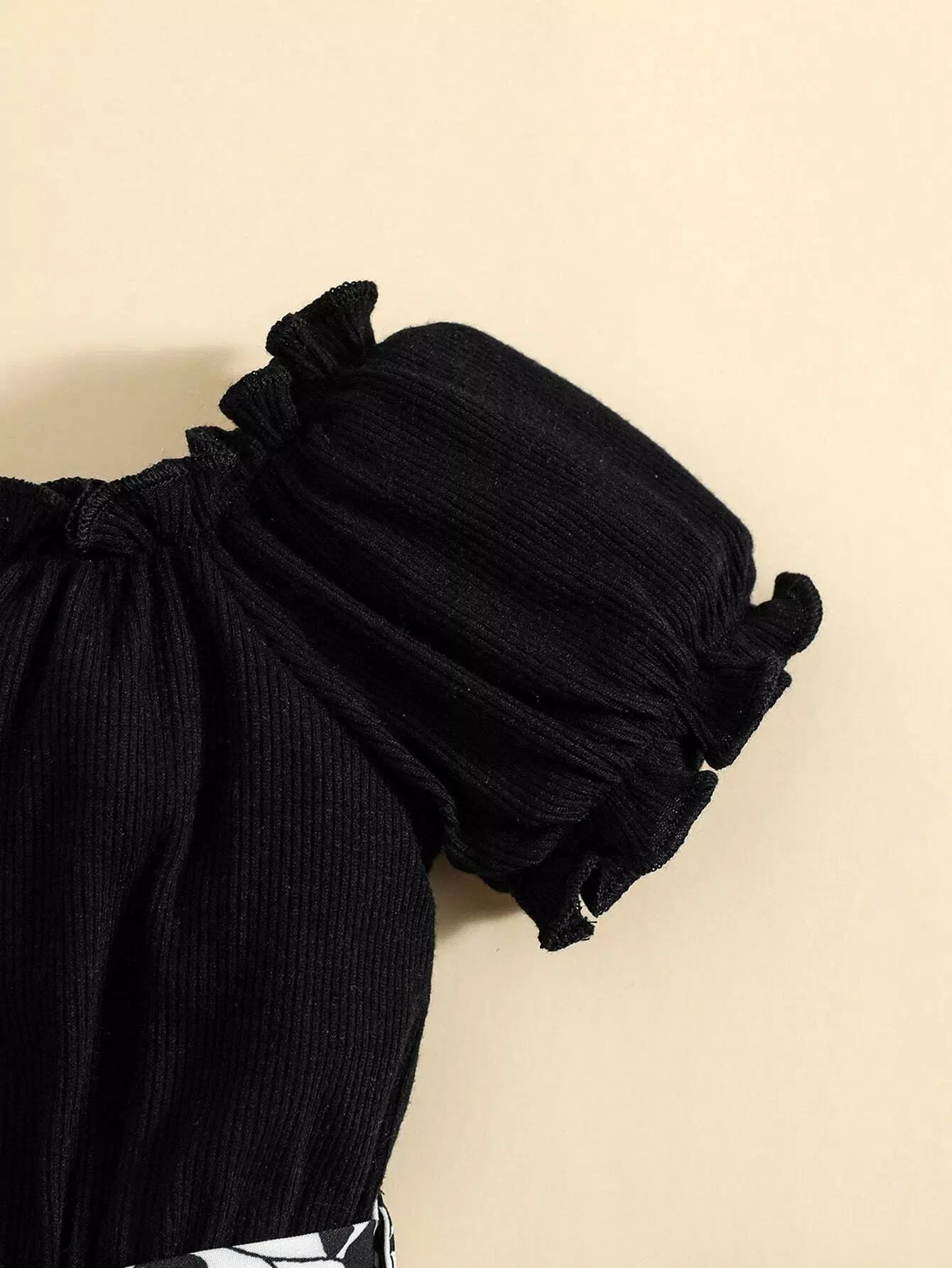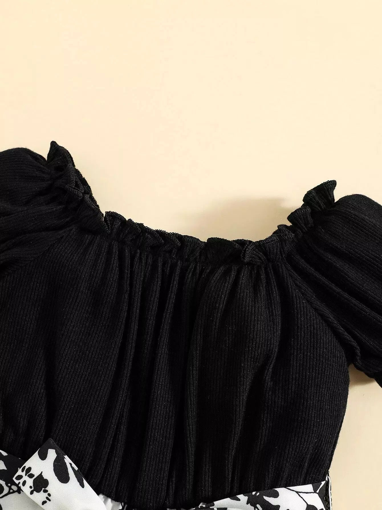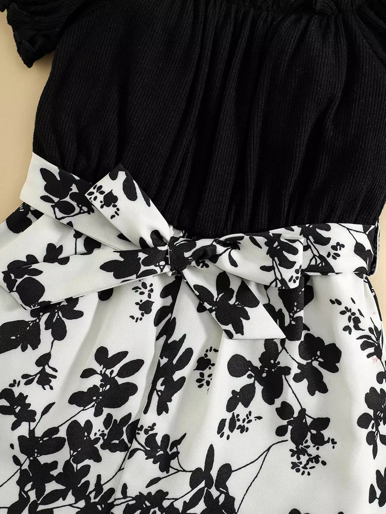 Baby Floral Print Puff Sleeve Frilled Romper Without Belt