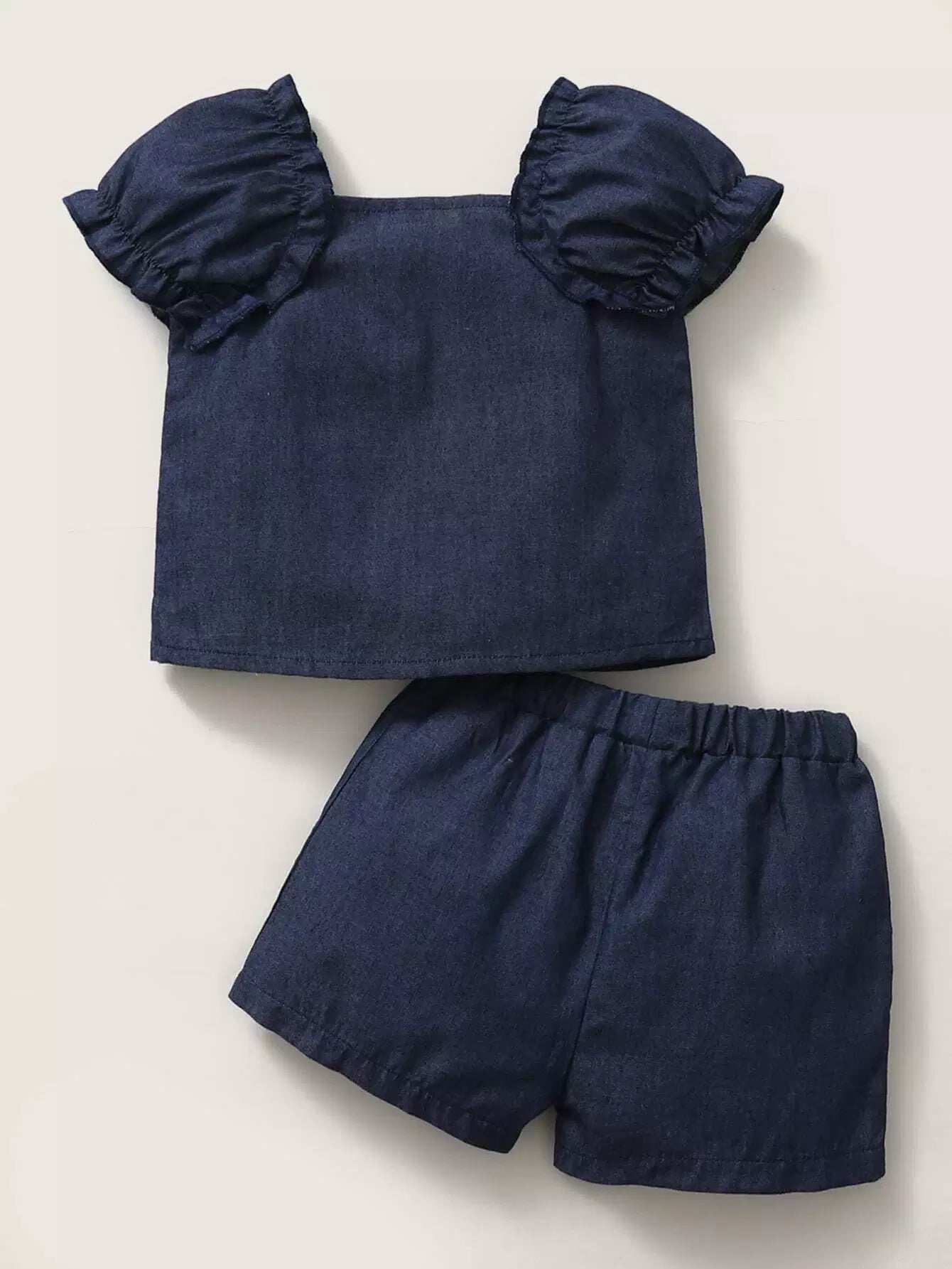 Baby Girl Button Denim Top With Shorts