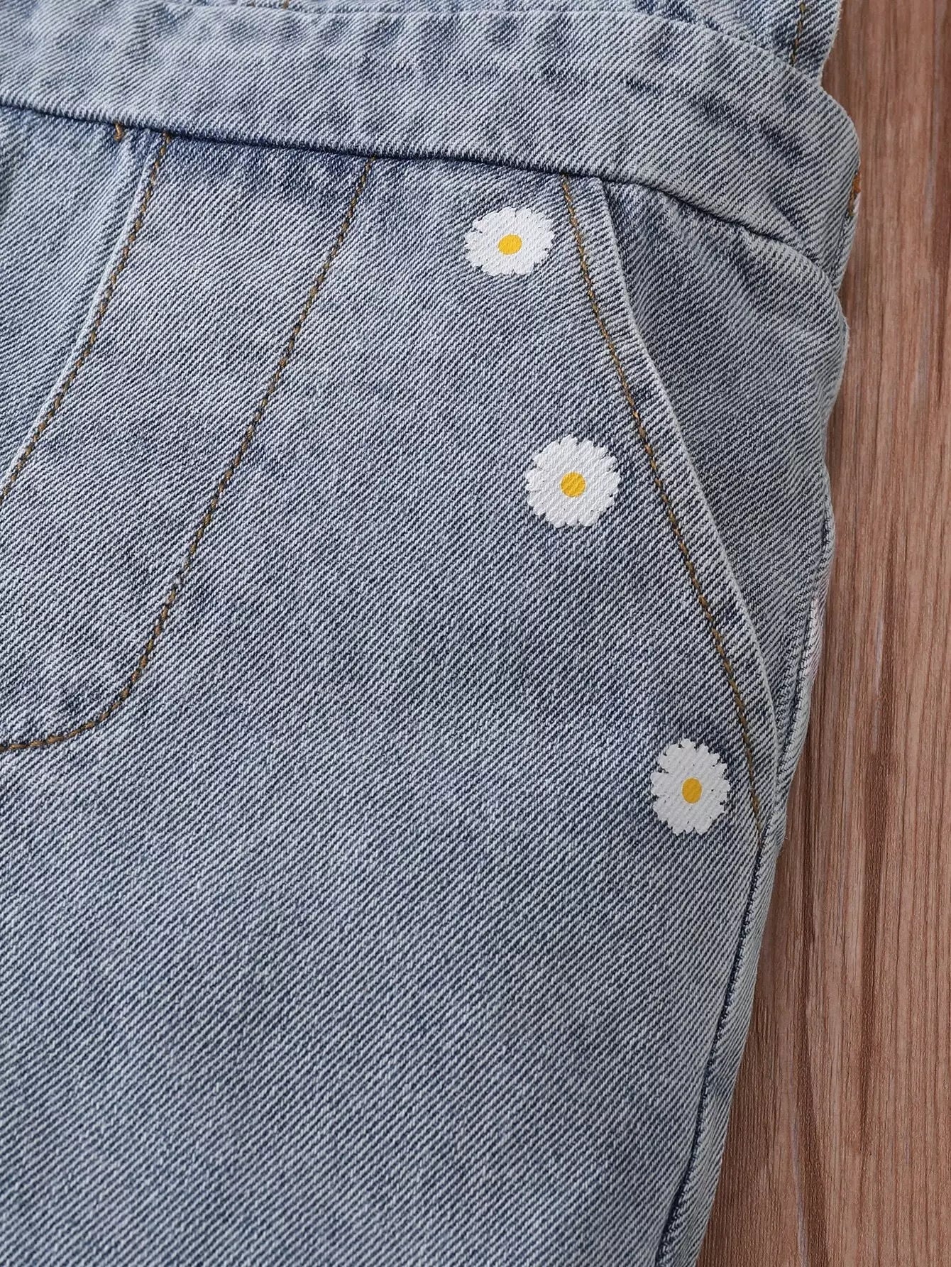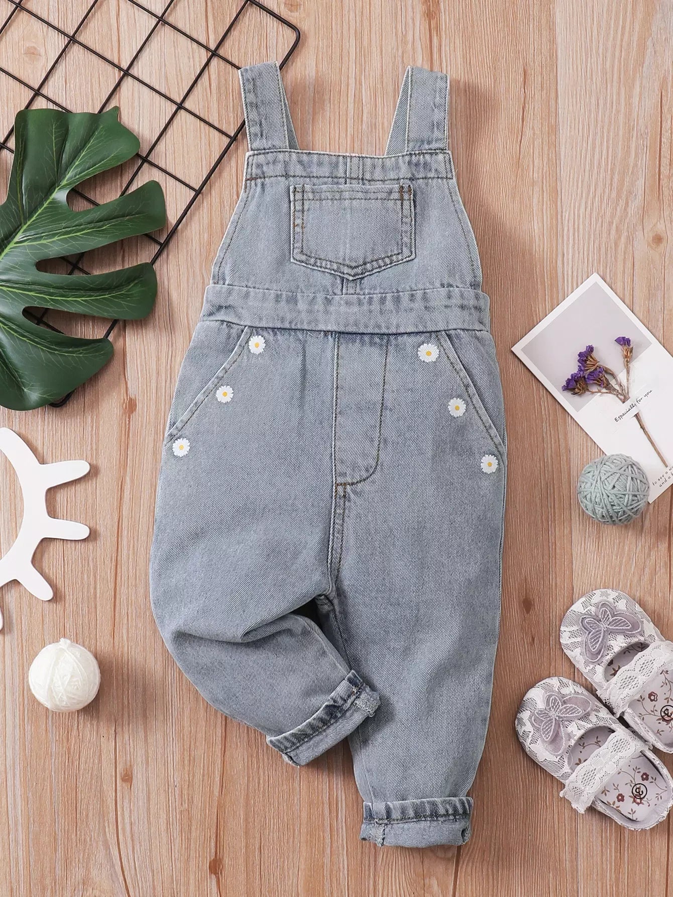 Baby Girl Daisy Print Denim Overall