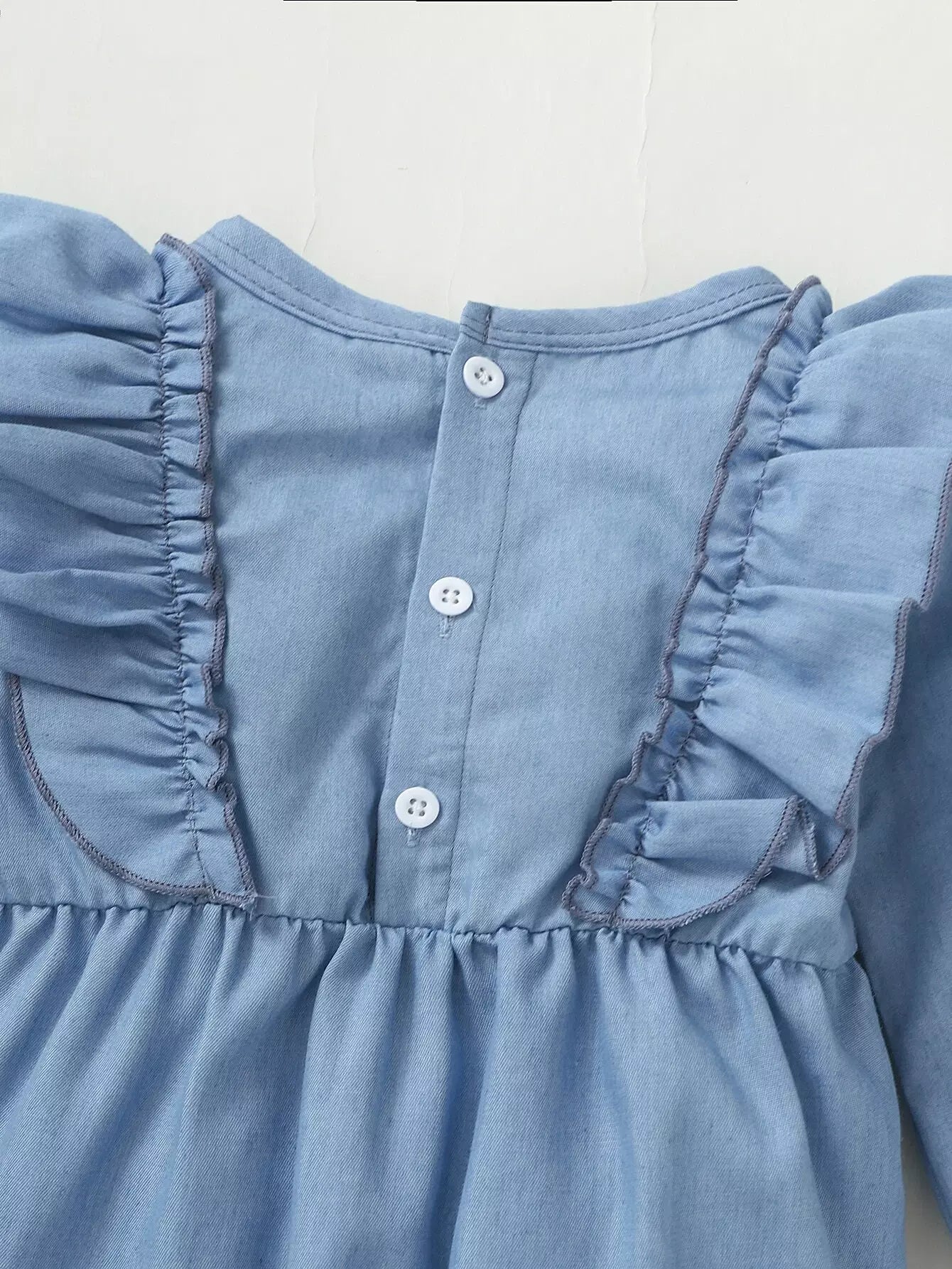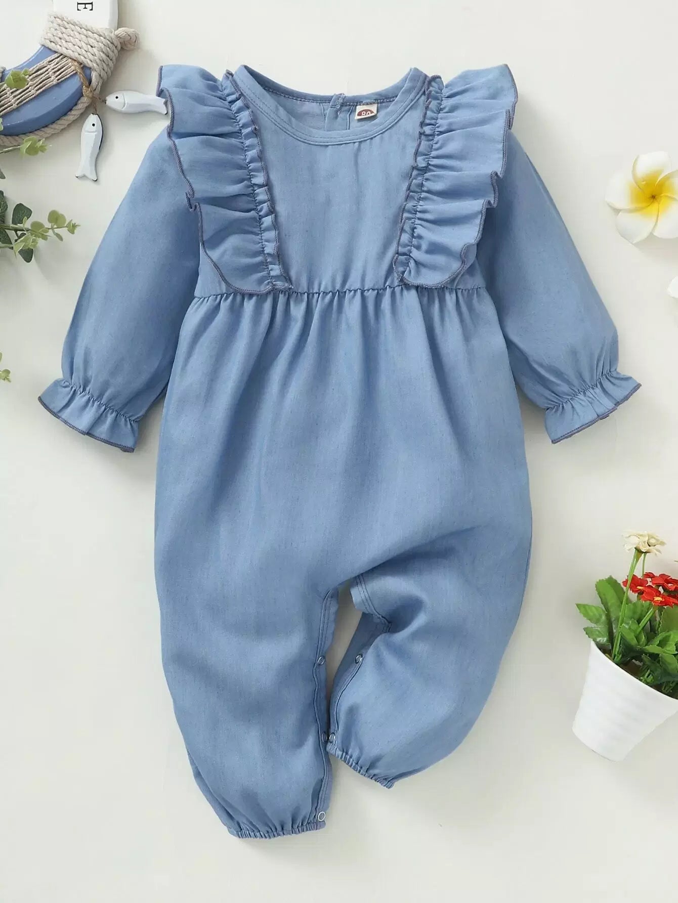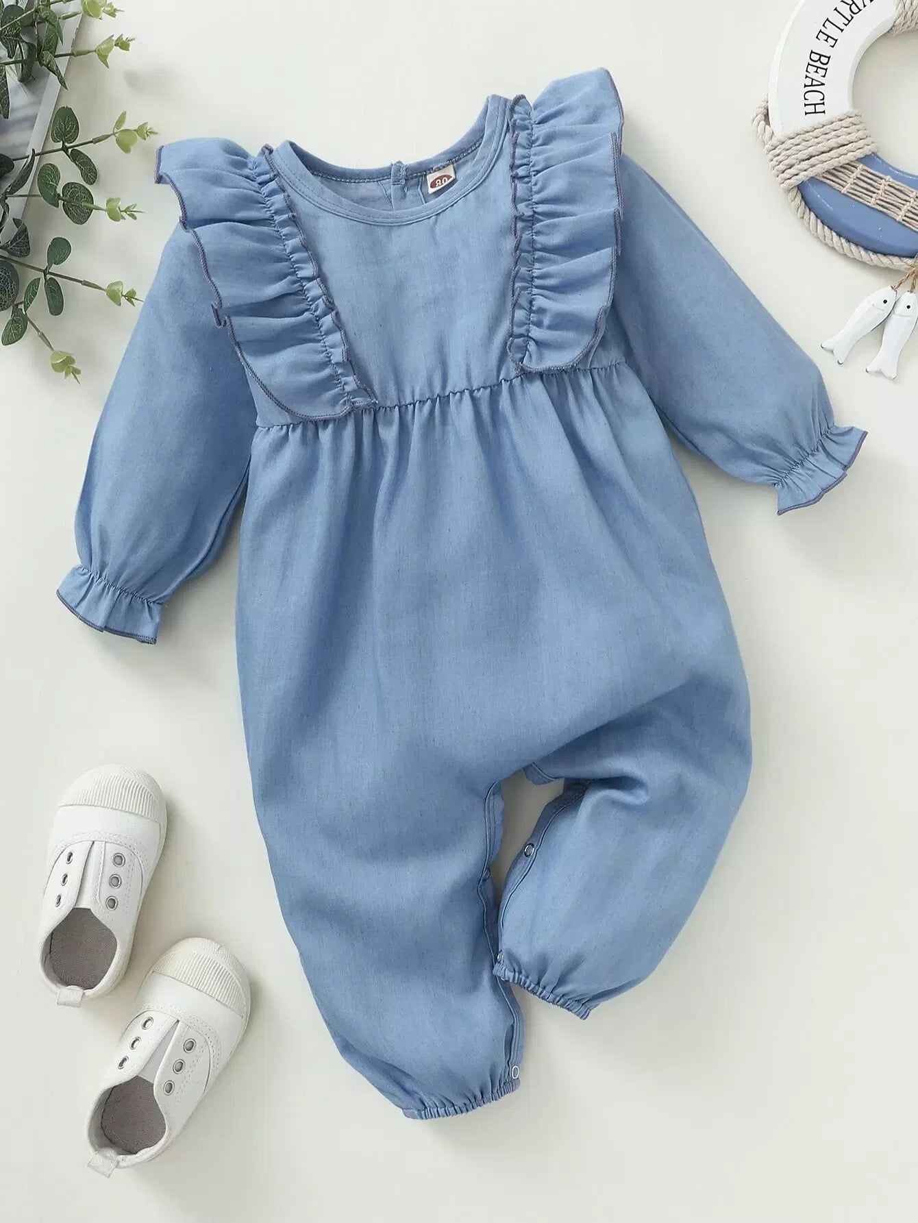 Baby Girl Ruffle Trim Flounce Sleeve Denim Jumpsuit