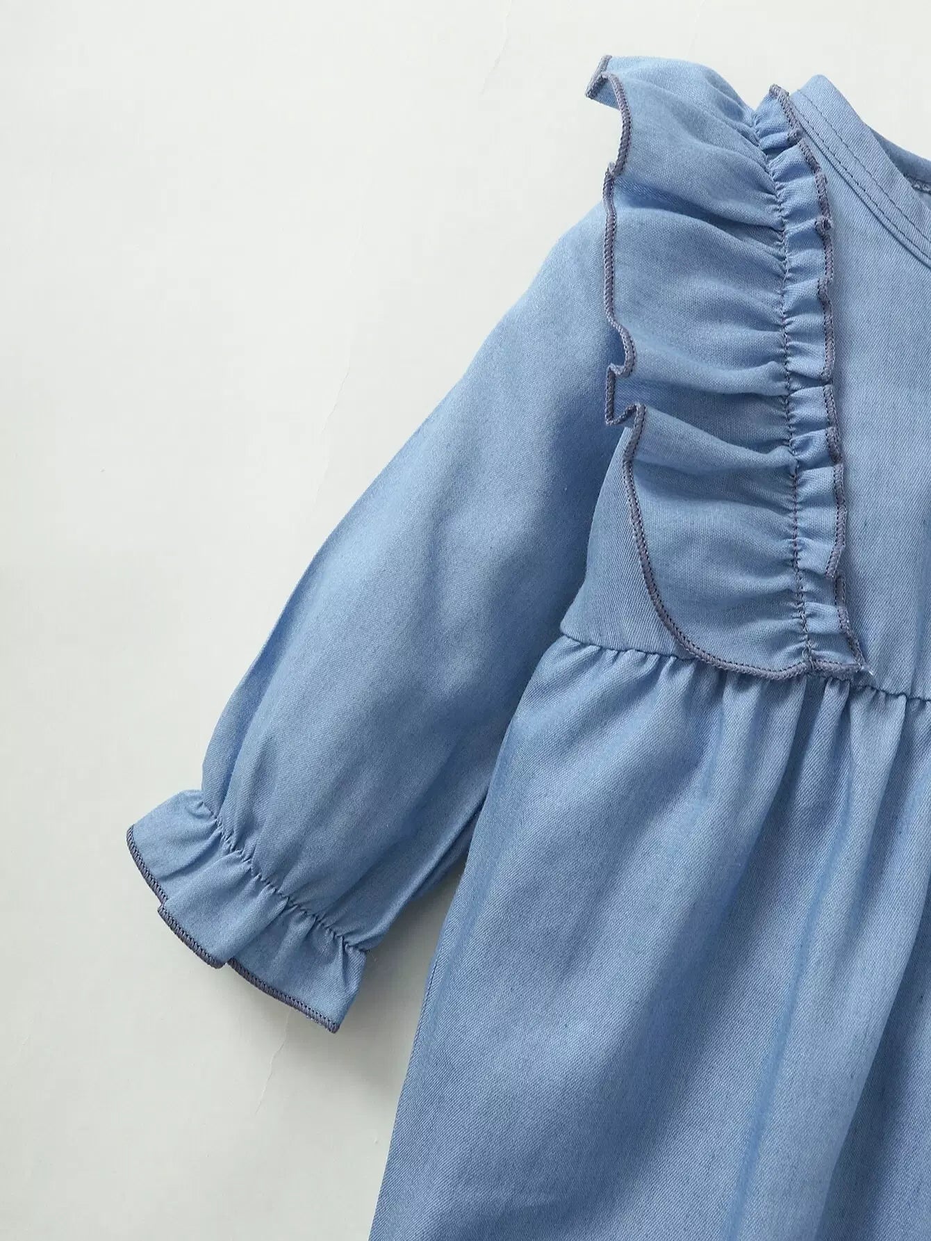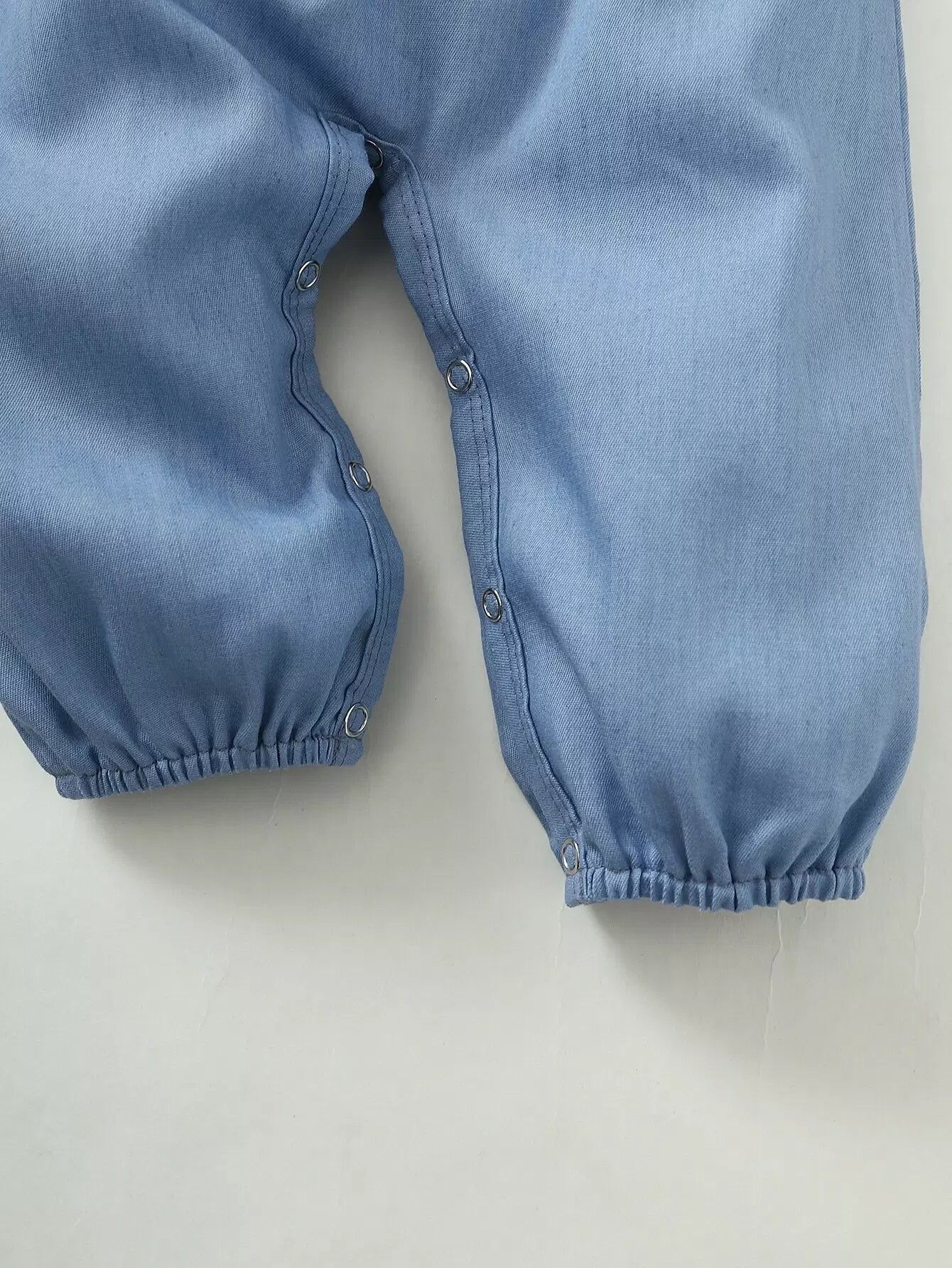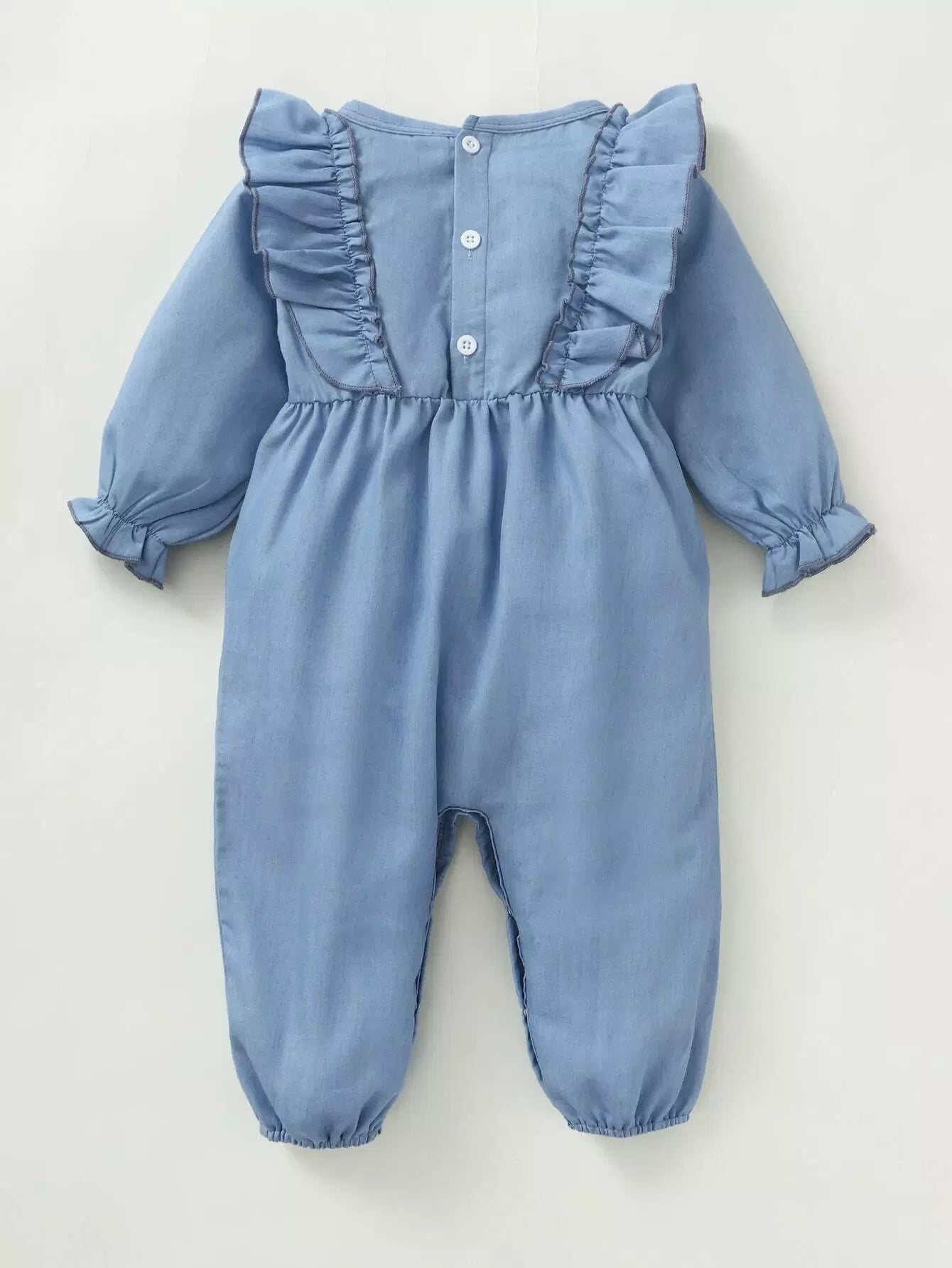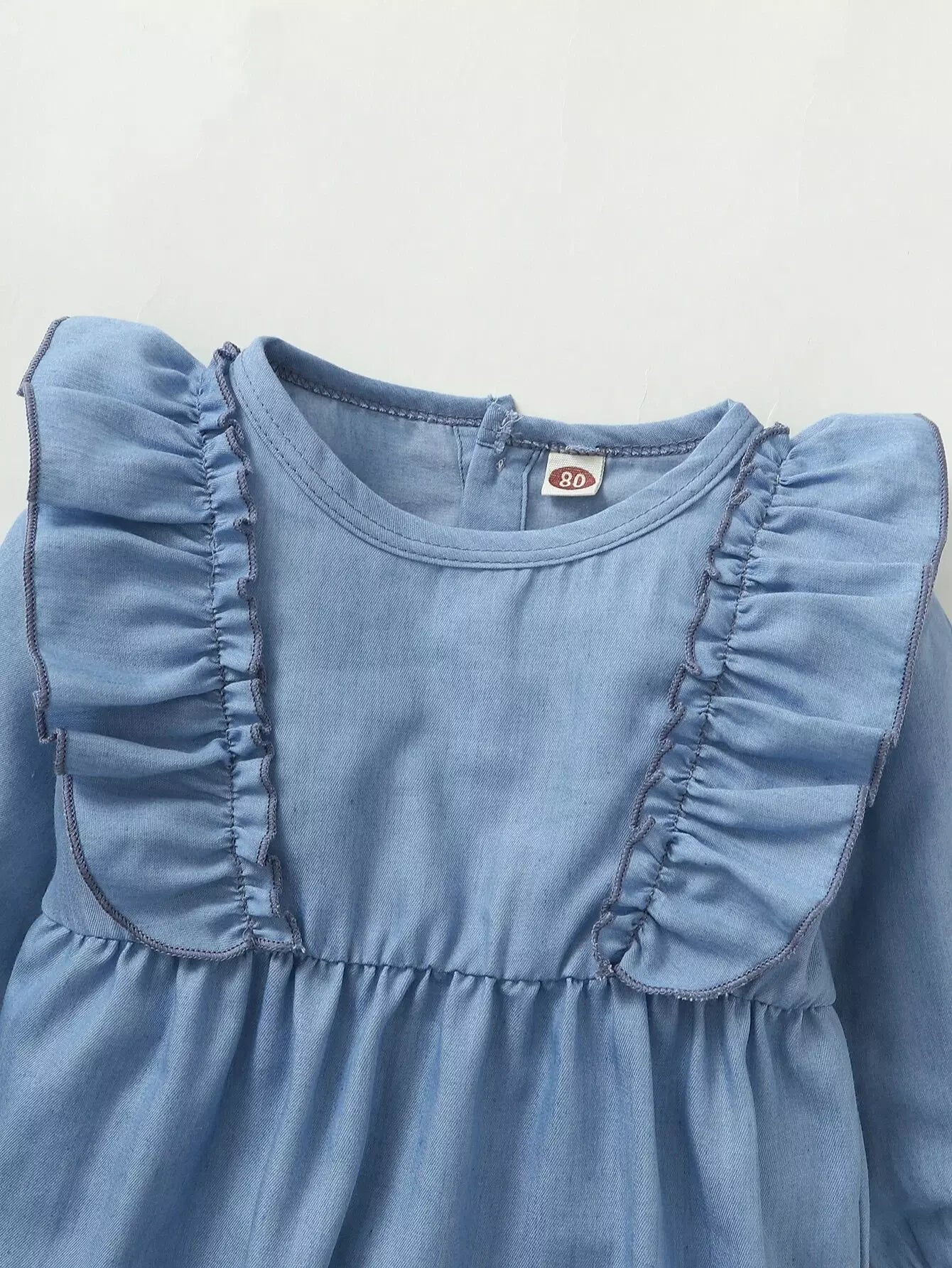 Baby Girl Ruffle Trim Flounce Sleeve Denim Jumpsuit