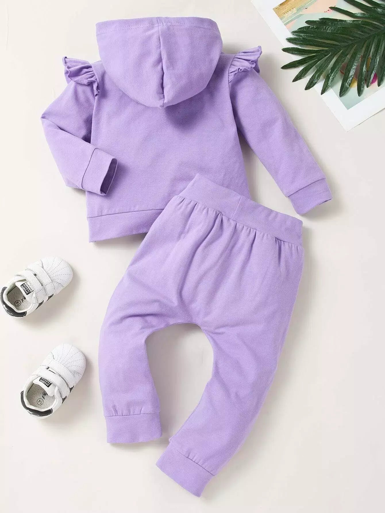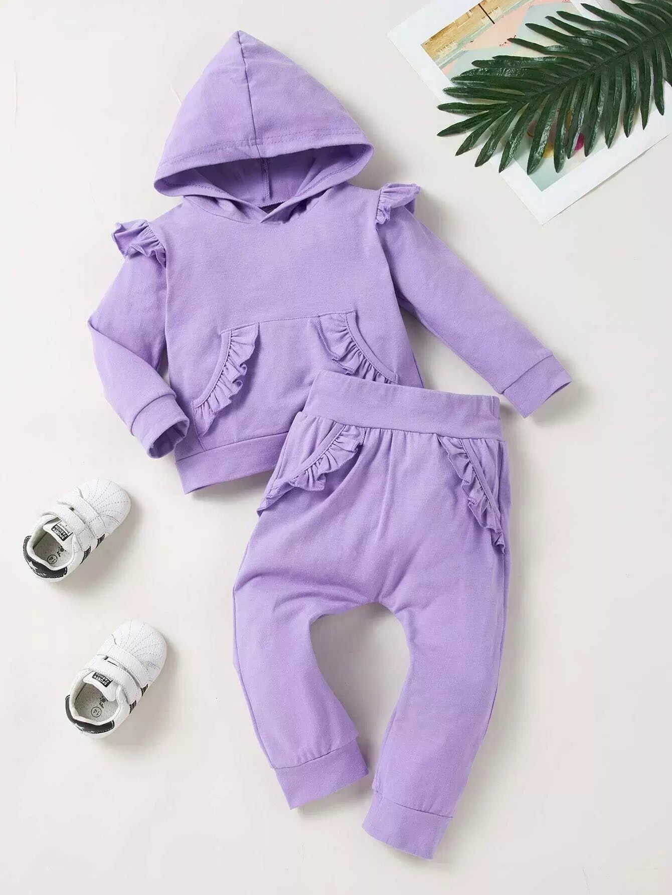 Baby Girl Ruffle Trim Hooded Sweatshirt & Sweatpants