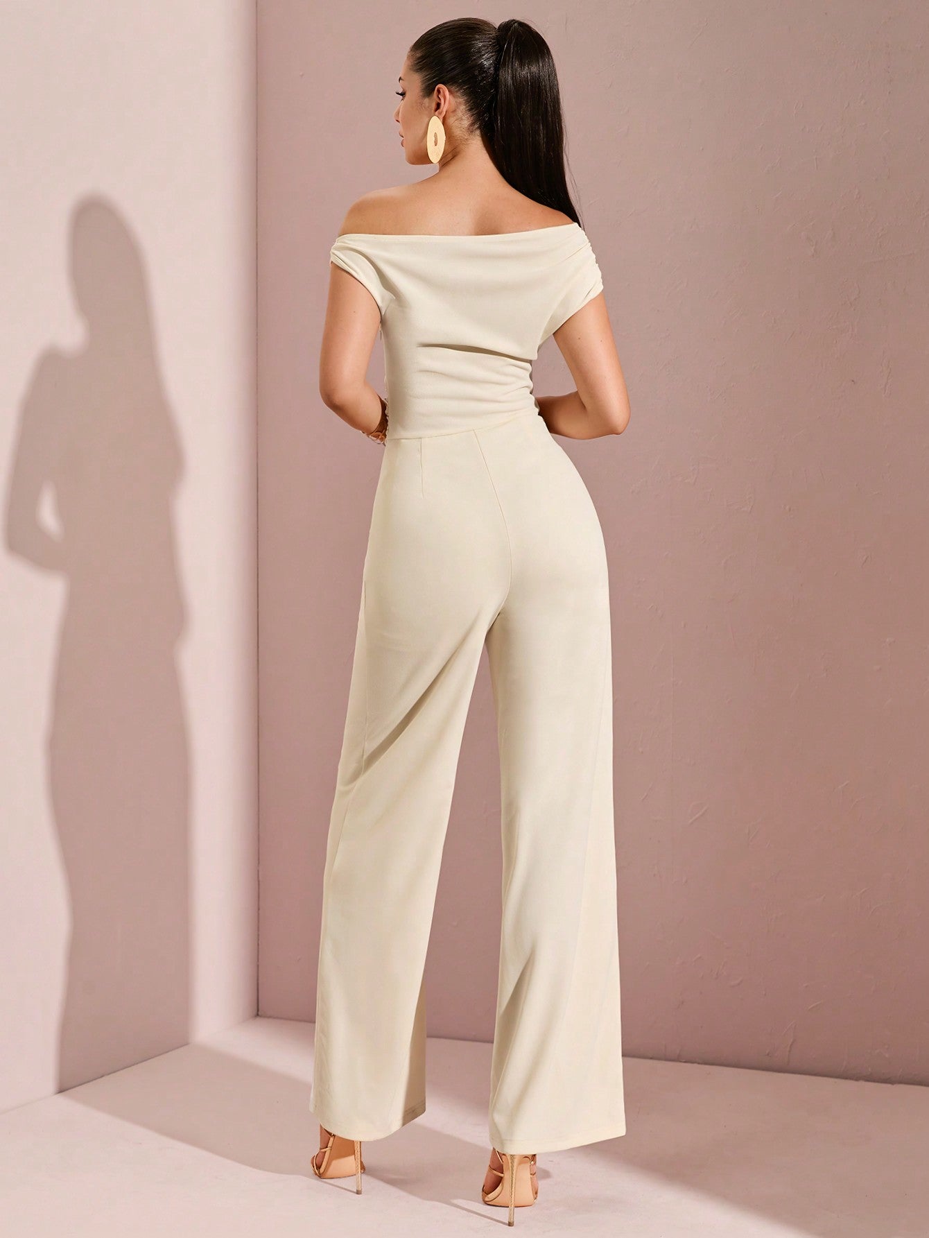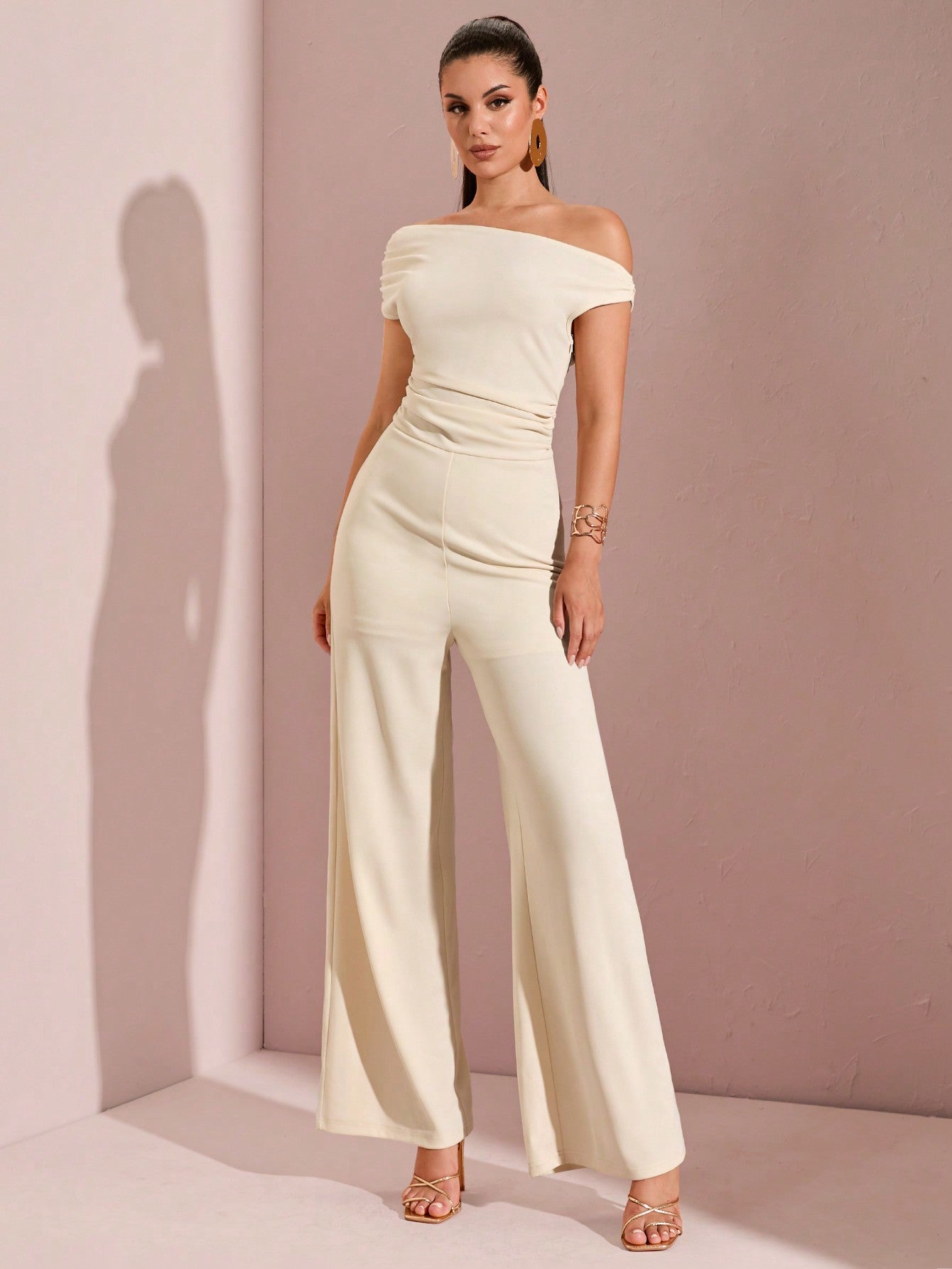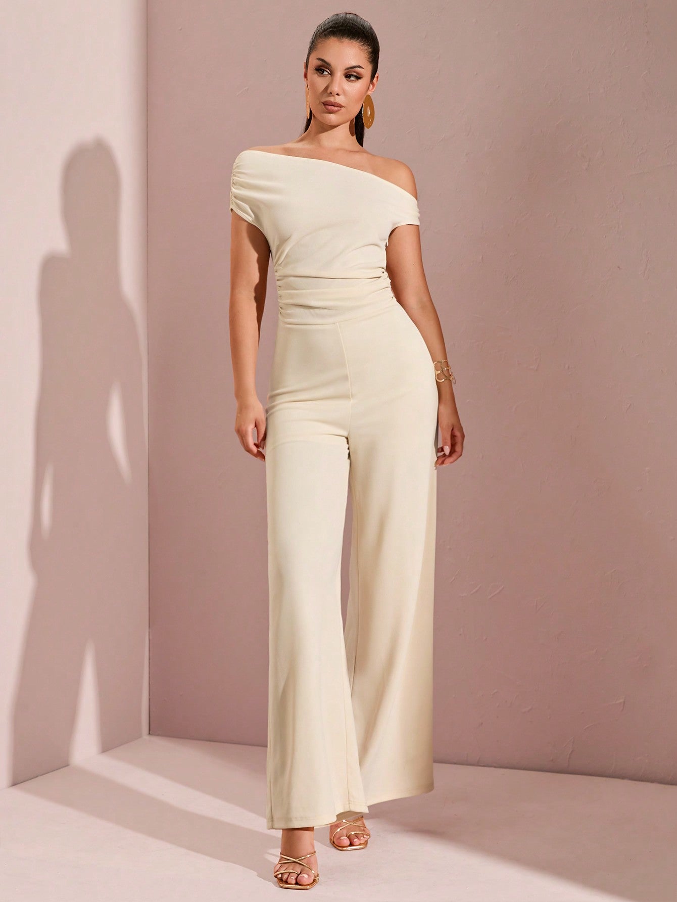BAE Women's Asymmetrical Shoulder Ruched Wide Leg Jumpsuit, Summer Beach Vacation Pool Party Date Outing