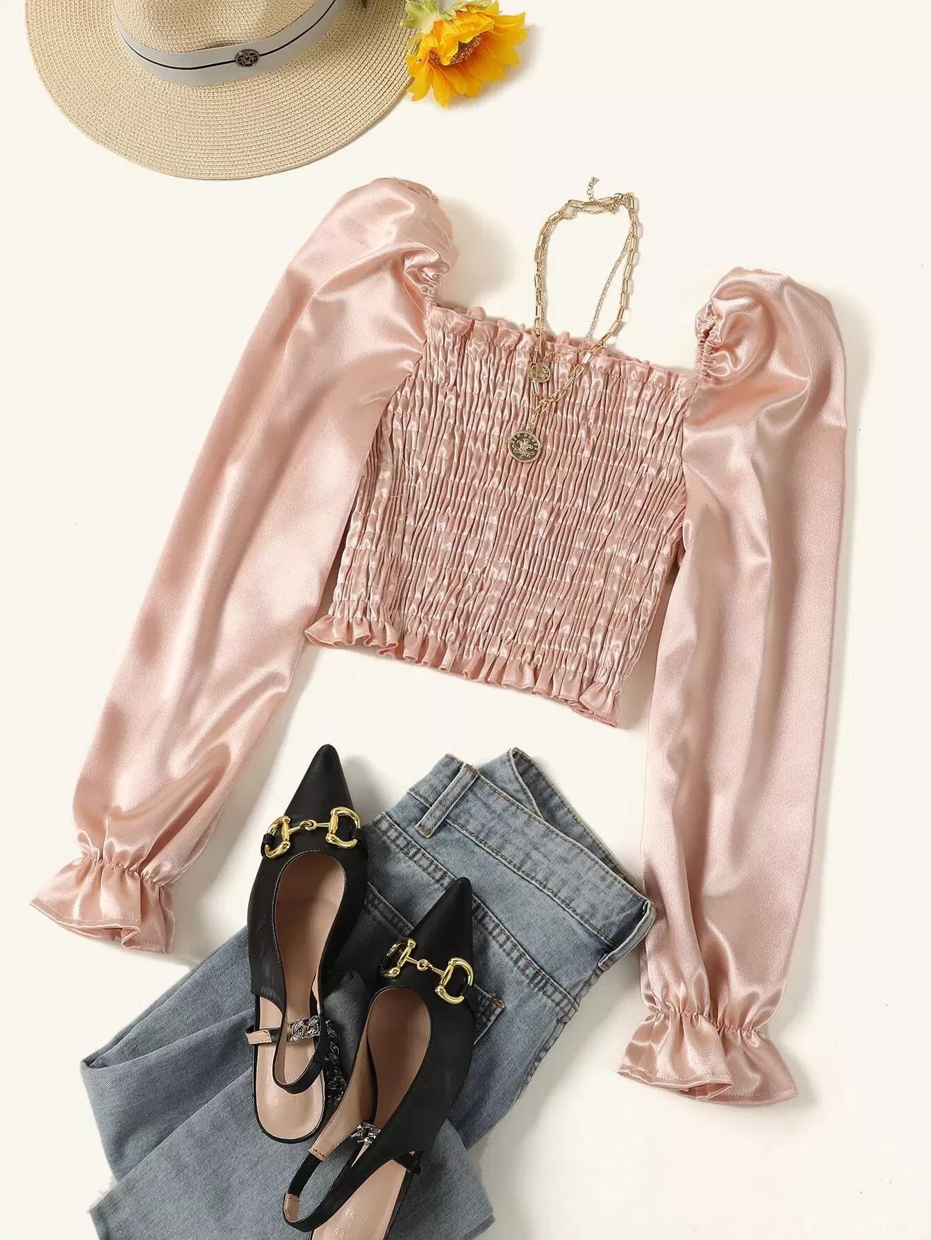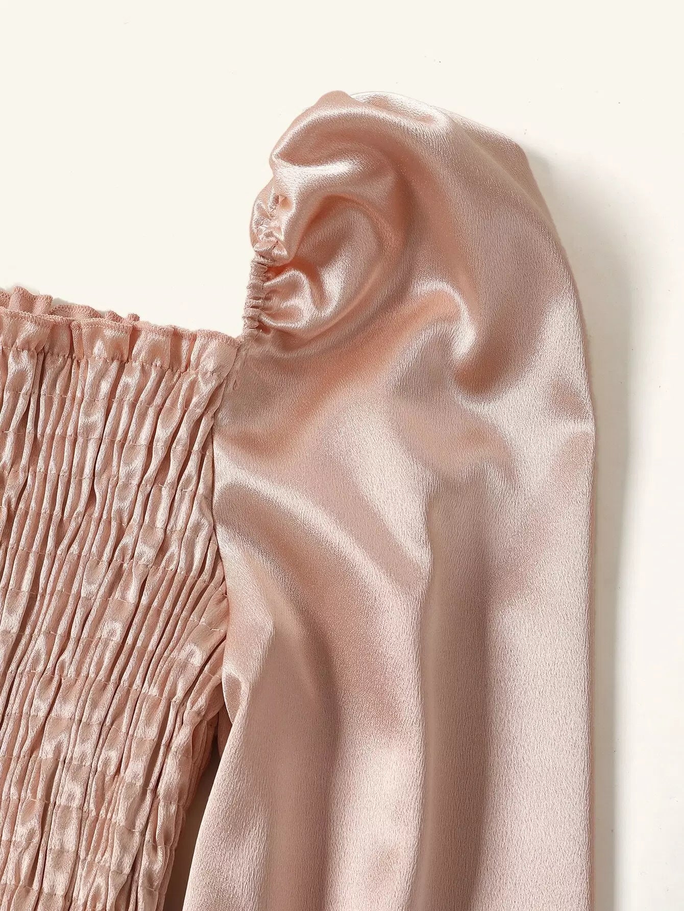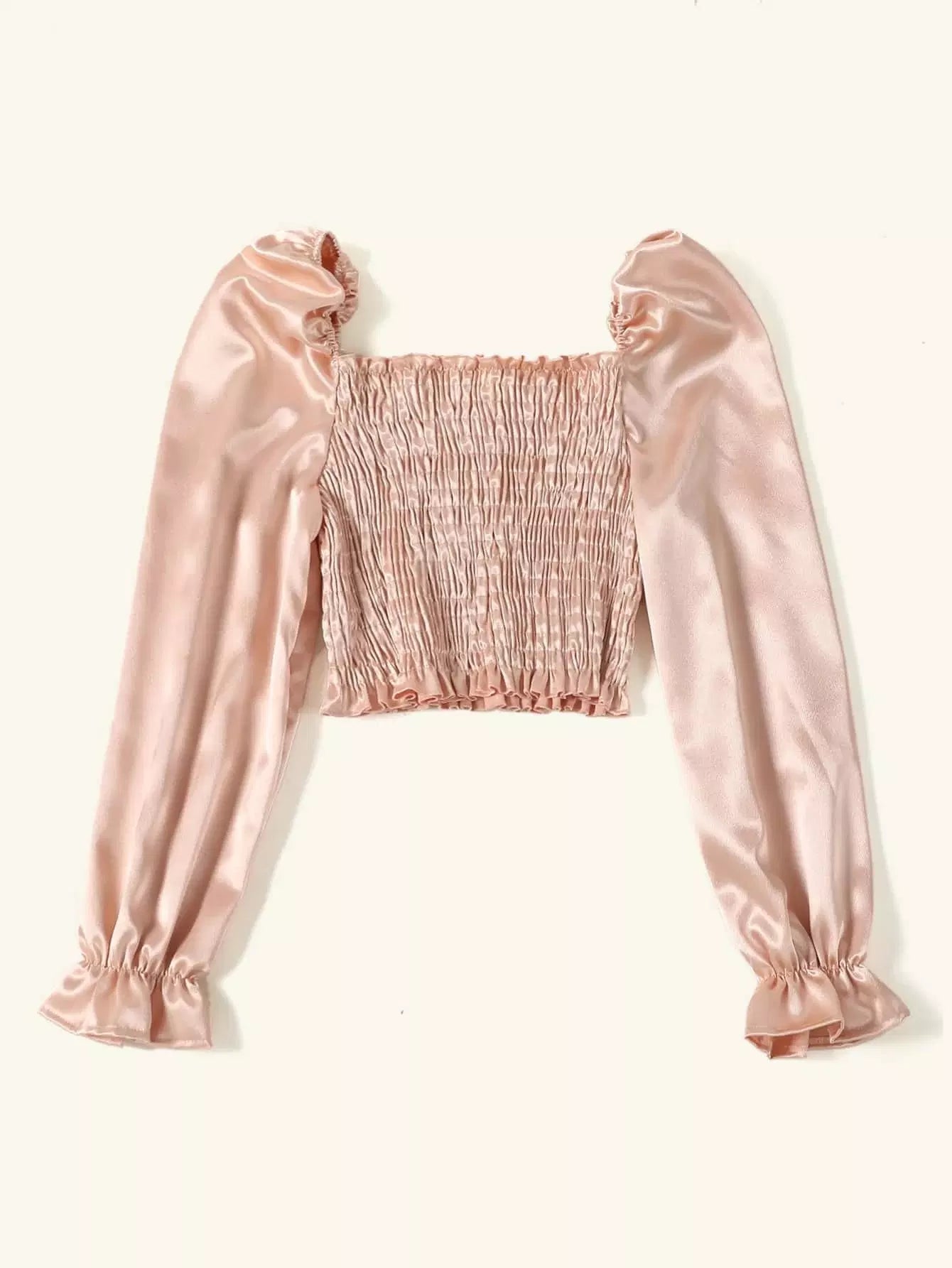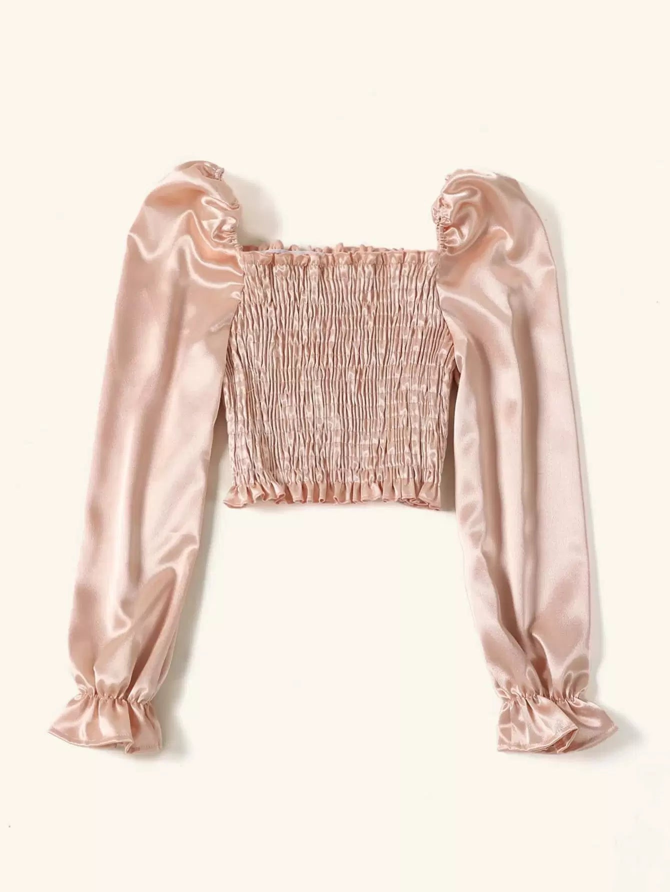 Bell Sleeve Shirred Satin Crop Top