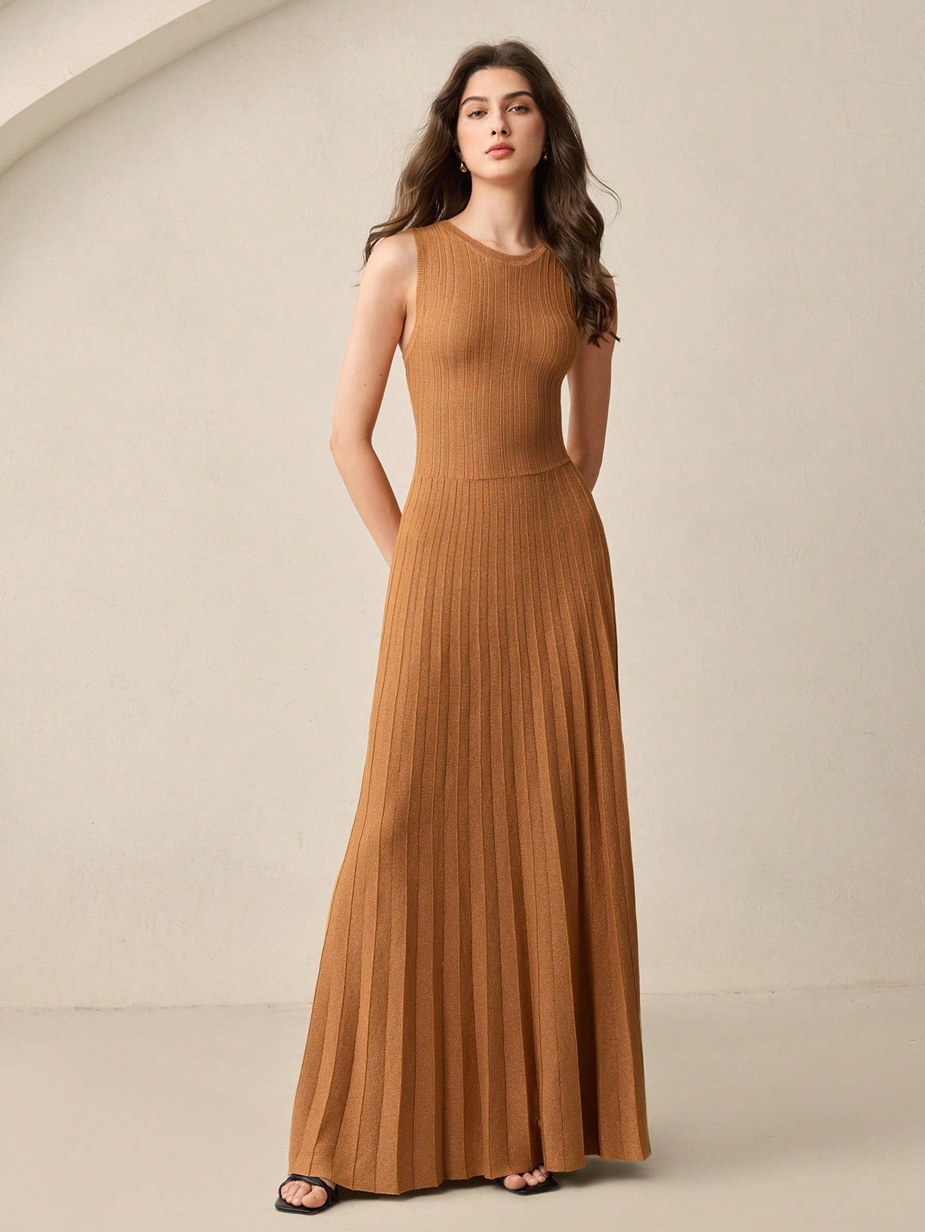 BizChic 2025 Summer New Arrival Sleeveless Pleated Dress With Metal Buckle Belt Decoration, Suitable