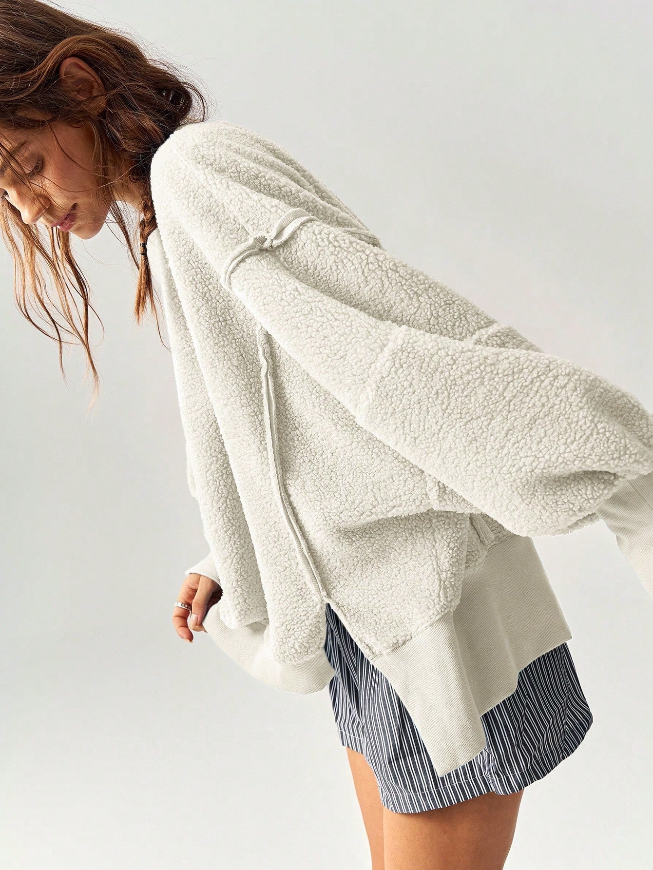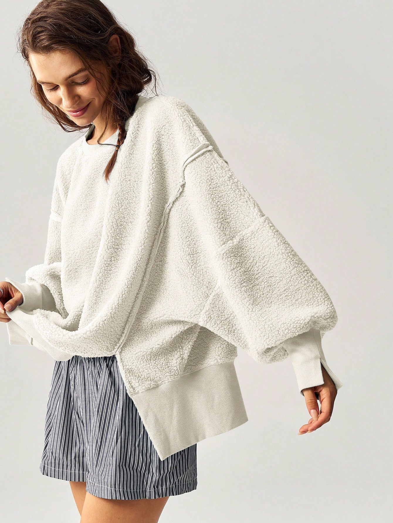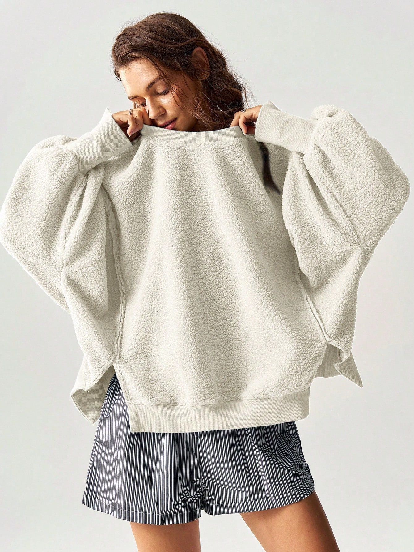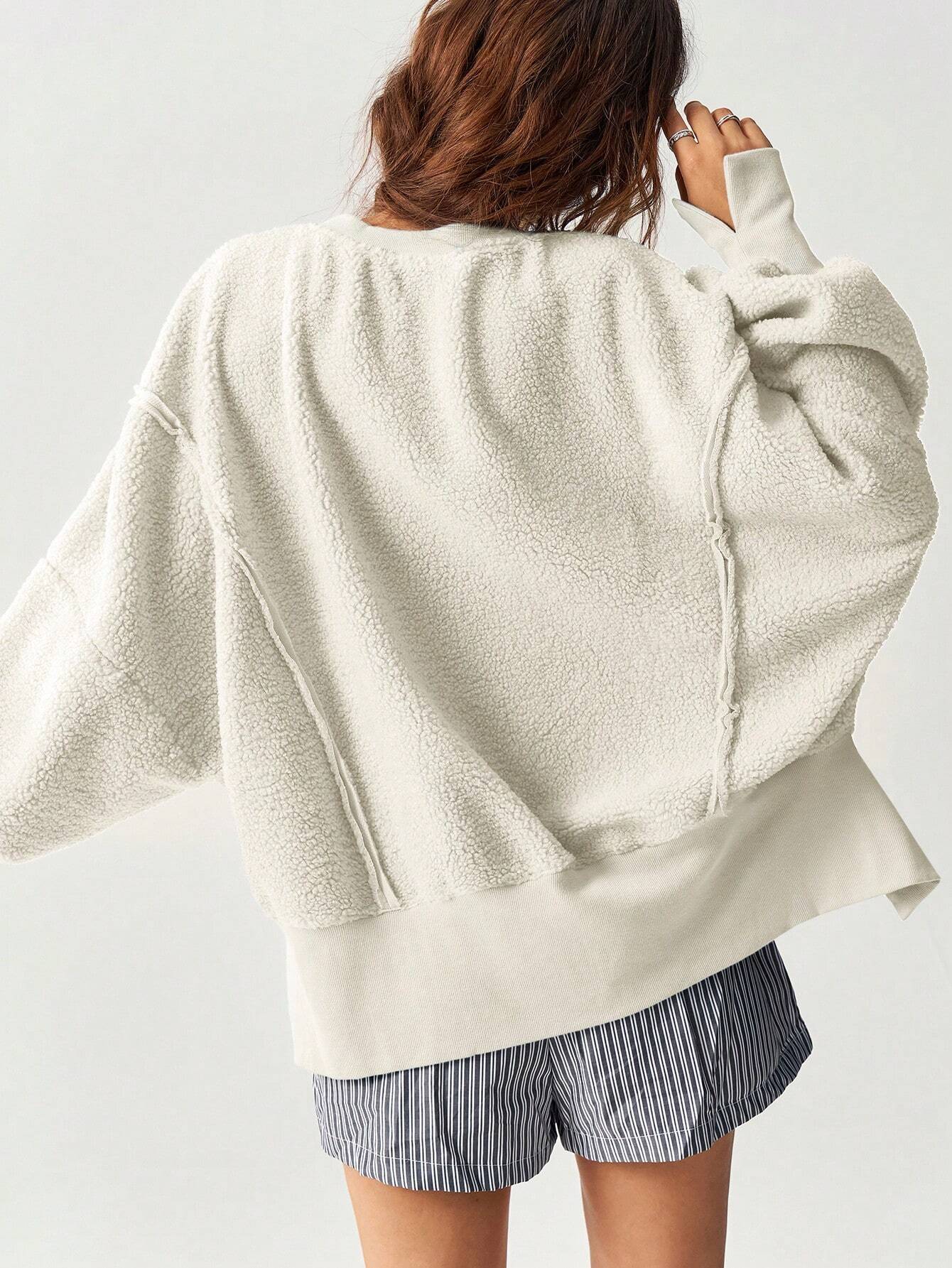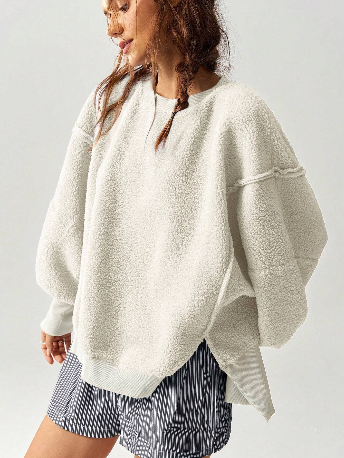 Bohemela Women's Casual Solid Knit Crew Neck Loose Fit Pullover Sweatshirt