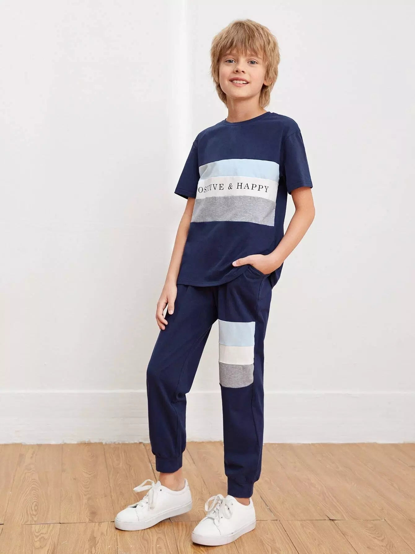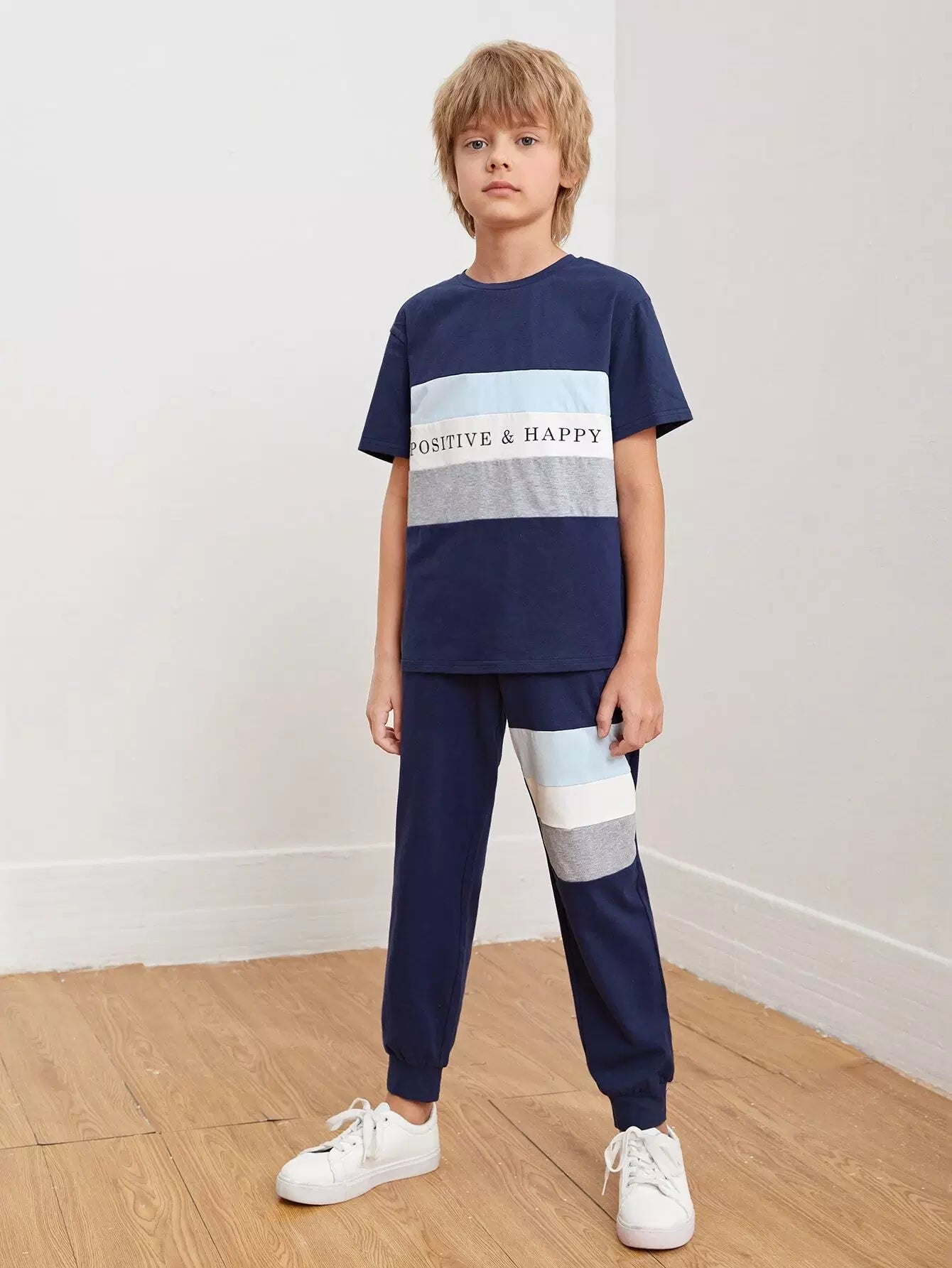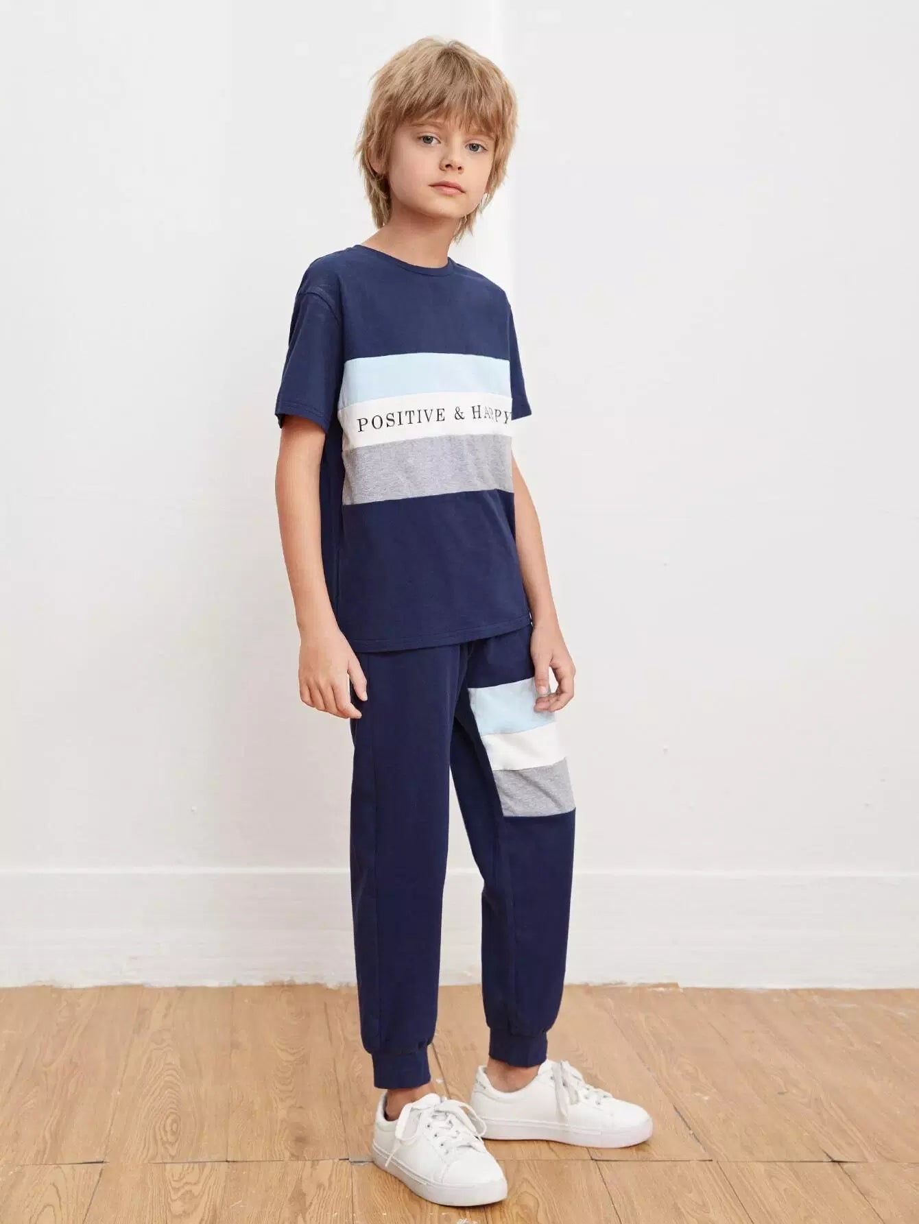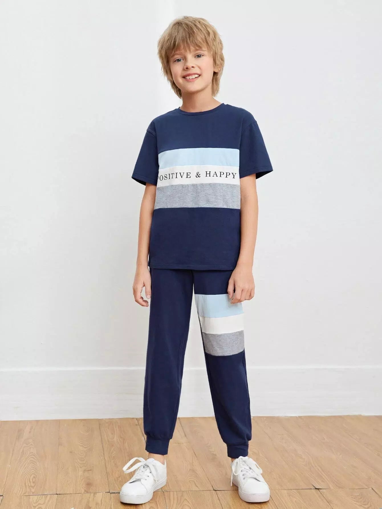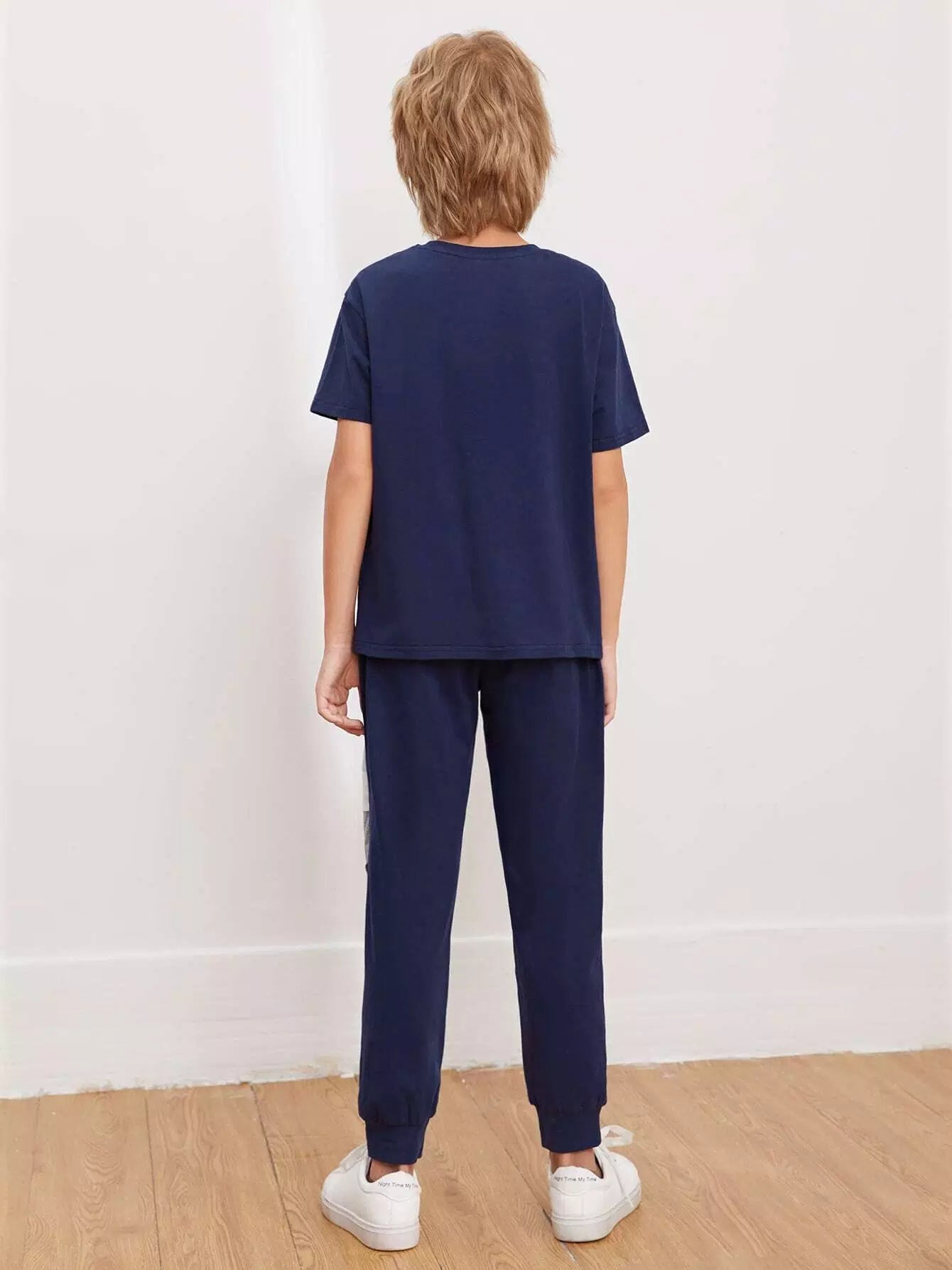 Boys Letter Graphic Colorblock Top & Joggers Set