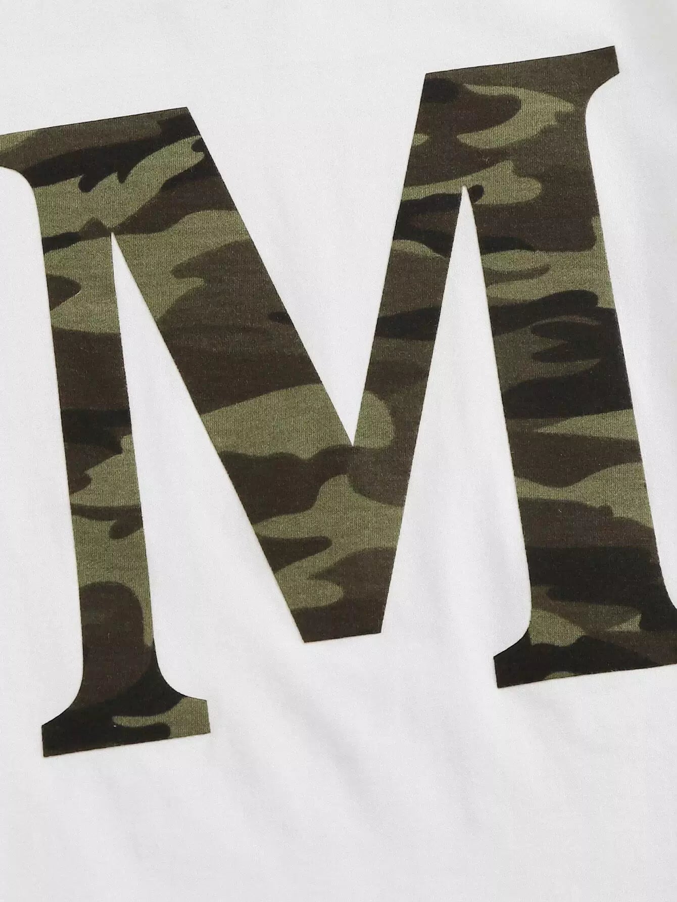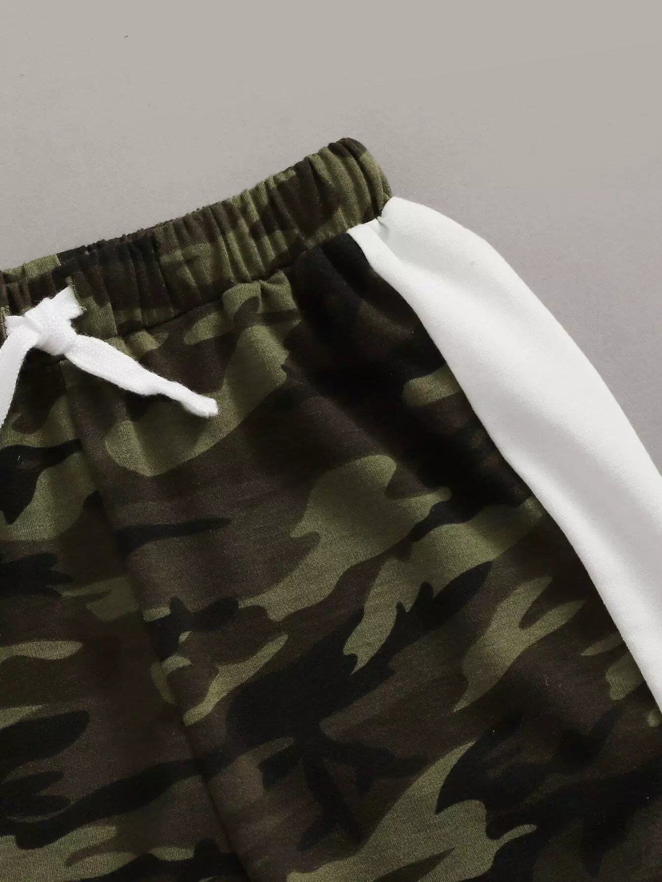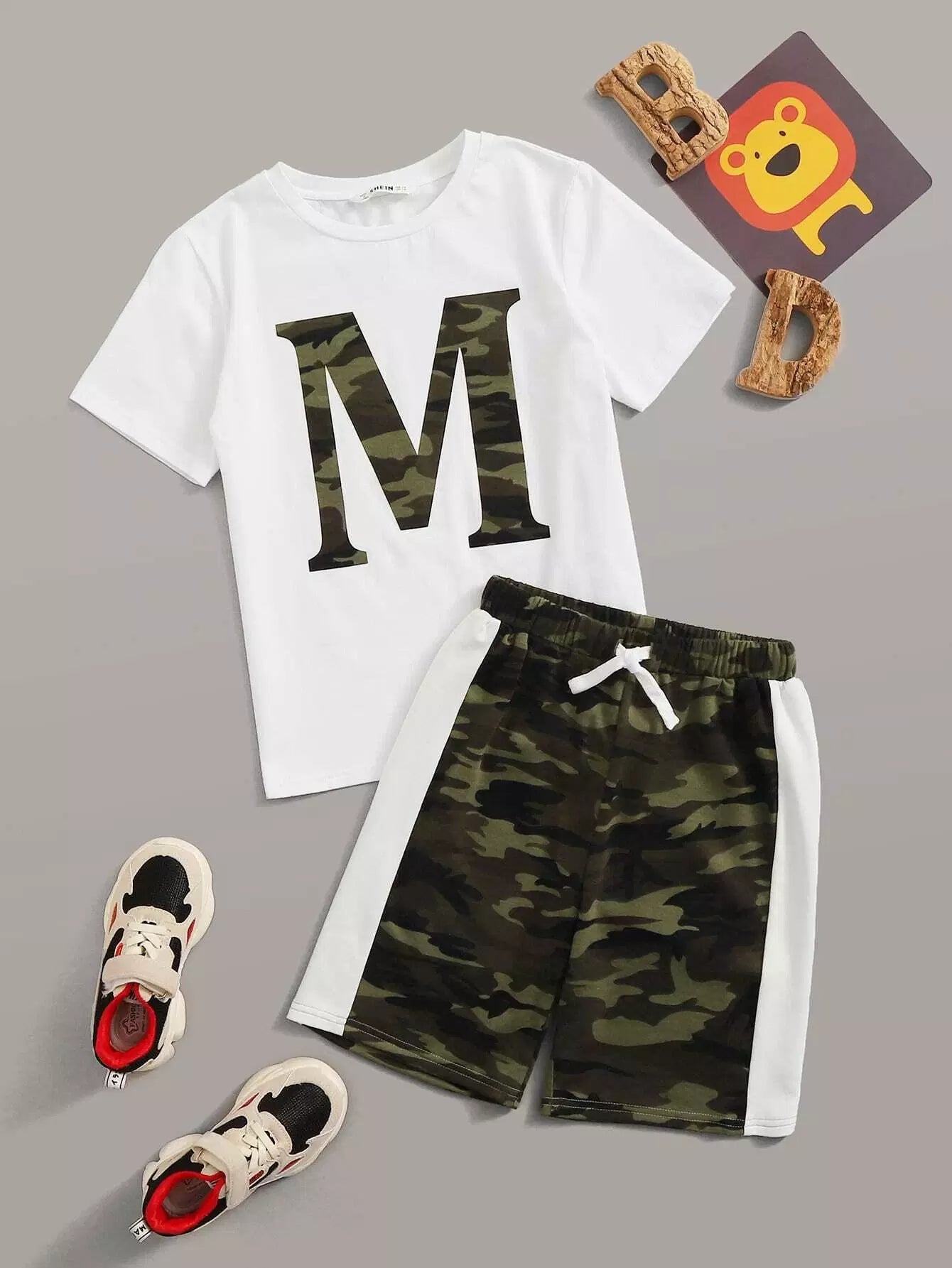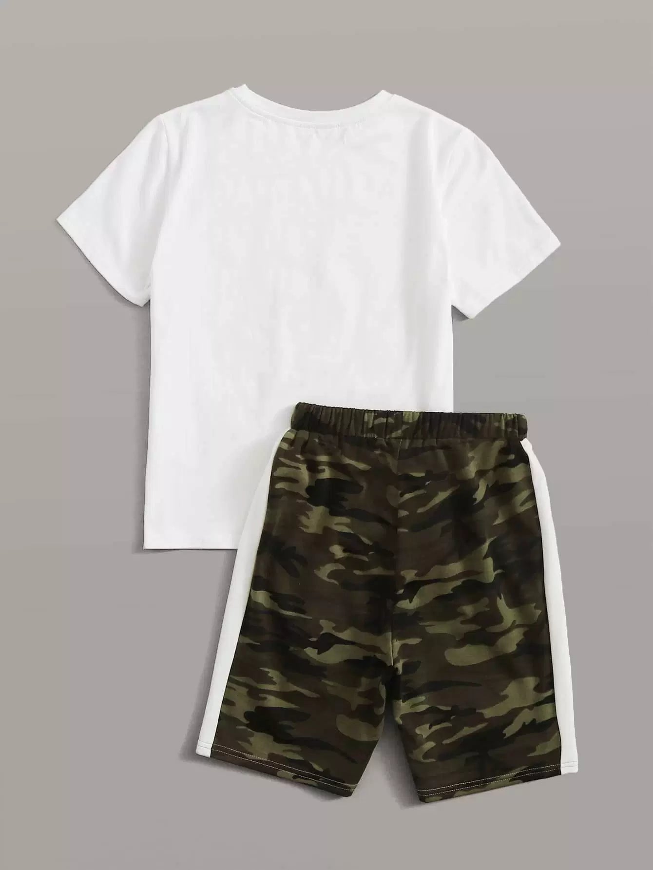 Boys Letter Graphic Top & Colorblock Camo Shorts Set