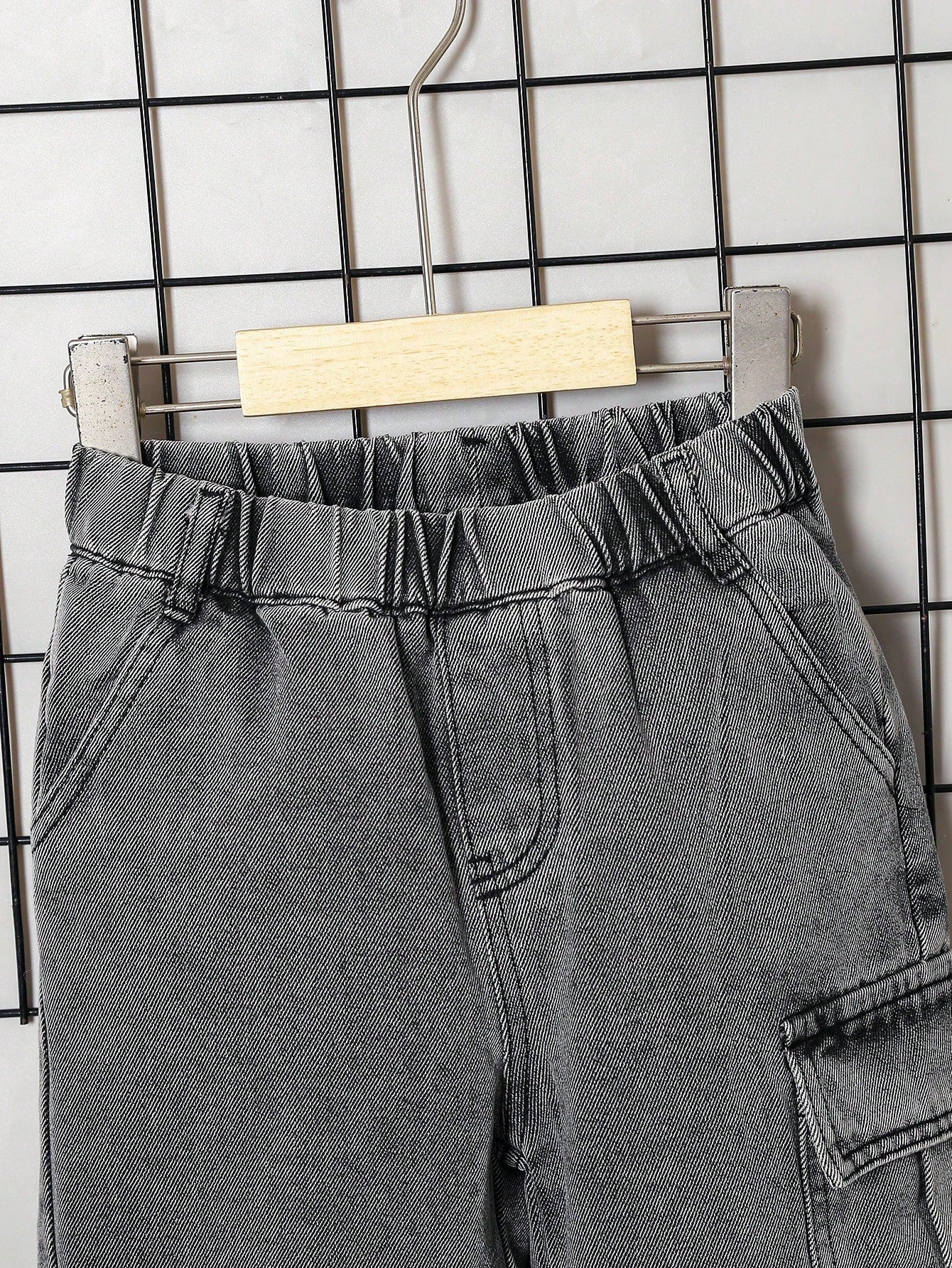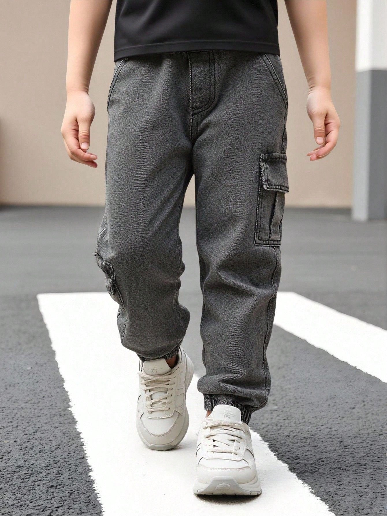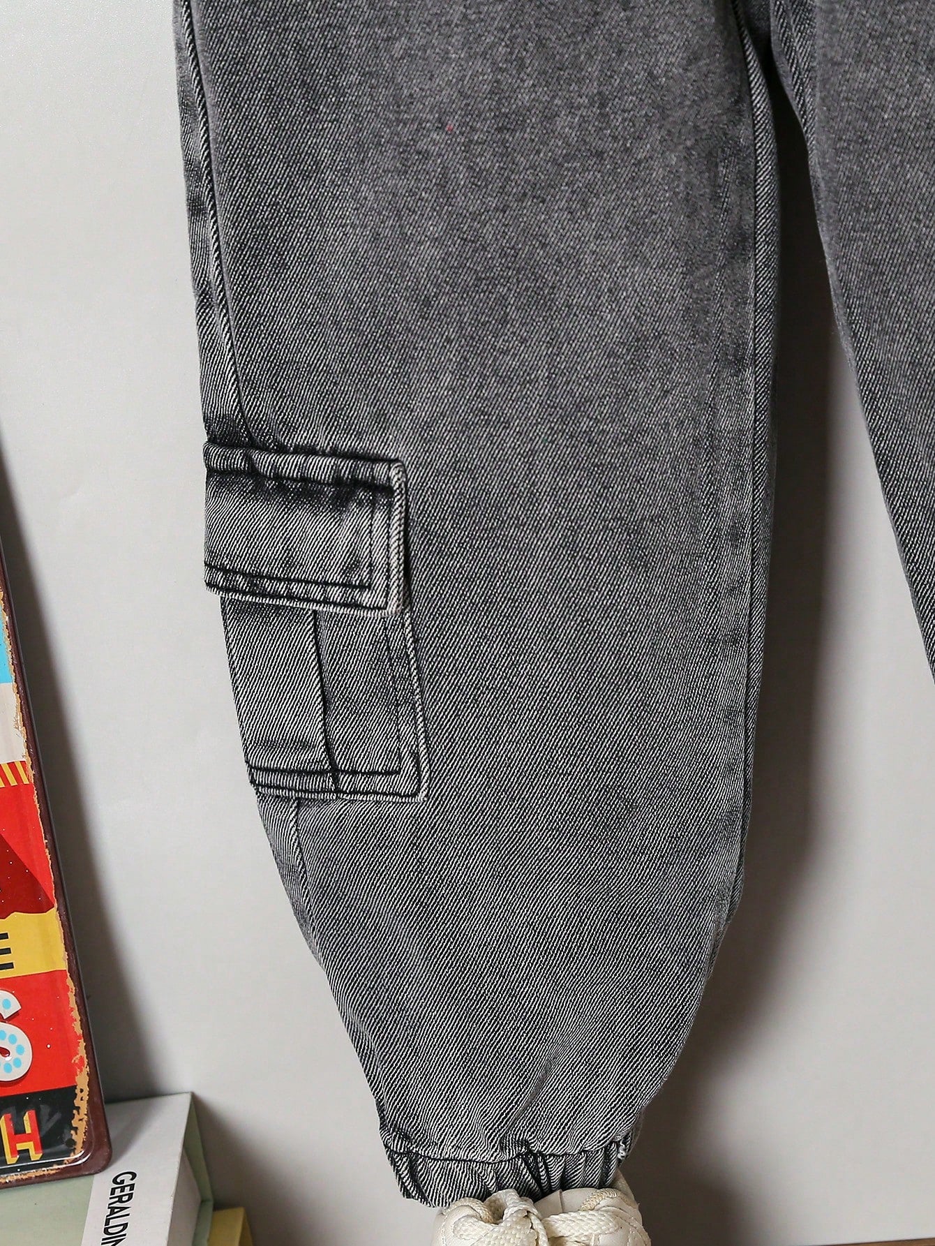 Boys' Straight Leg Denim Cargo Pants - Suitable For Everyday Wear