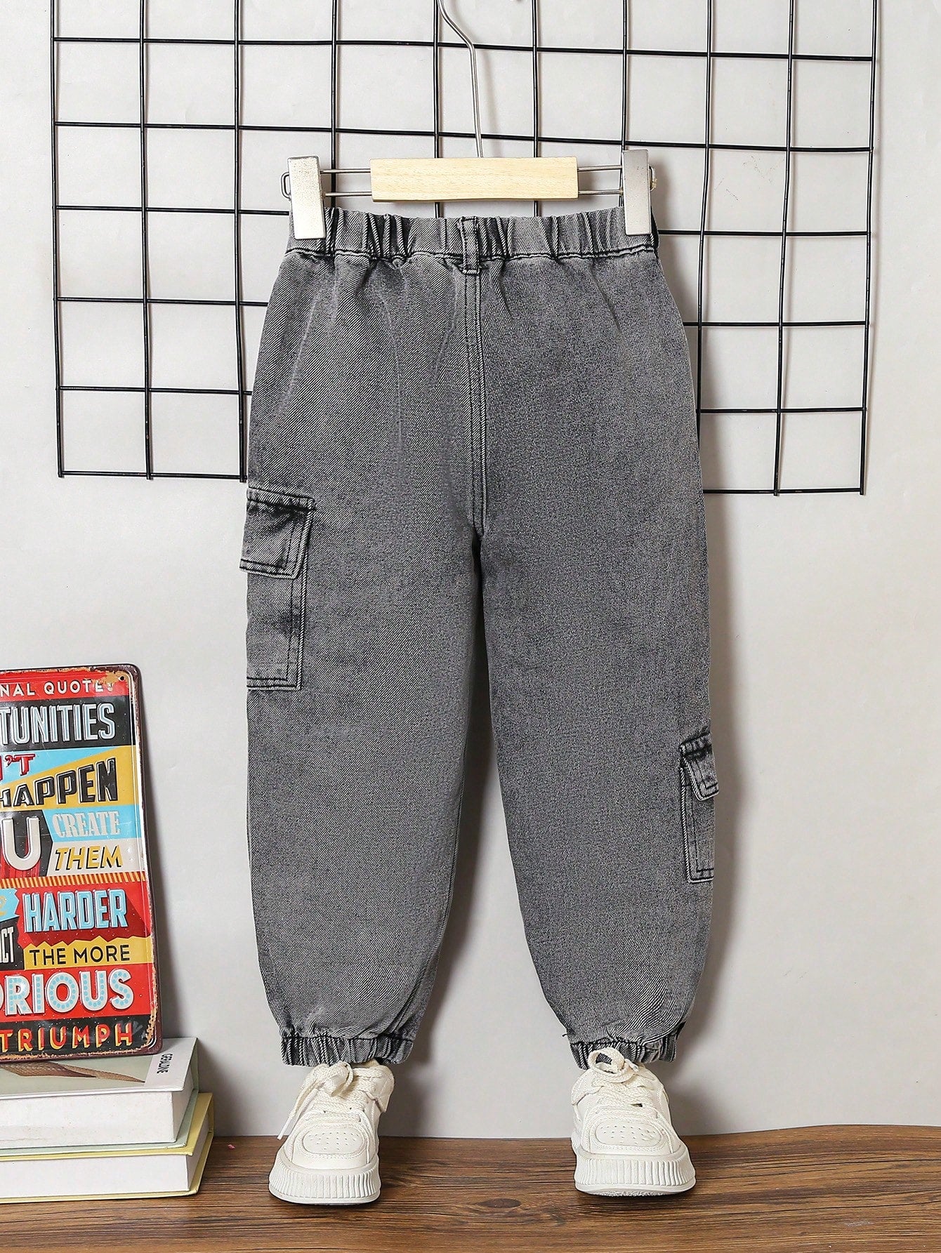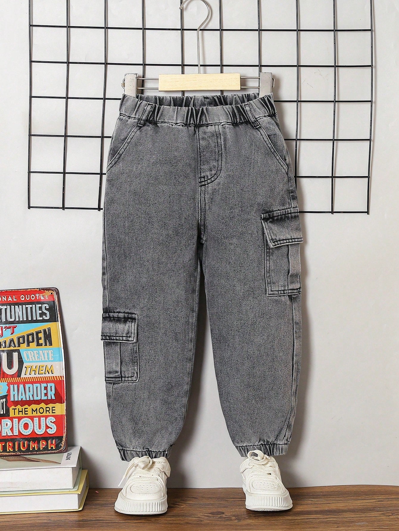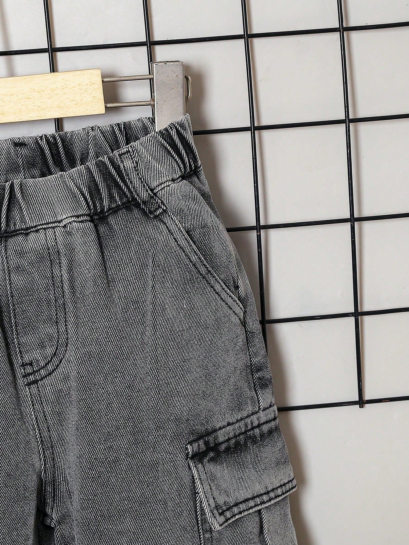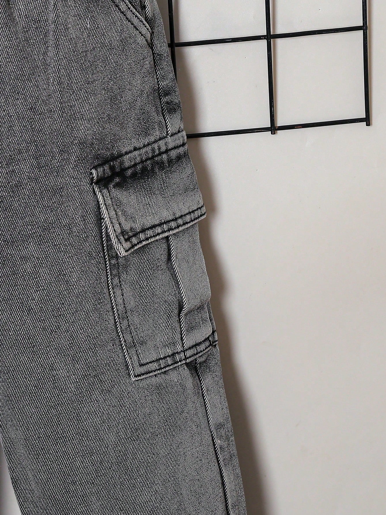Boys' Straight Leg Denim Cargo Pants - Suitable For Everyday Wear