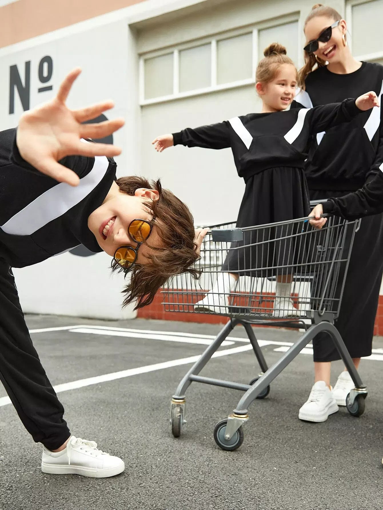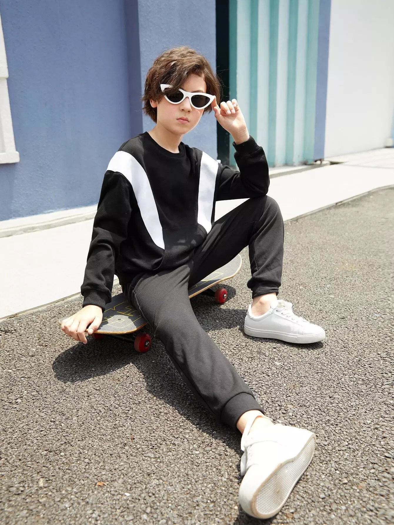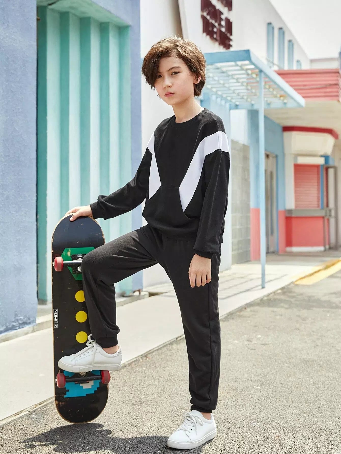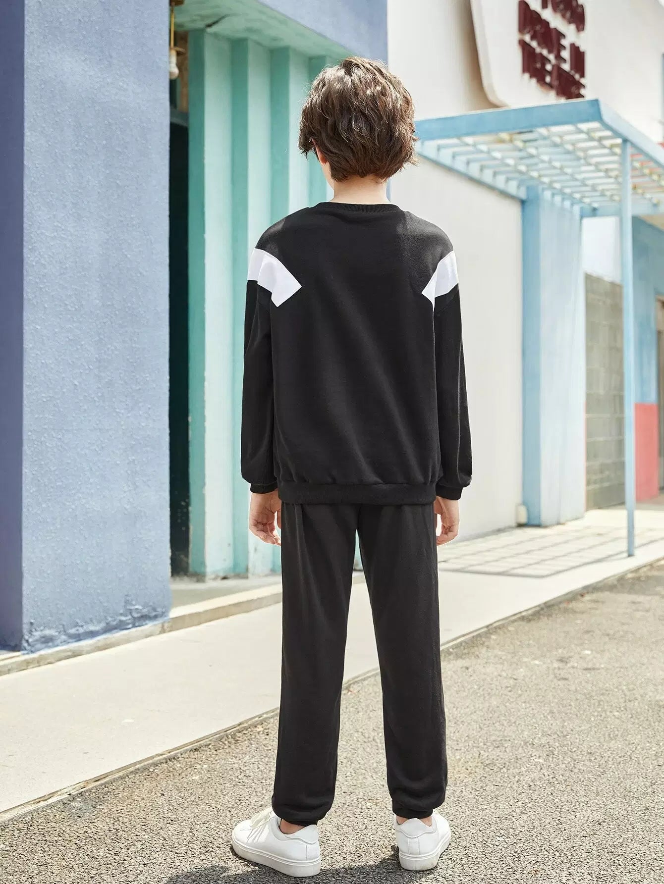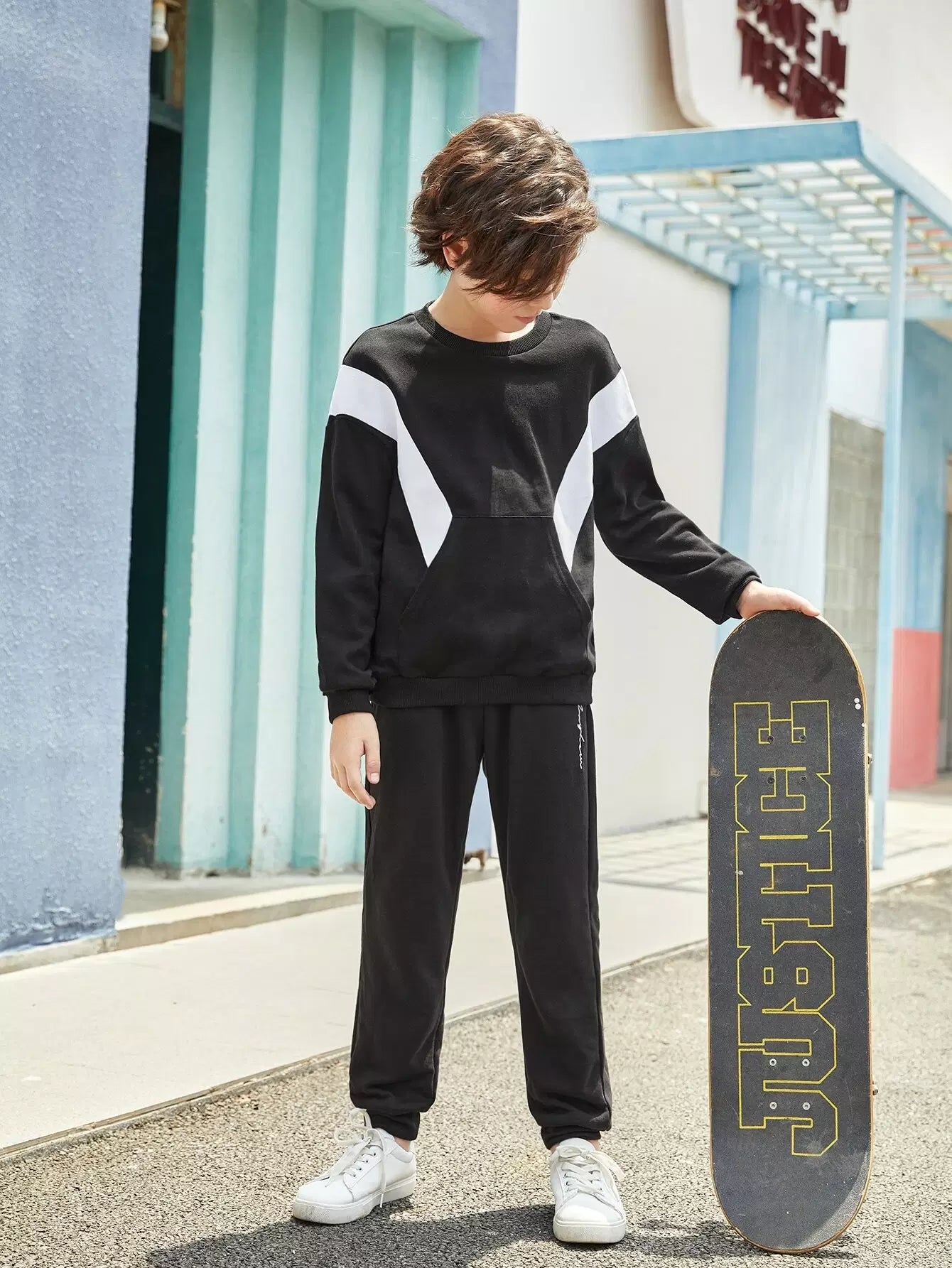 Boys Two Tone Kangaroo Pocket Sweatshirt & Letter Graphic Sweatpants