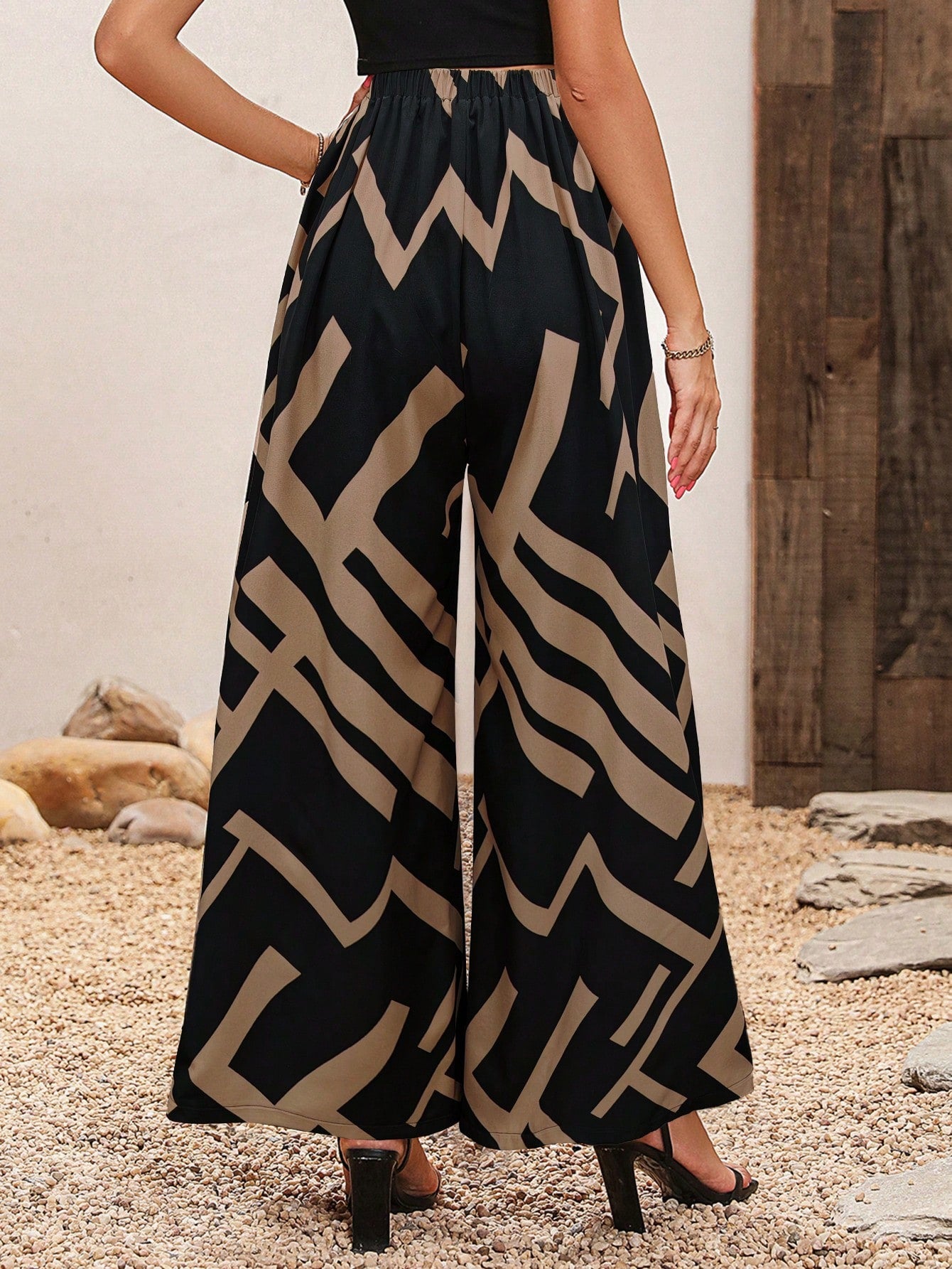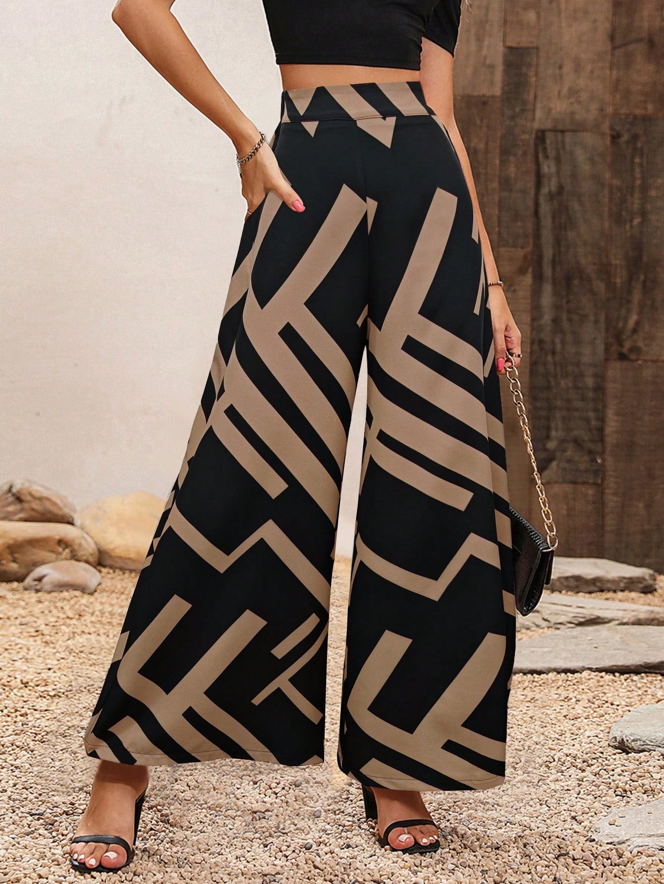 Breezaya Women's High Waist Geometric Printed Wide Leg Loose Elegant Long Pants Fall Cloth For Women