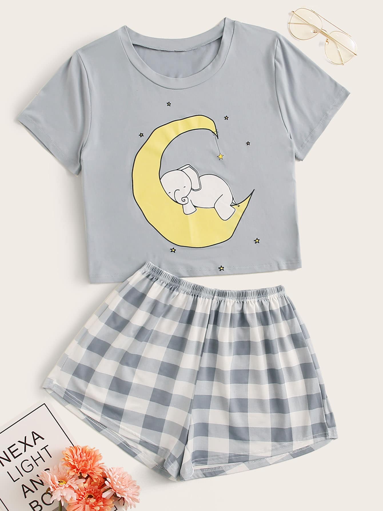 Buffalo Plaid & Cartoon Graphic PJ Set