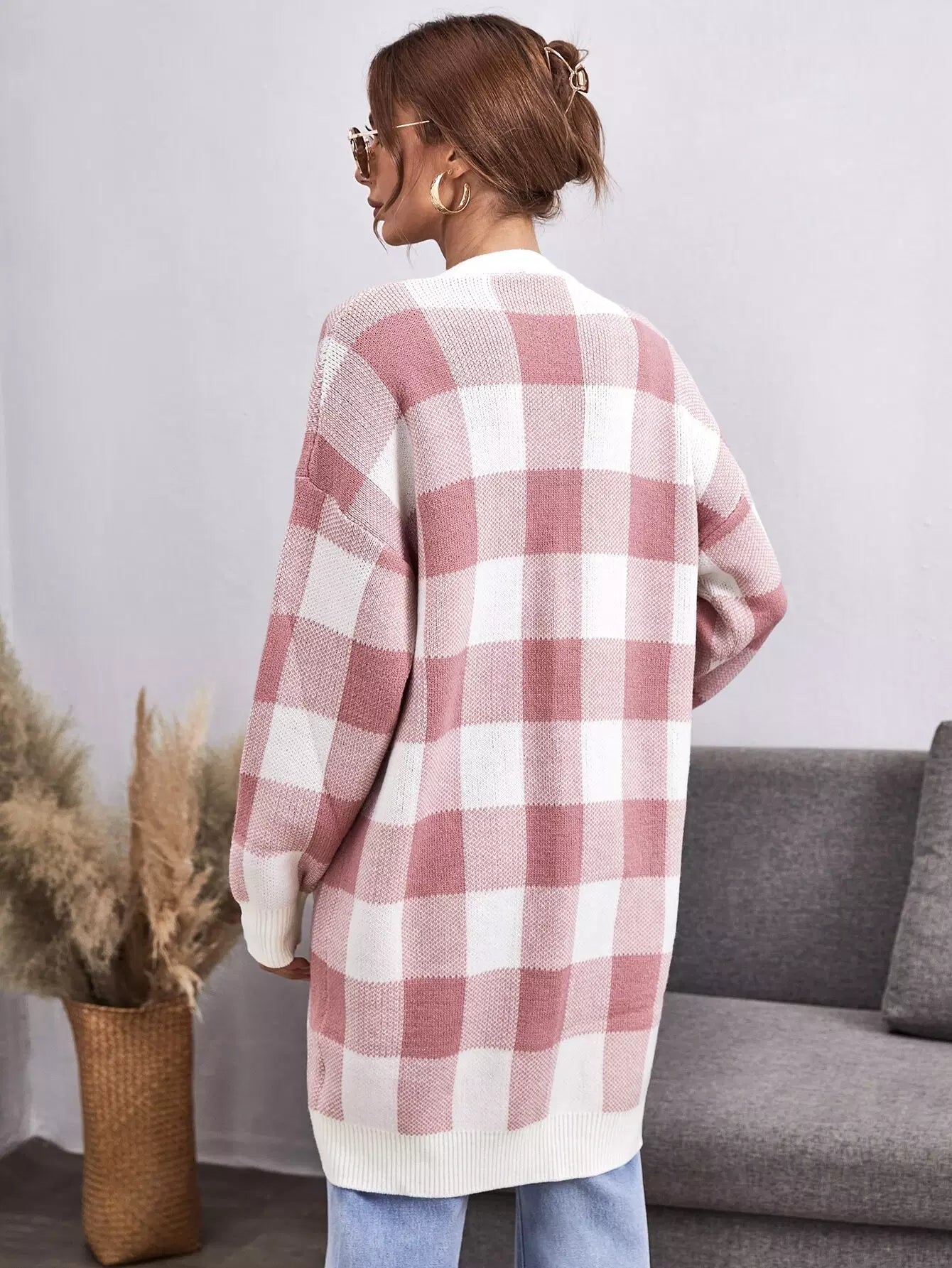 Buffalo Plaid Pattern Dual Pocket Drop Shoulder Cardigan