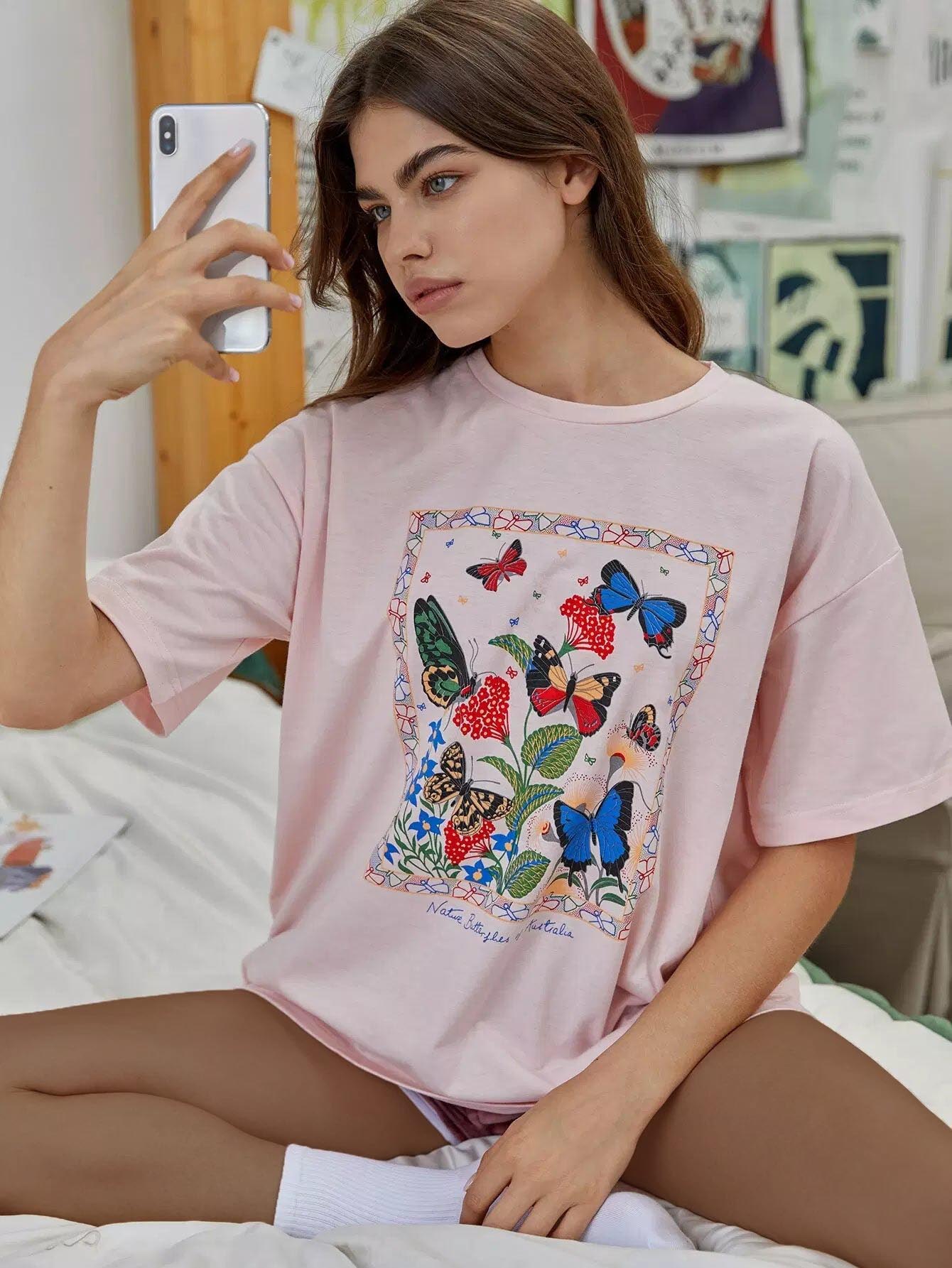Butterfly Print Oversized Tee