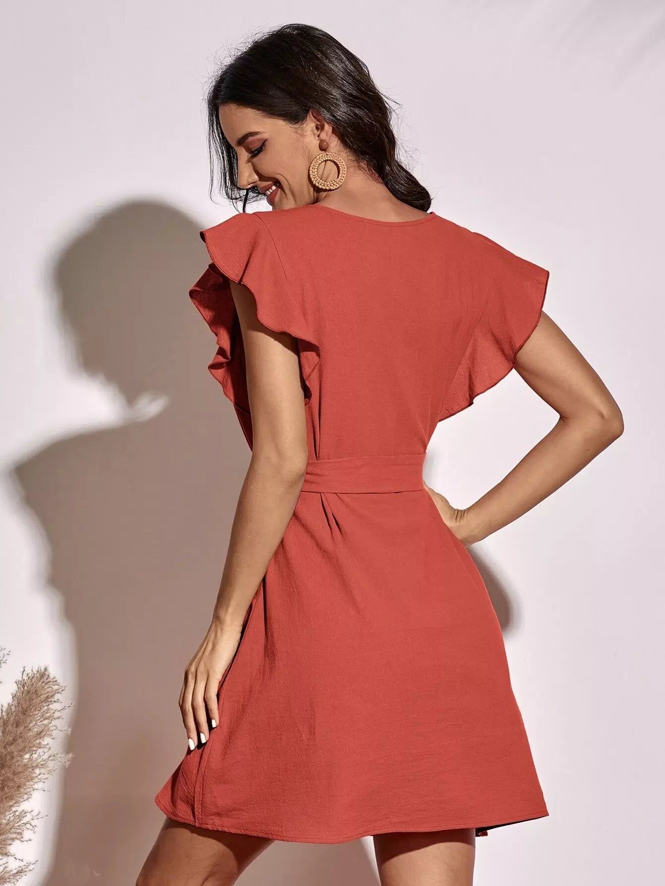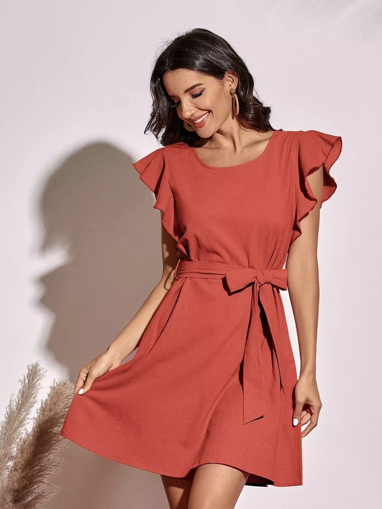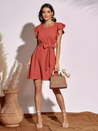 Butterfly Sleeve Dress Without Belt