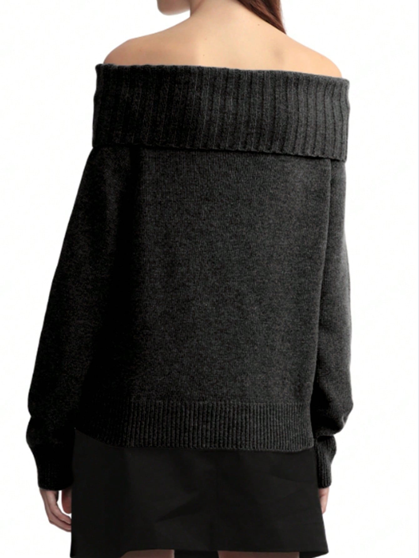 Cأ©volie Women's Solid Color Black Off Shoulder Long Sleeve Sweater