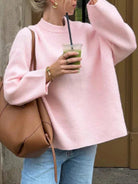 Cأ©volie Women's Solid Color Round Neck Loose Fit Batwing Long Sleeve Casual Sweater