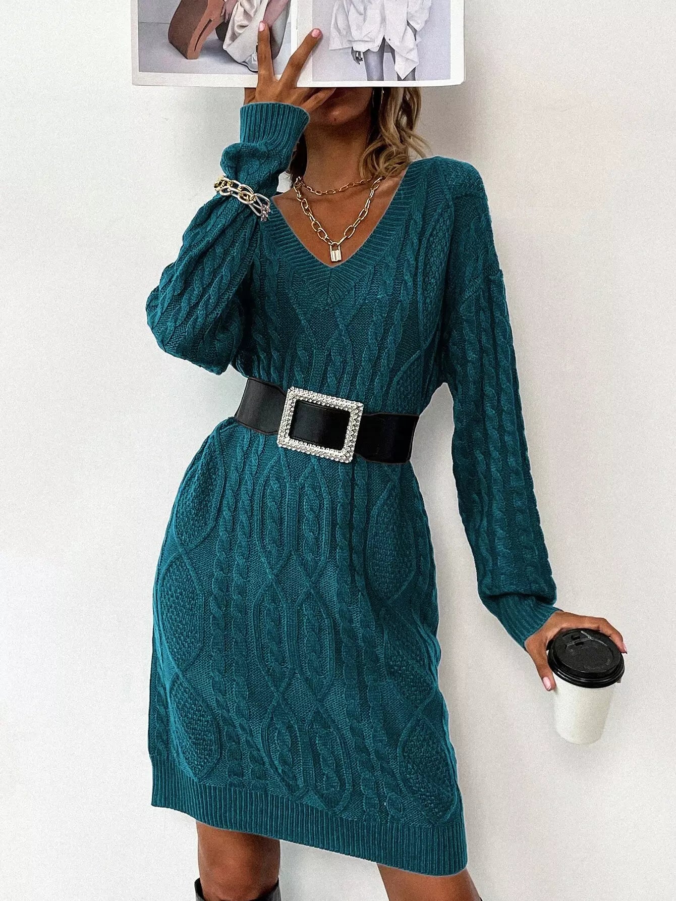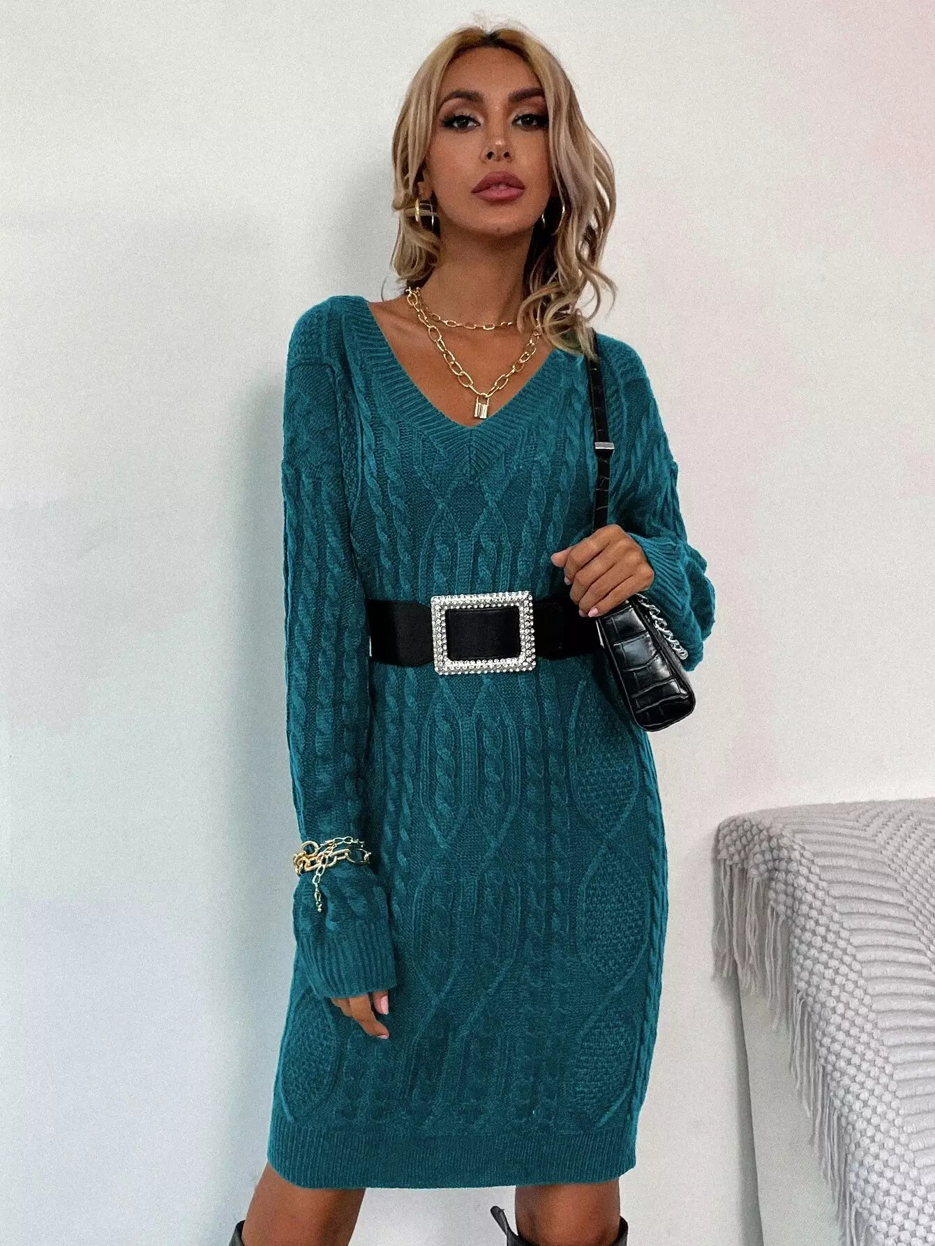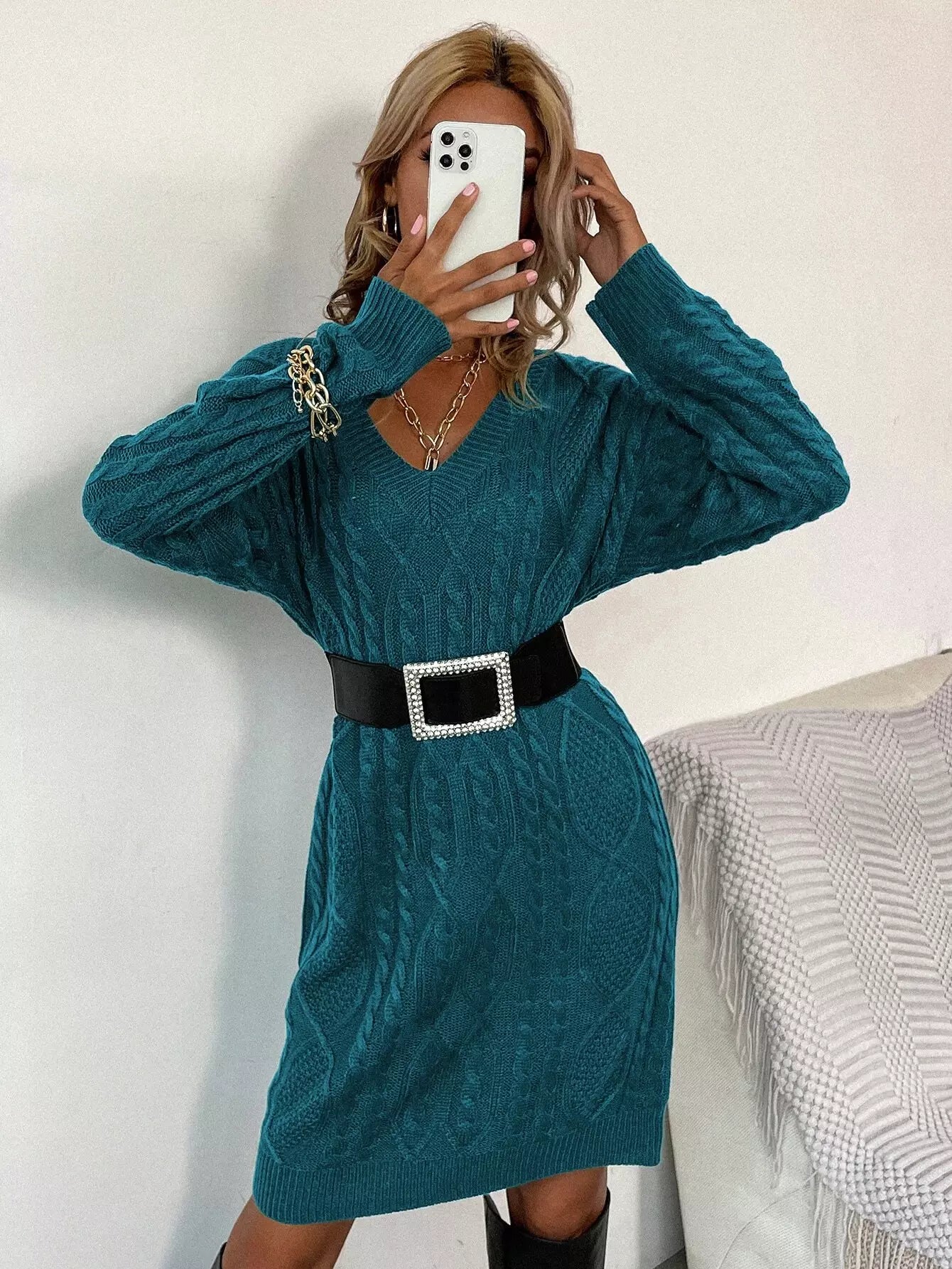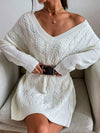 Cable Knit Drop Shoulder Sweater Dress Without Belt