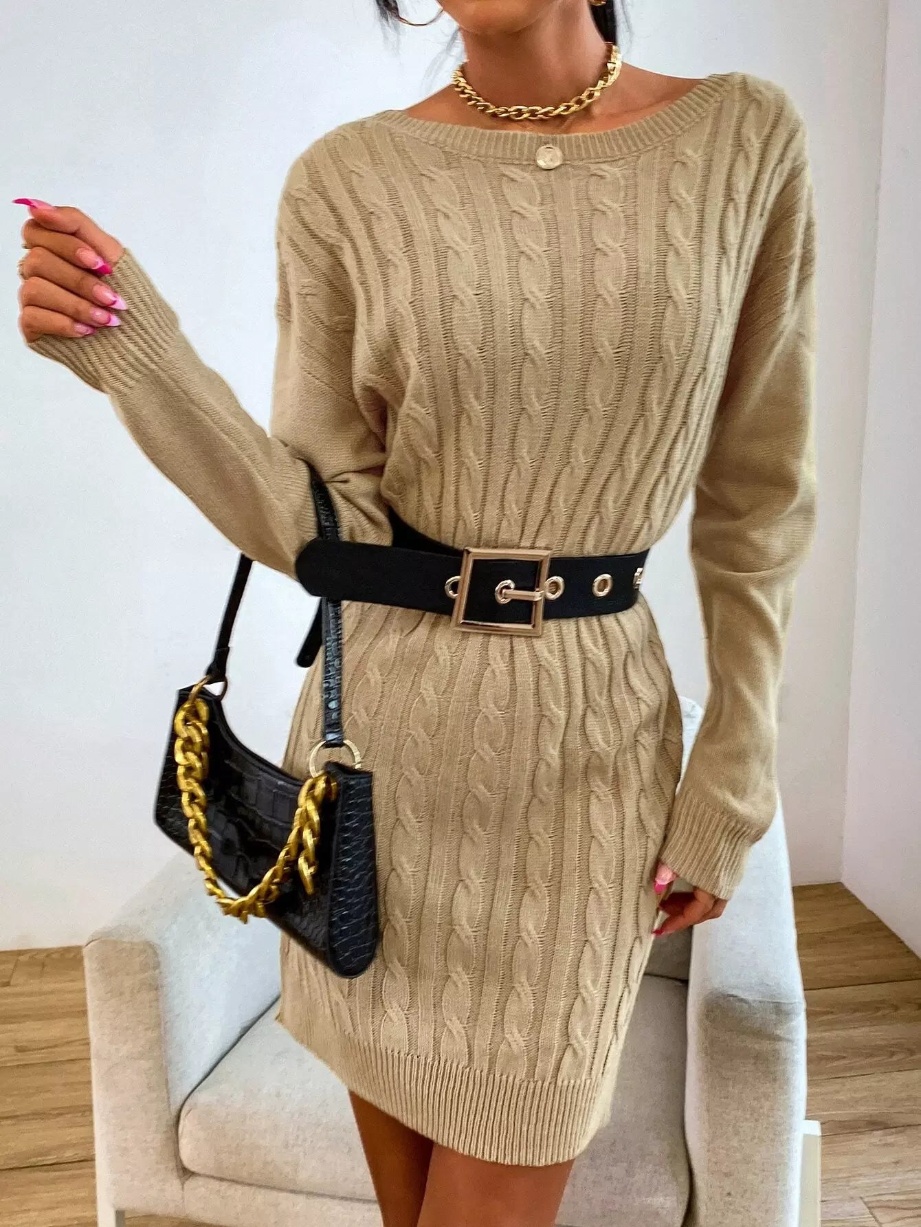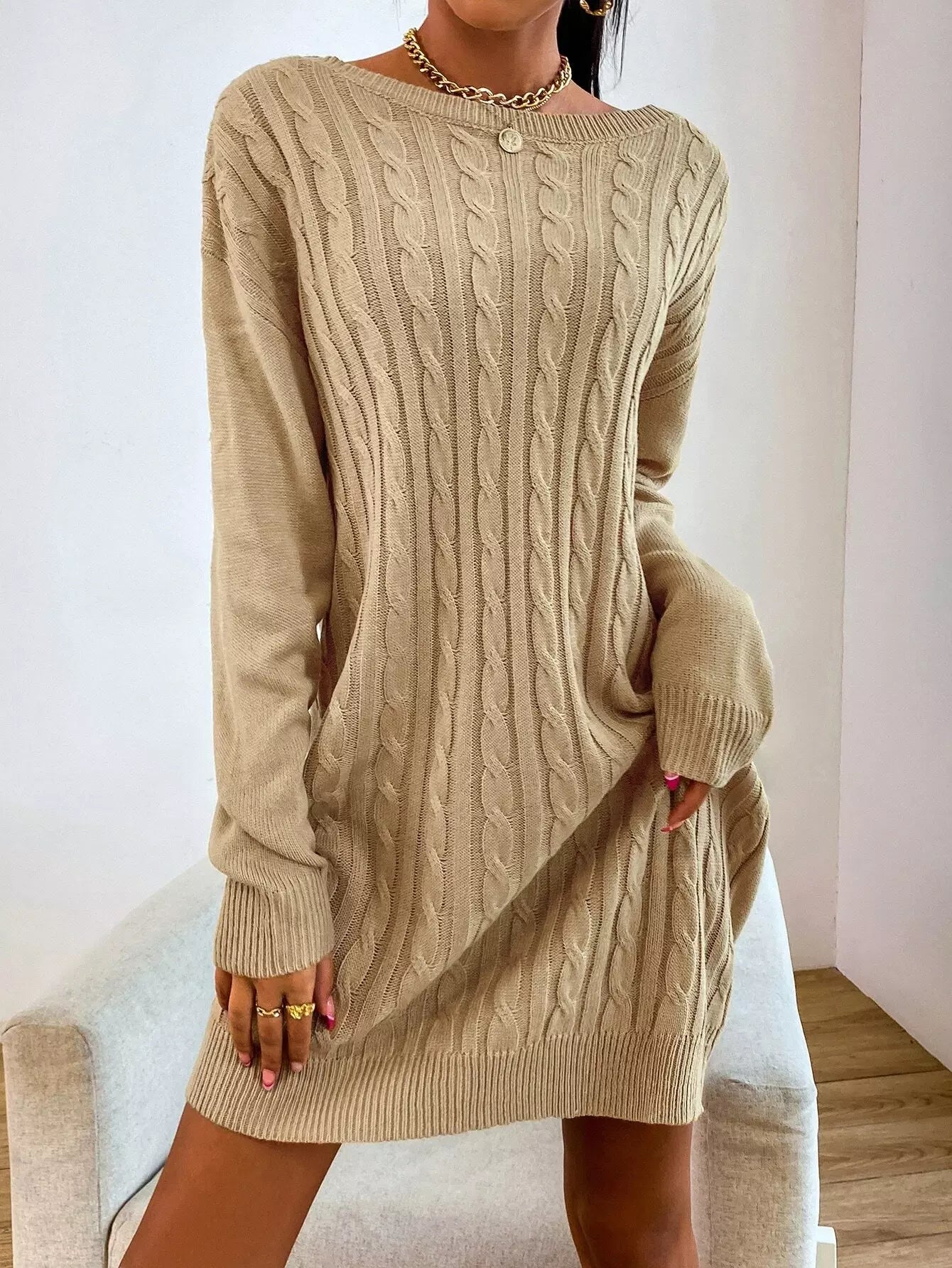 Women - Cable Knit Drop Shoulder Sweater Dress Without Belt