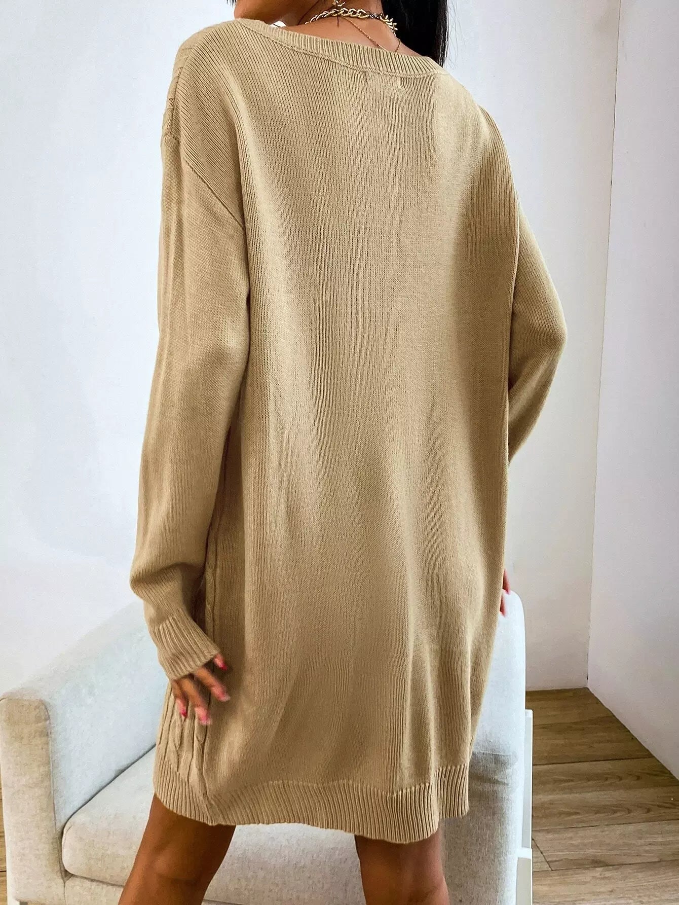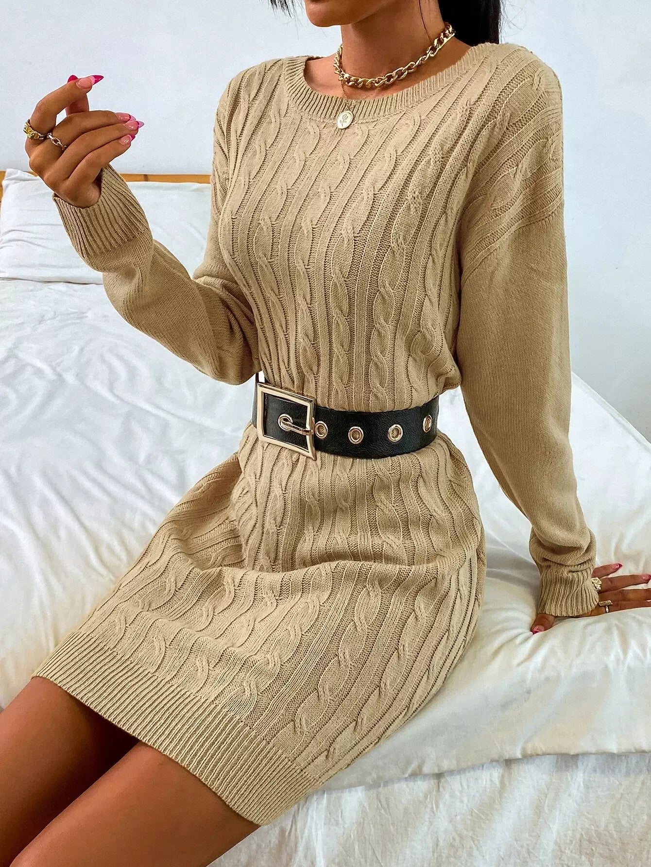 Cable Knit Drop Shoulder Sweater Dress Without Belt