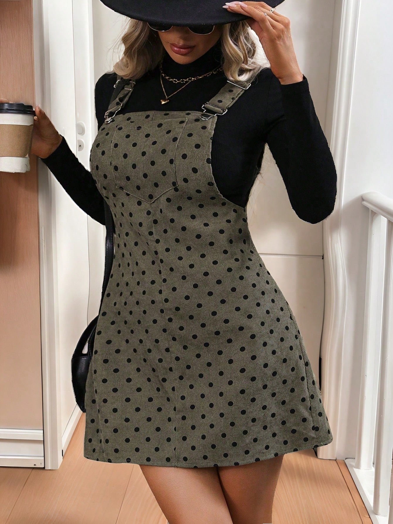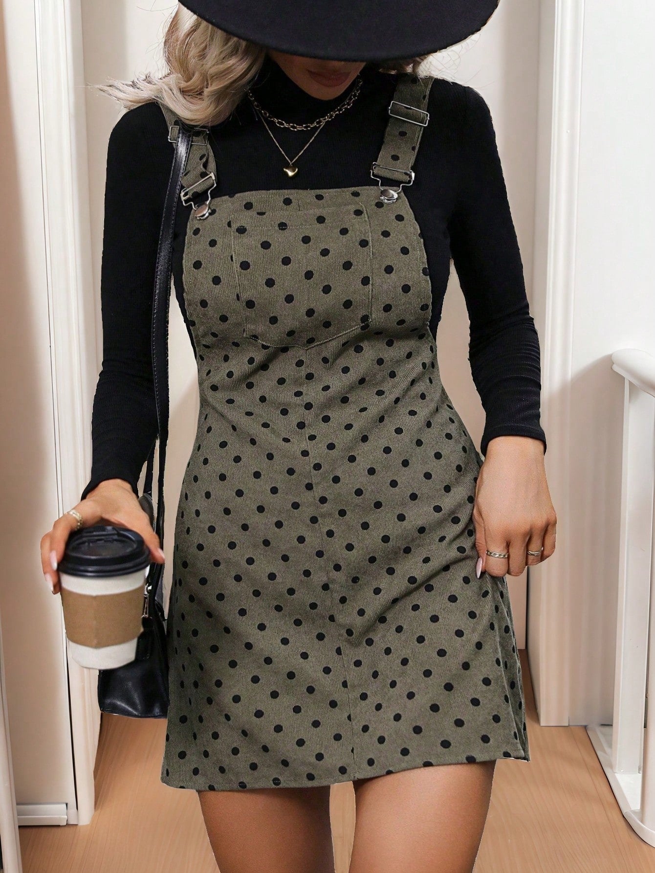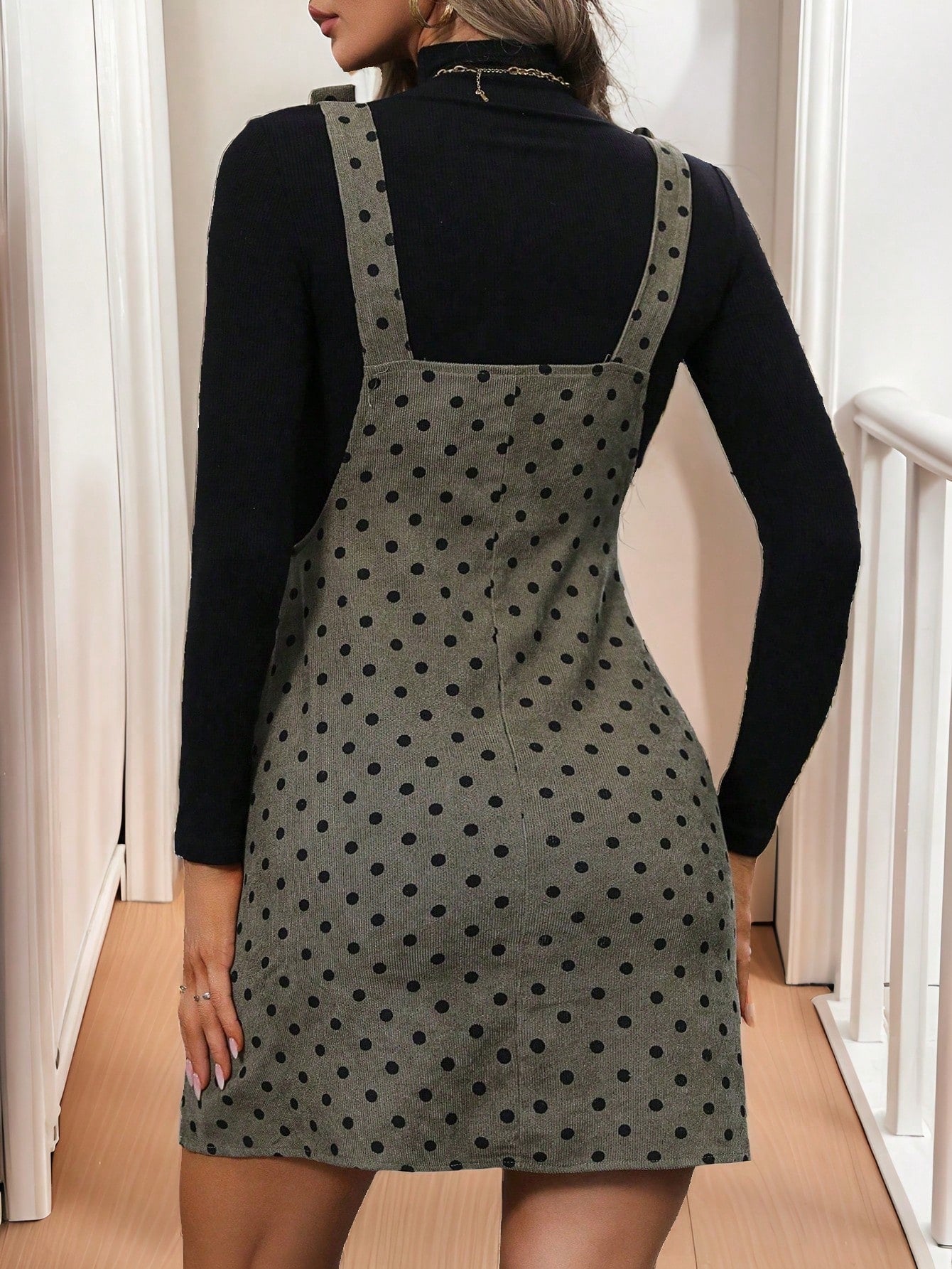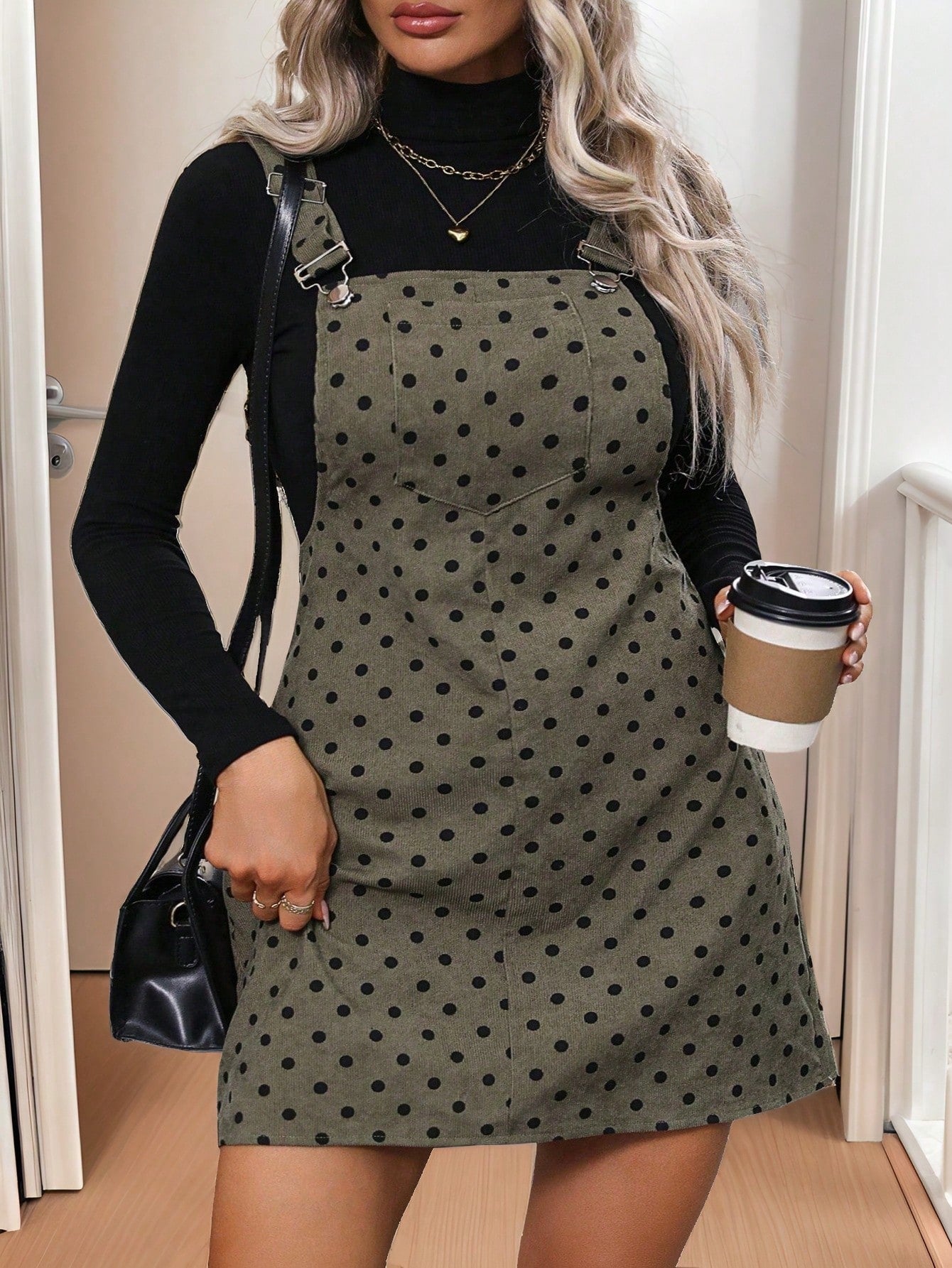 Calvaya Plus Size Women Polka Dot Print Pocket Casual Suspender Dress
