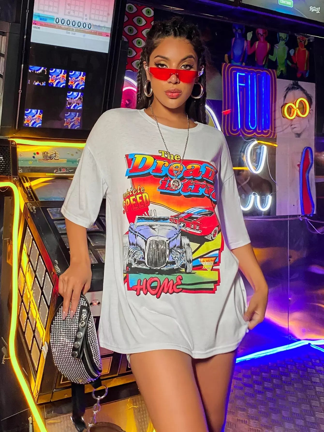 Women - Car And Letter Graphic Boyfriend Tee
