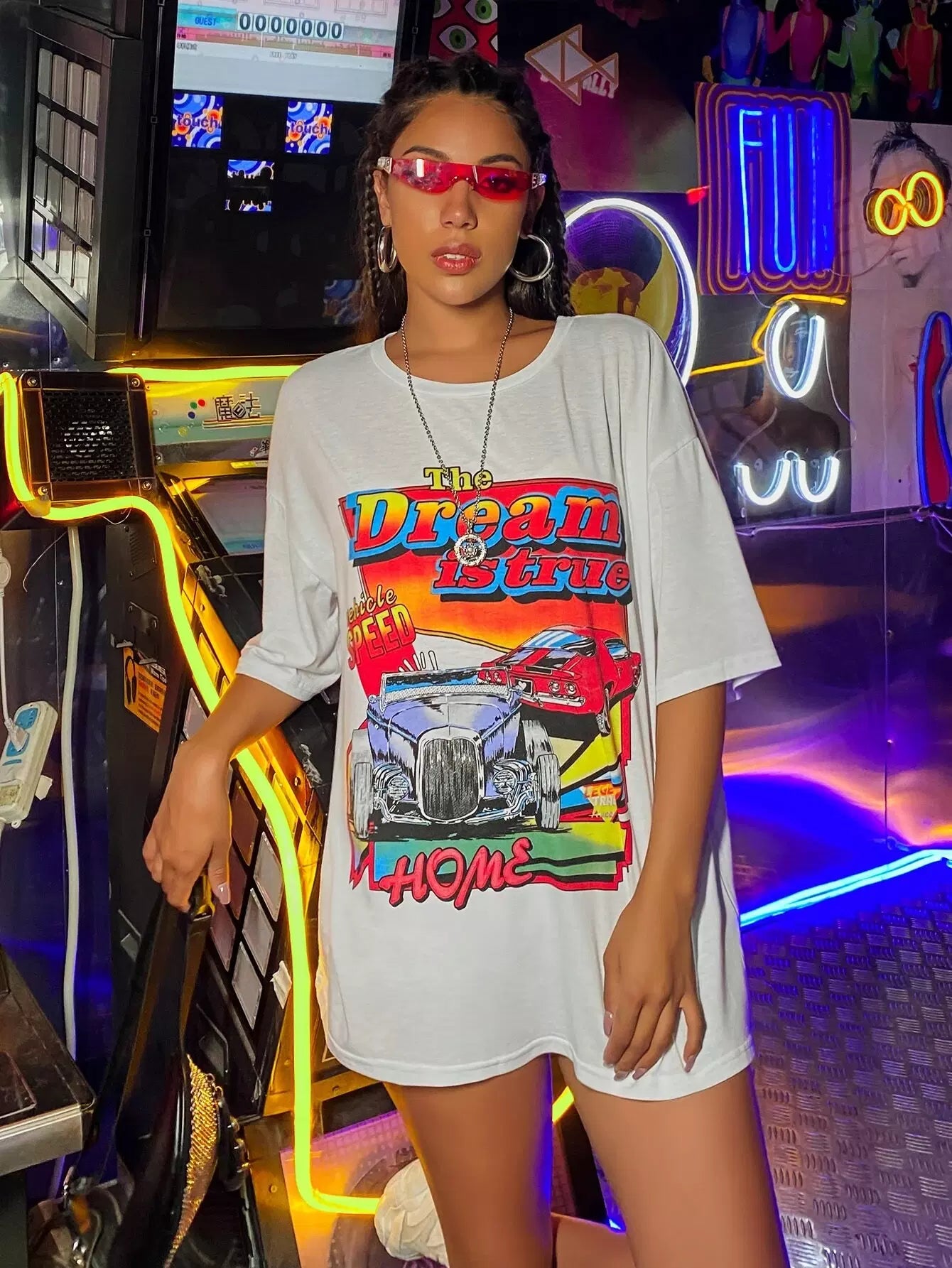 Car And Letter Graphic Boyfriend Tee