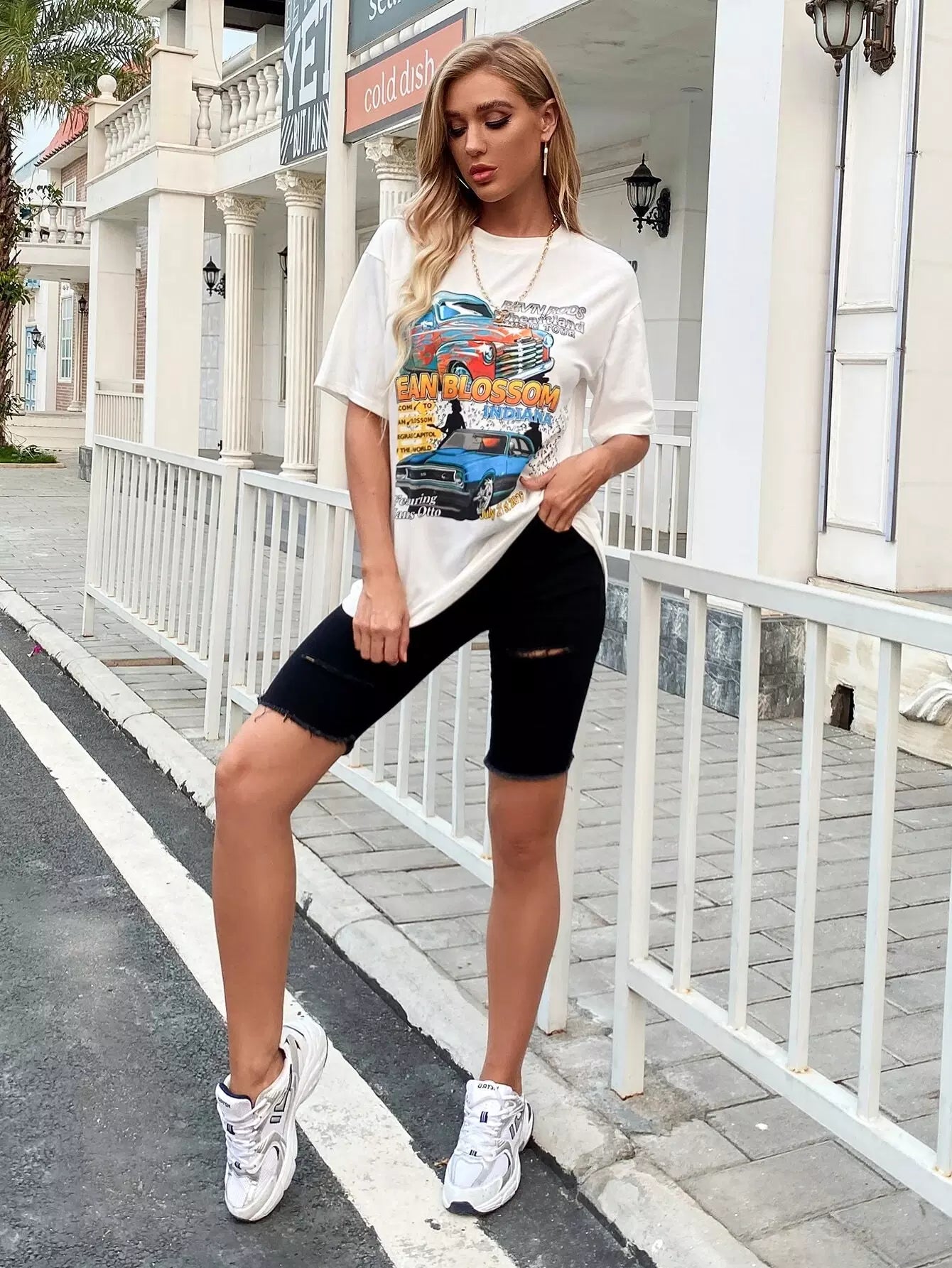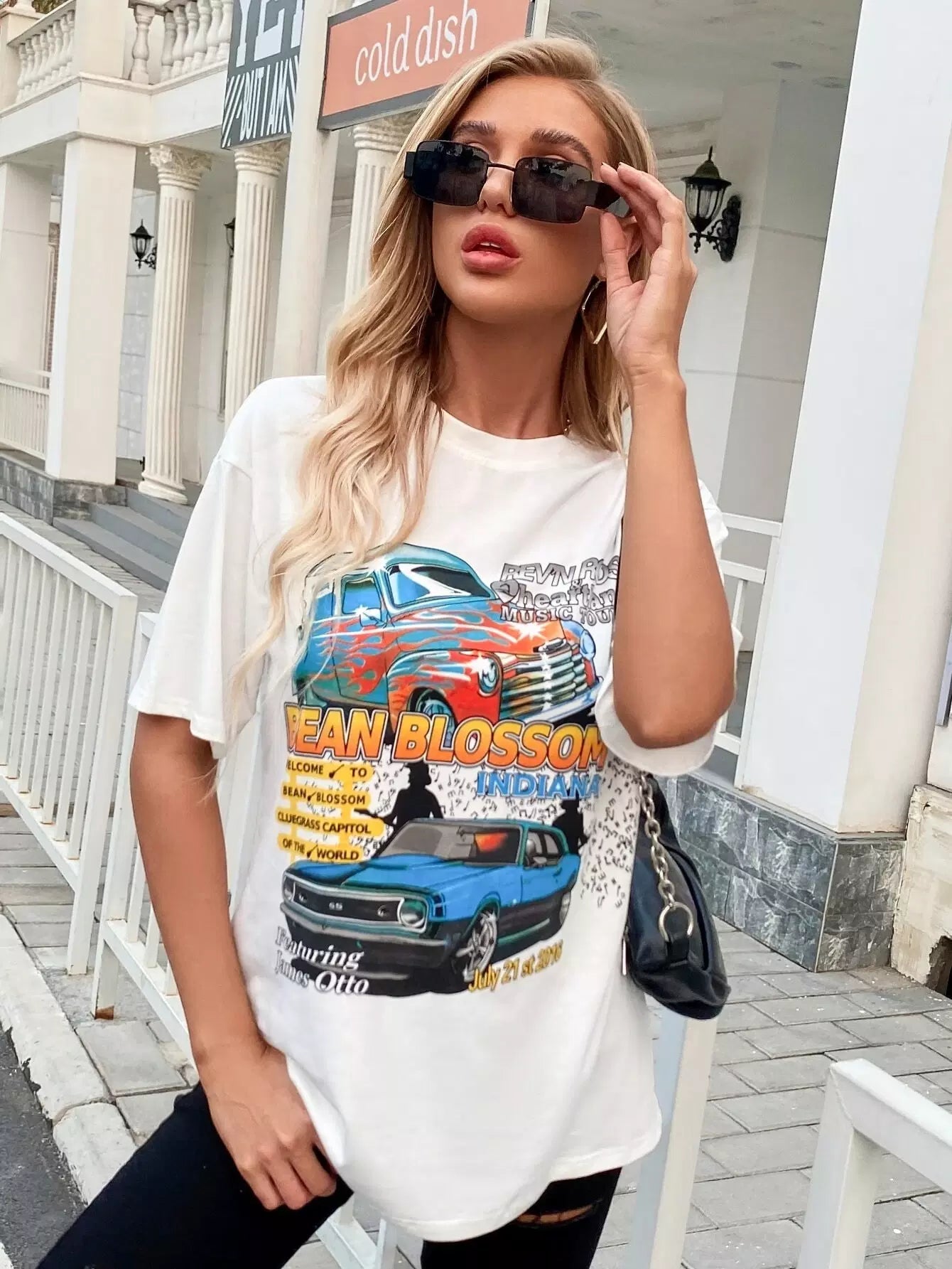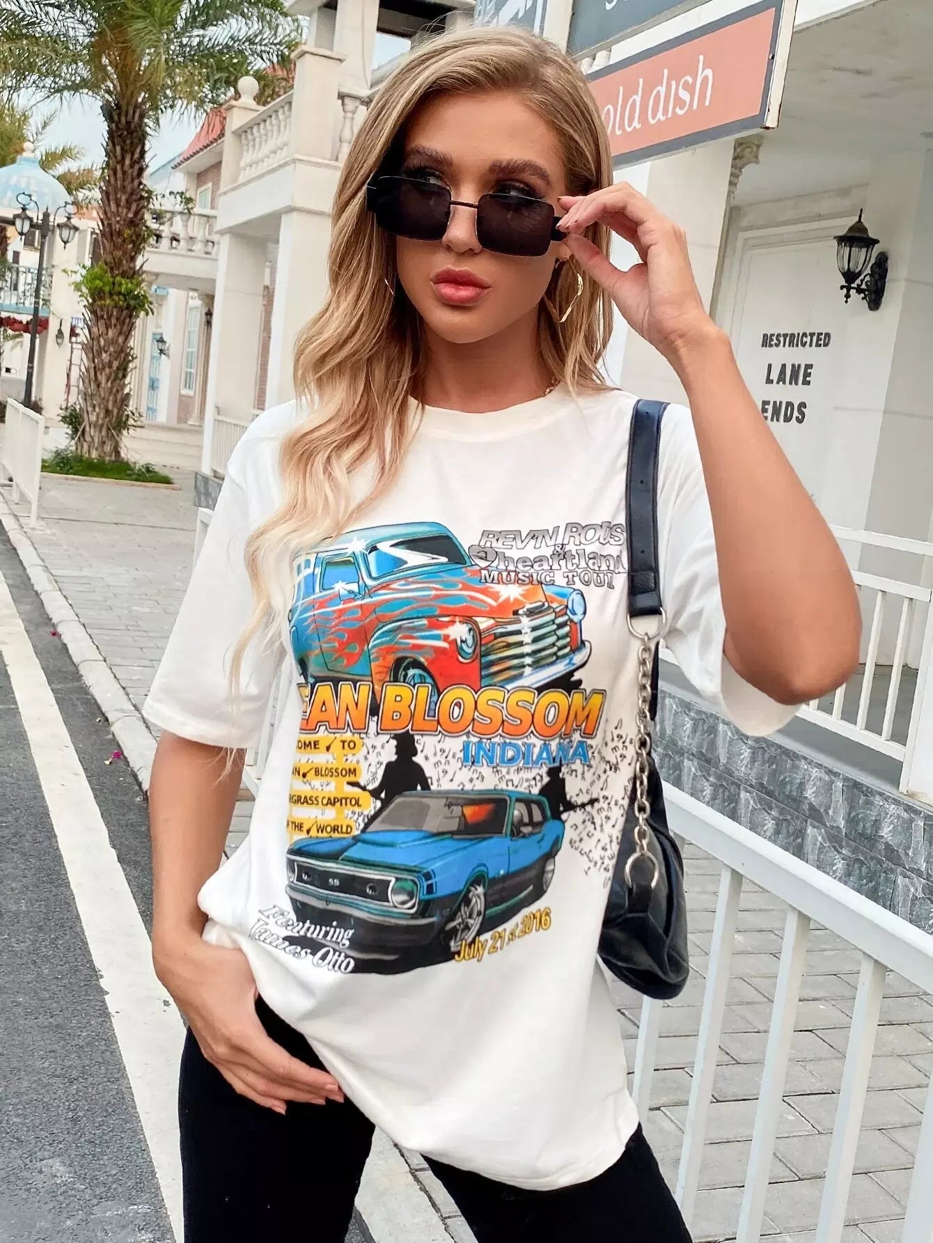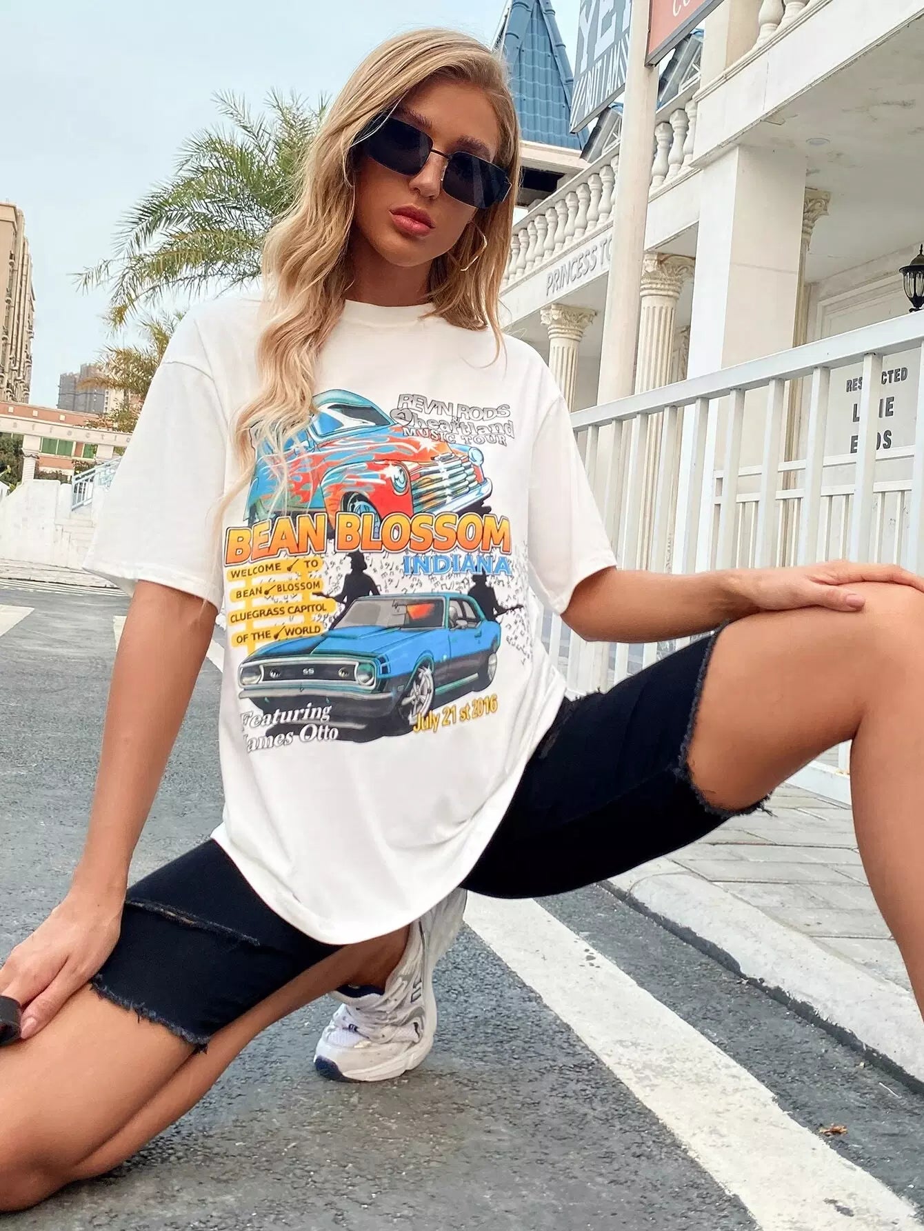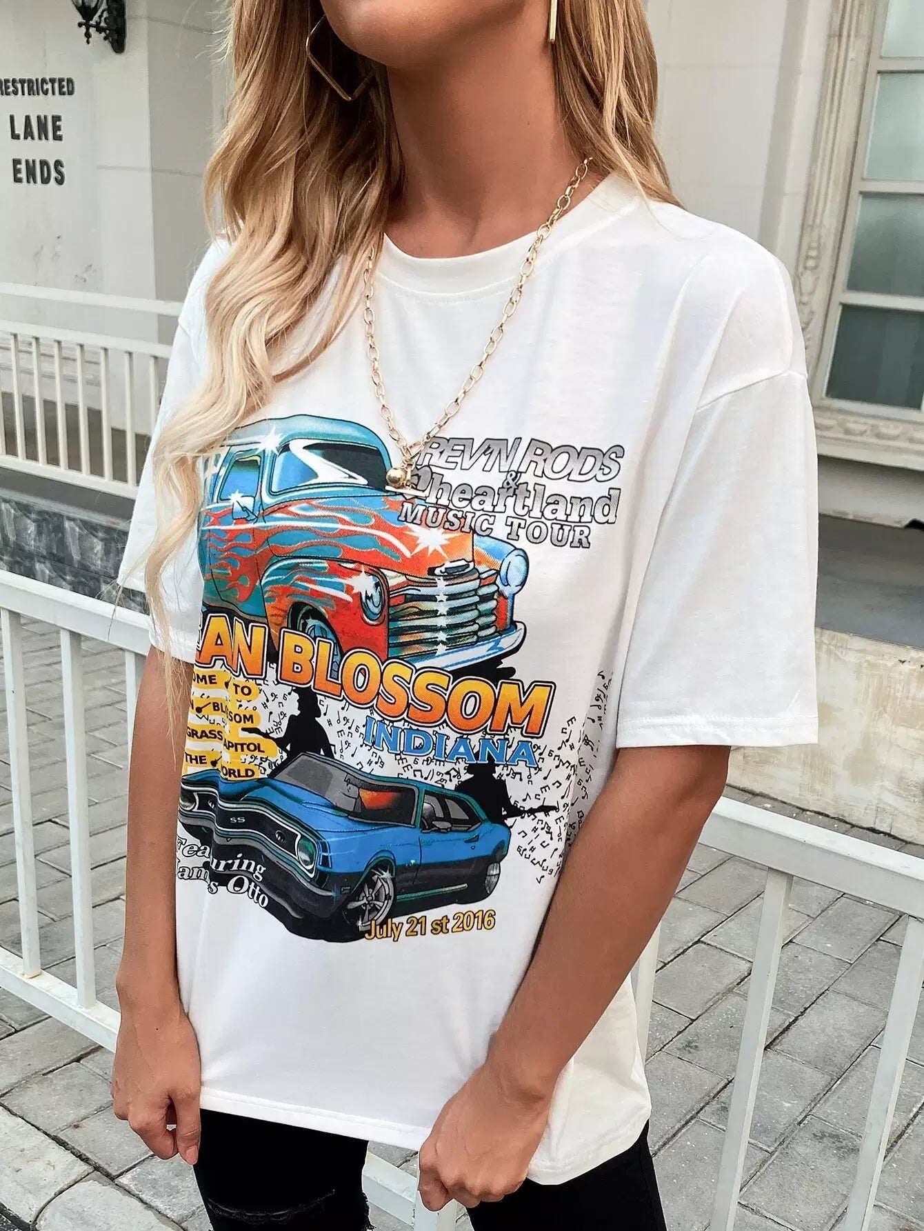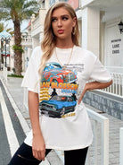Women - Car And Letter Graphic Drop Shoulder Tee