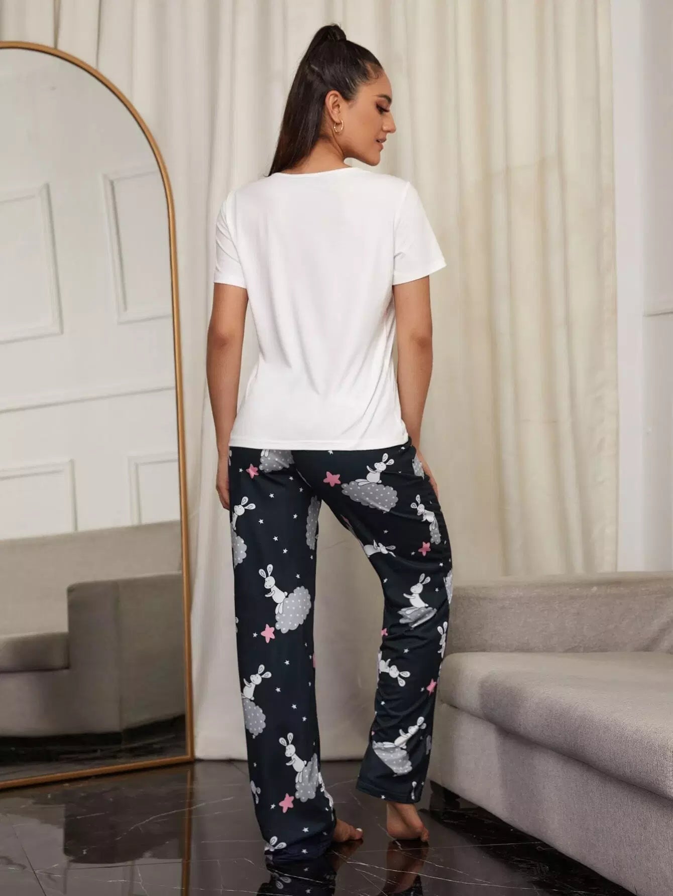 Women - Cartoon And Letter Graphic PJ Set