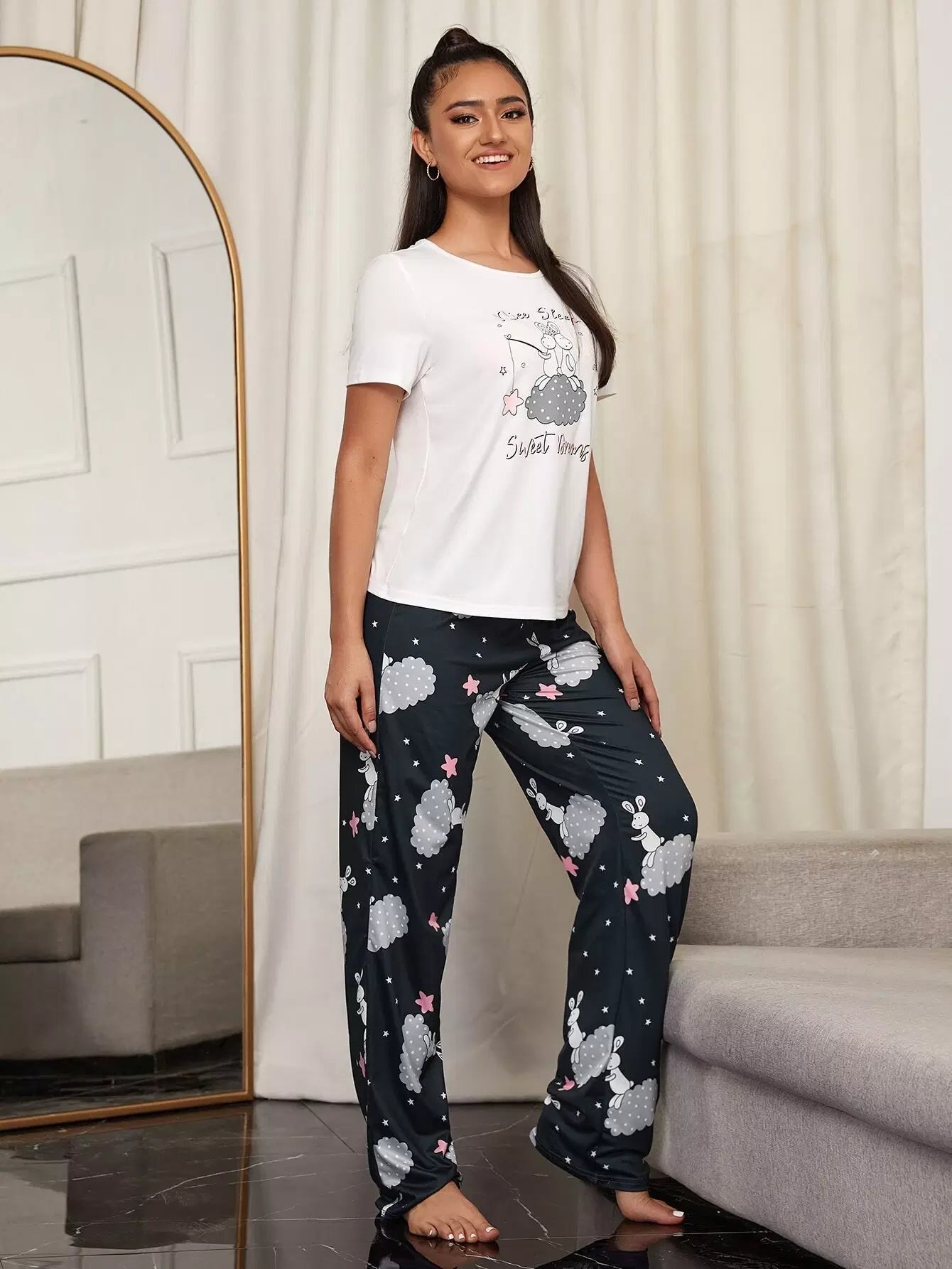 Cartoon And Letter Graphic PJ Set