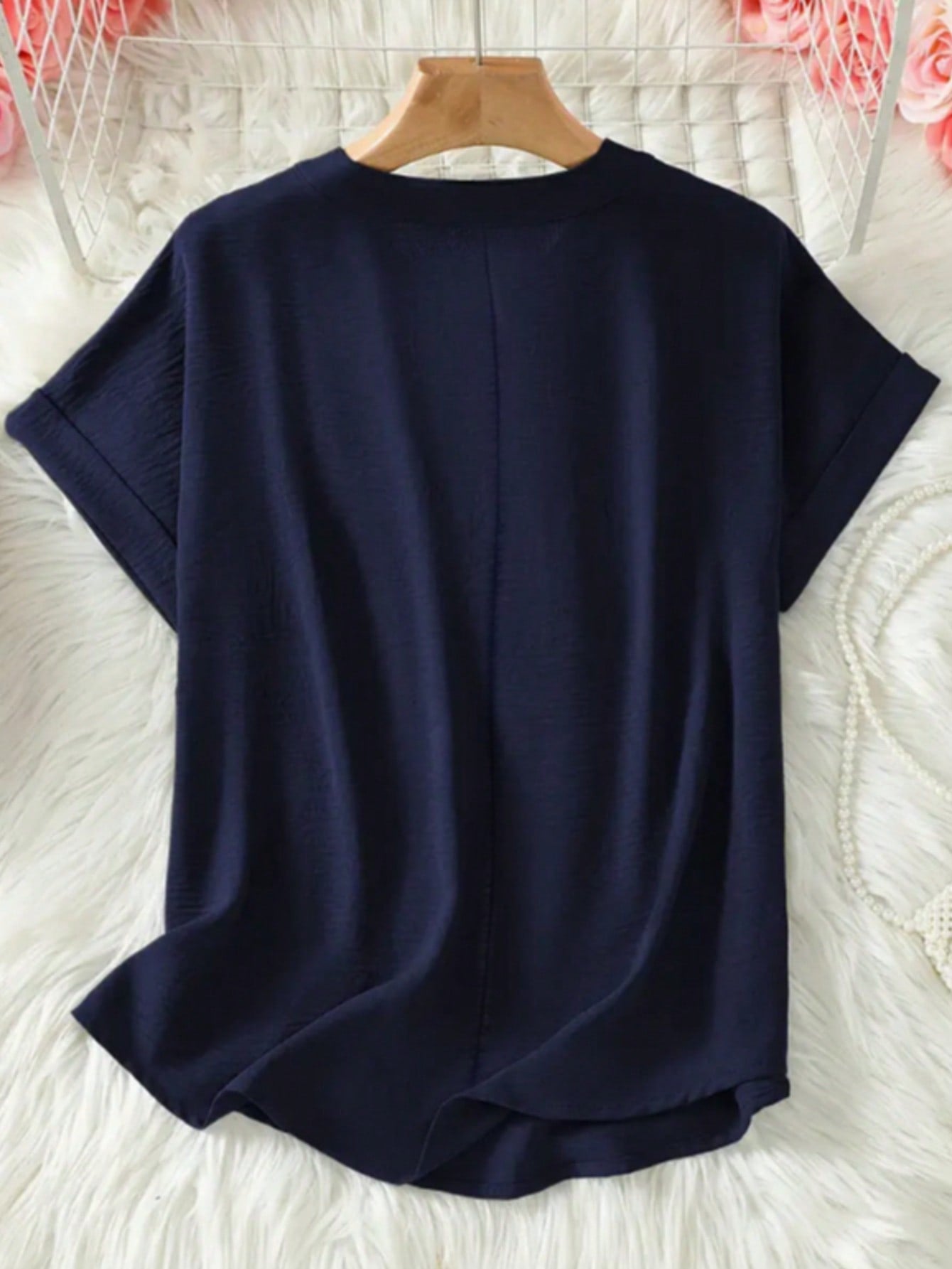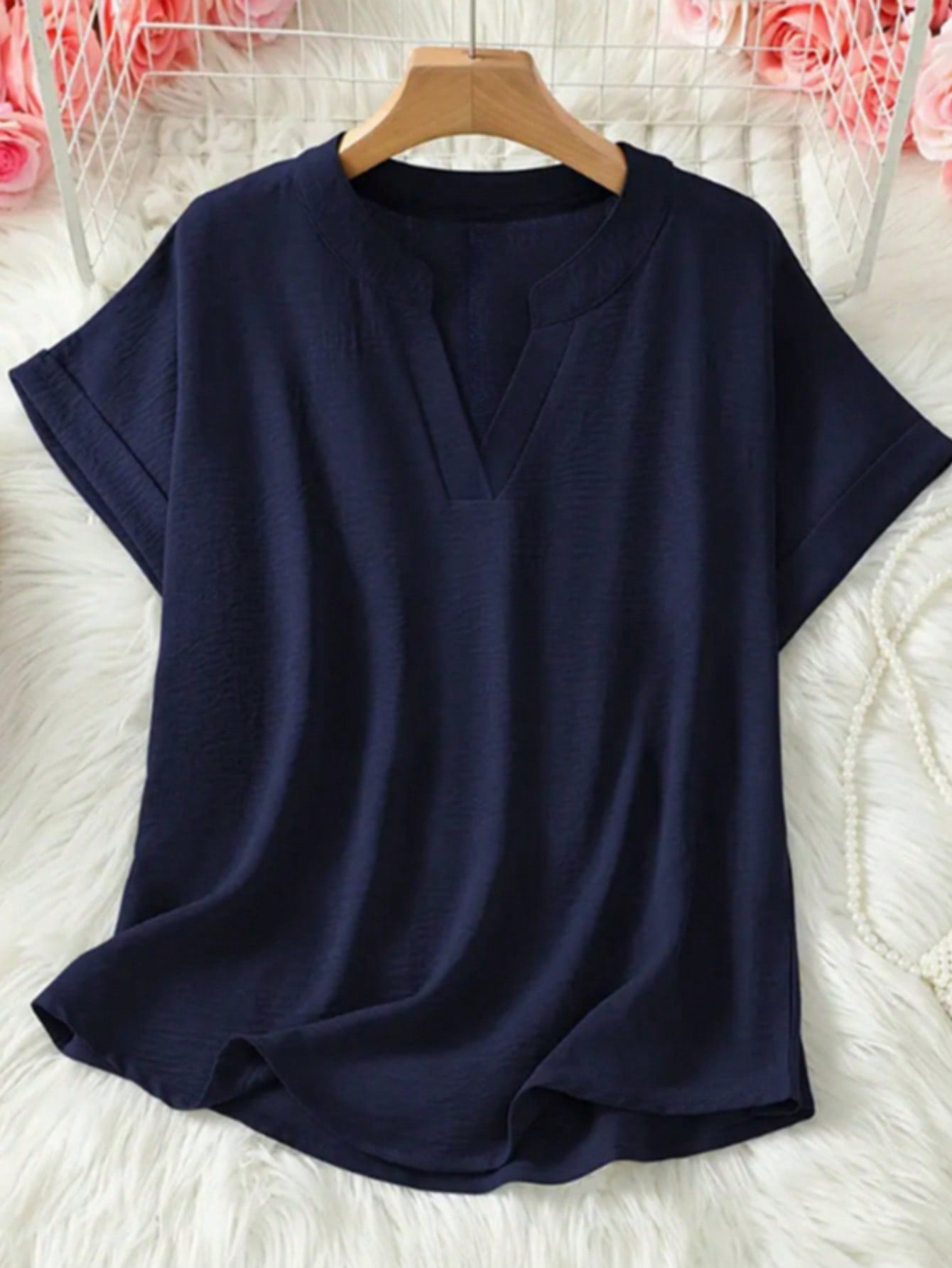 Casual Chic | Women V-Neck Oversized Short Sleeve Solid Loose Blouse