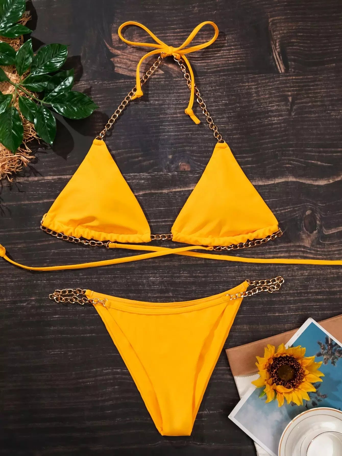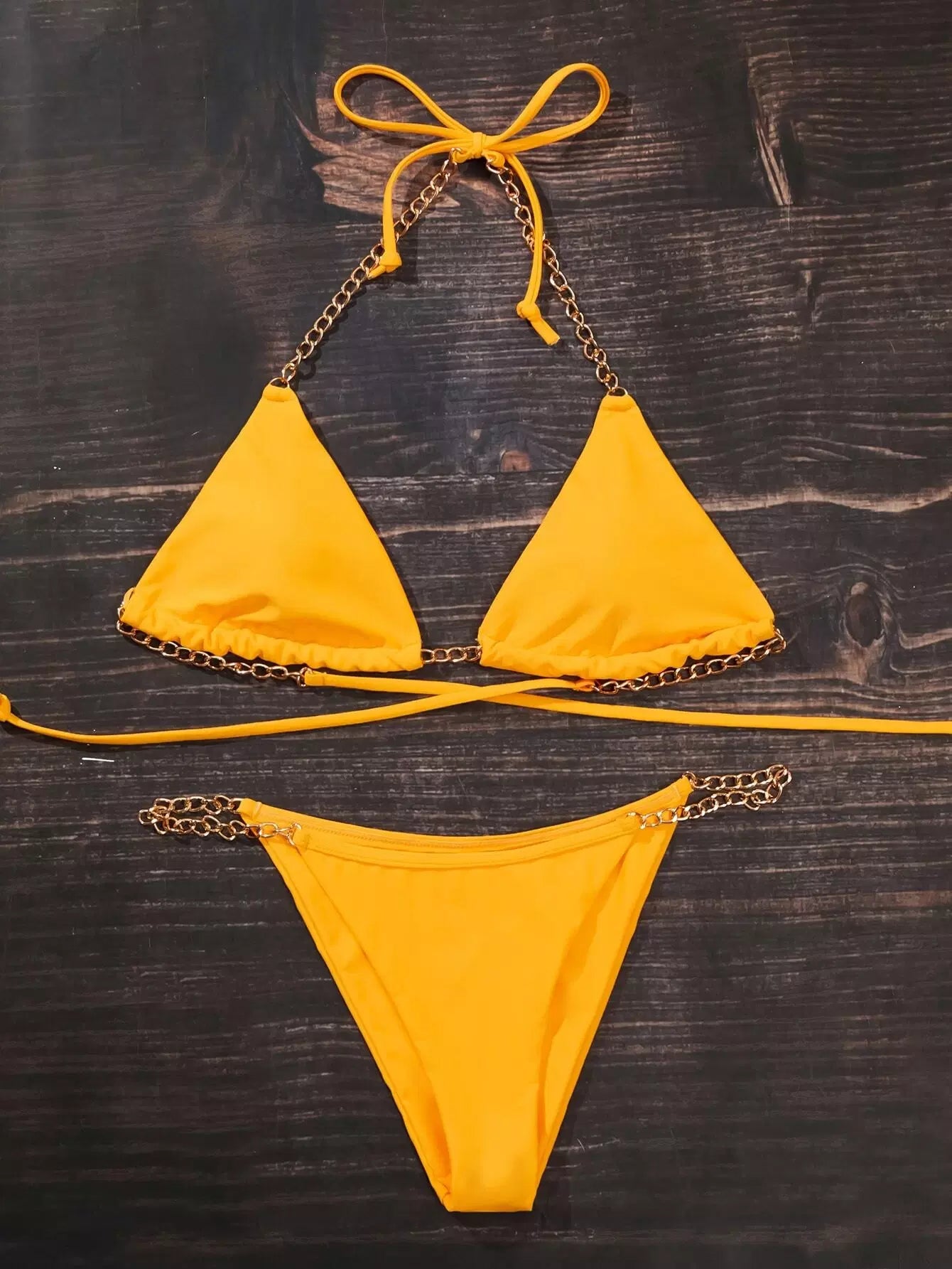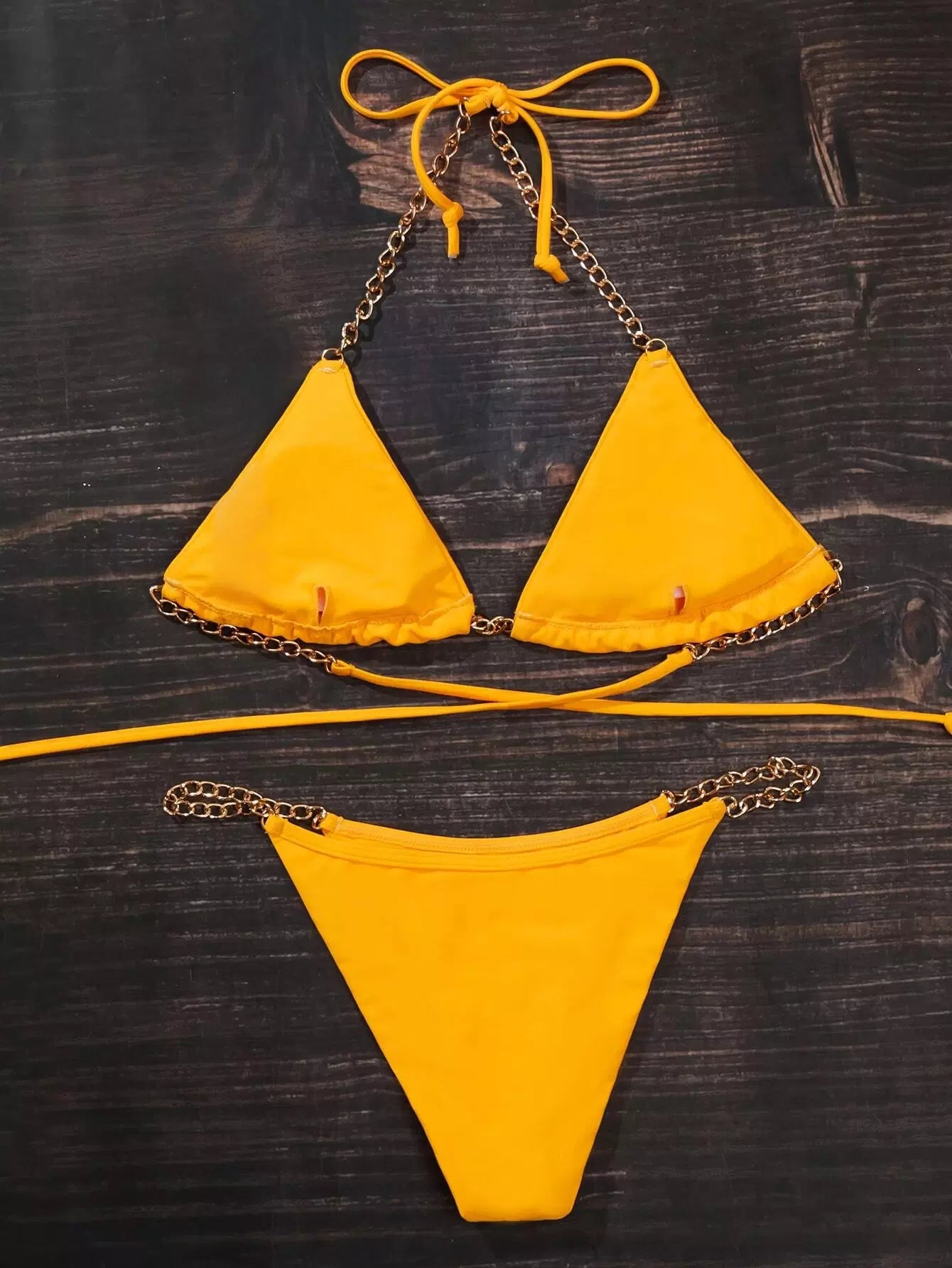 Chain Strap Thong Bikini Swimsuit