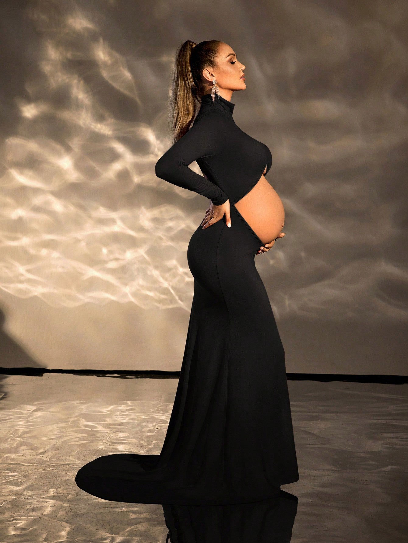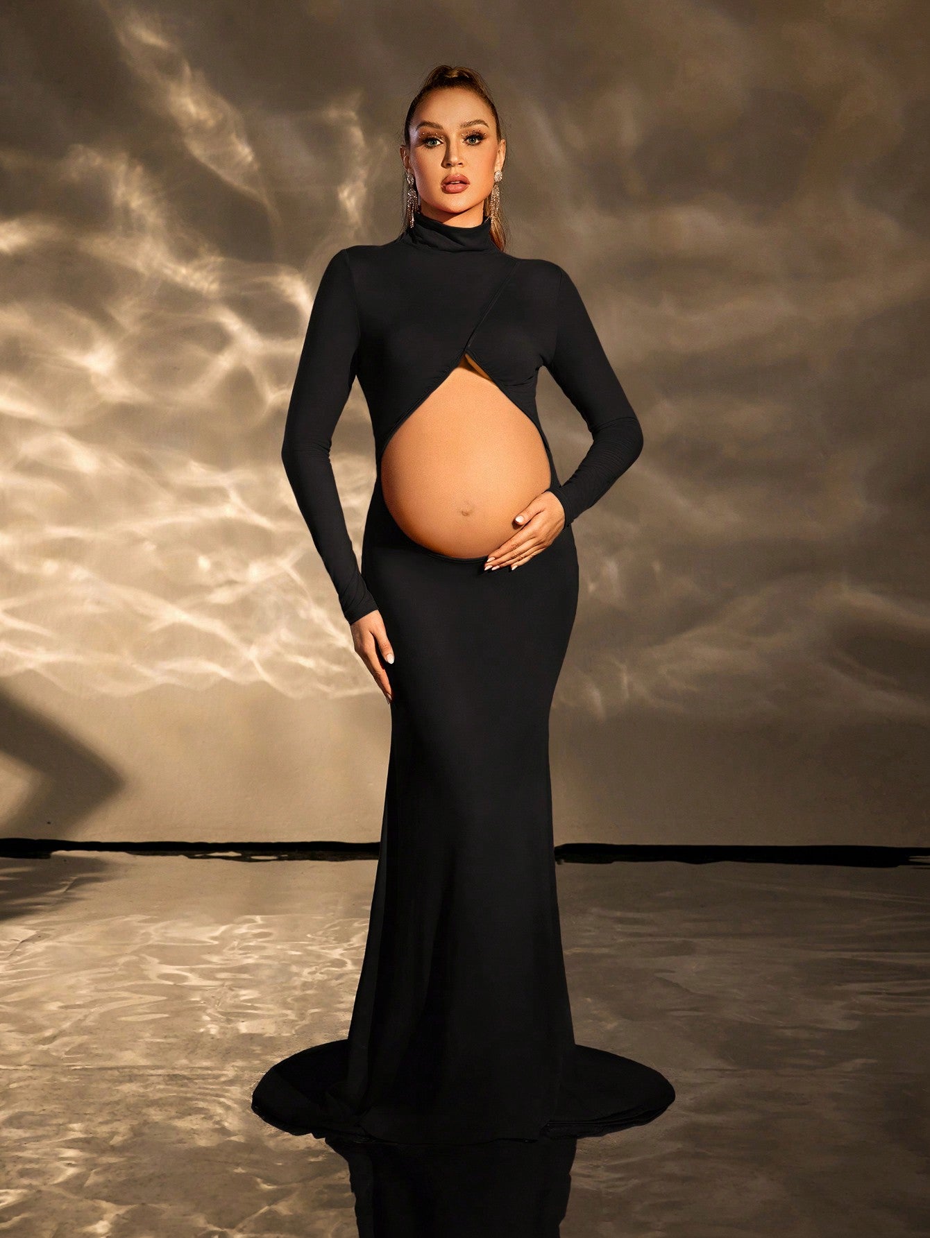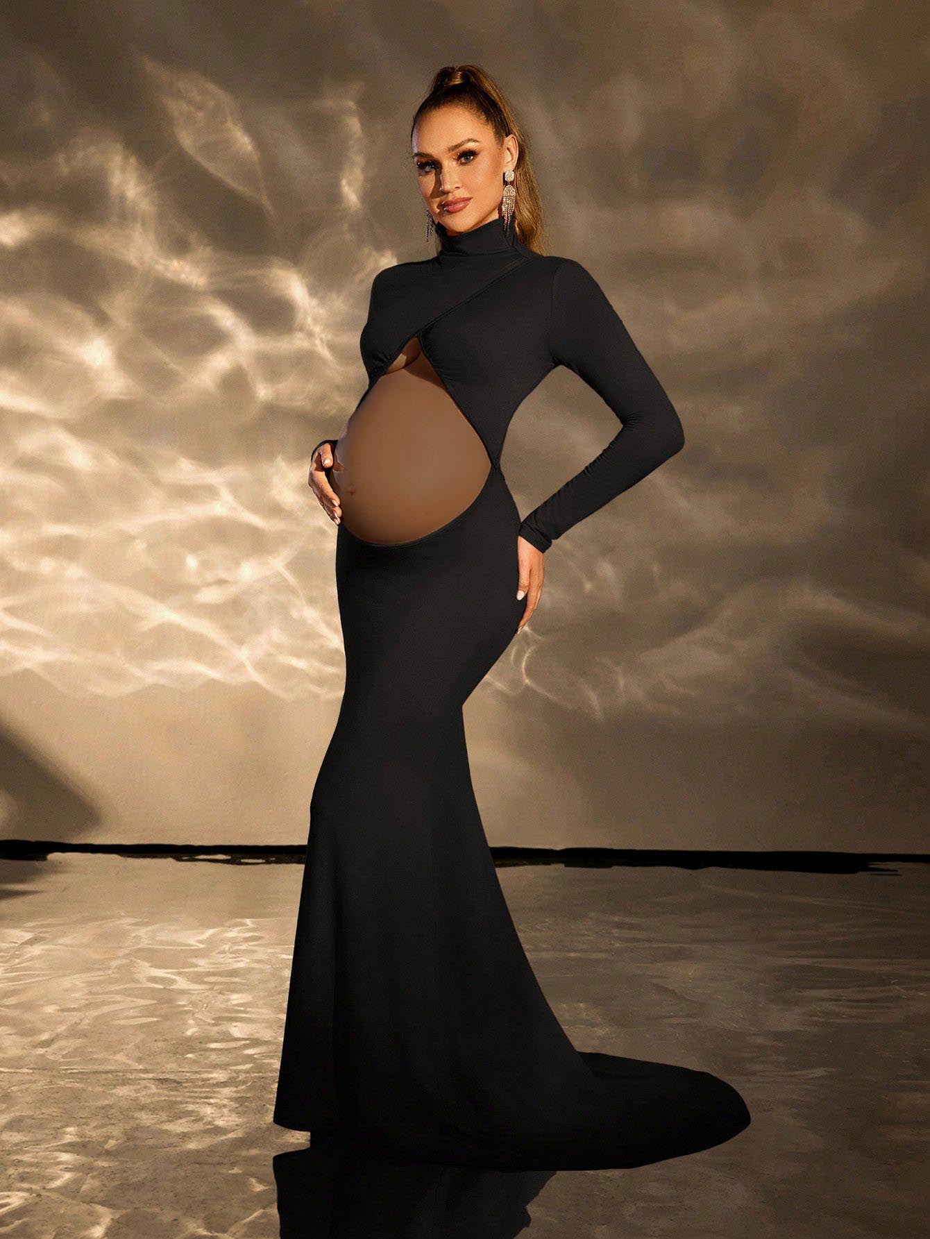 Cheriluna Maternity Pregnant Women High Neck Hollow Bodycon Long Sleeve Dress, Maternity Photoshoot