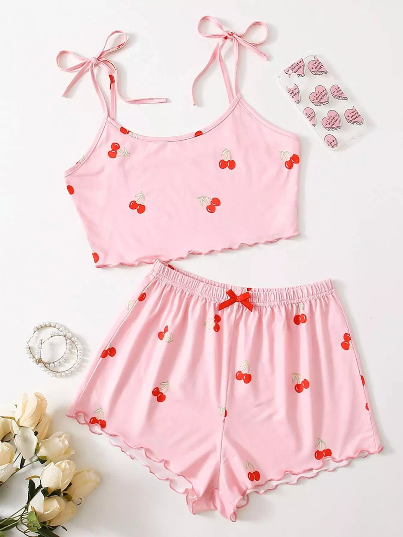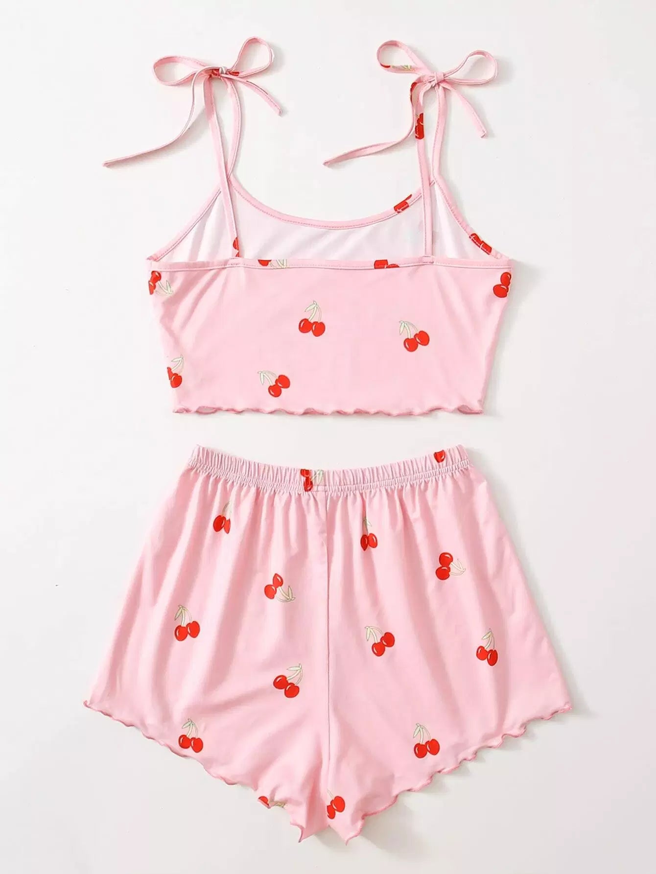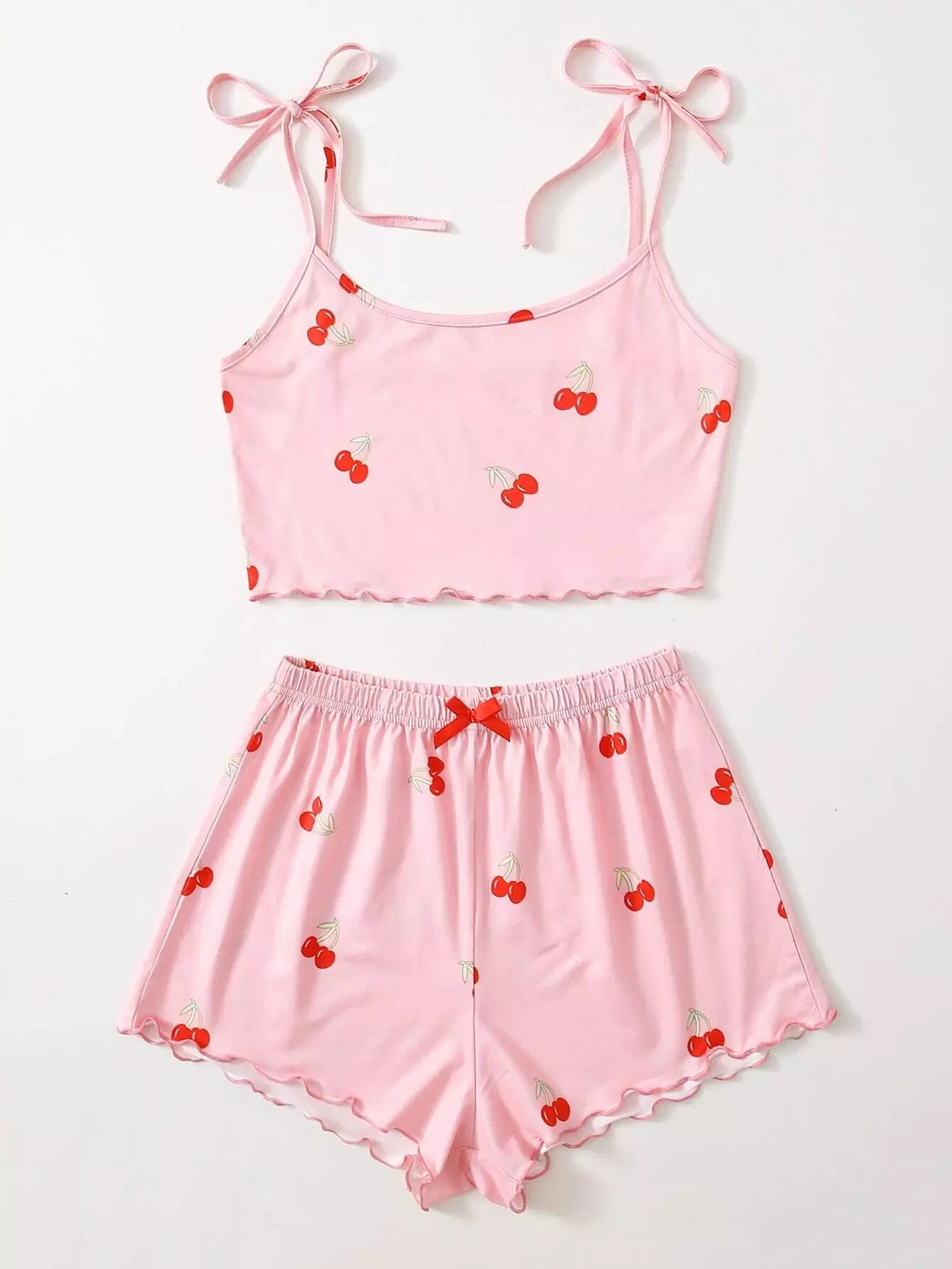 Cherry Print Lettuce Trim Top & Shorts PJ Set