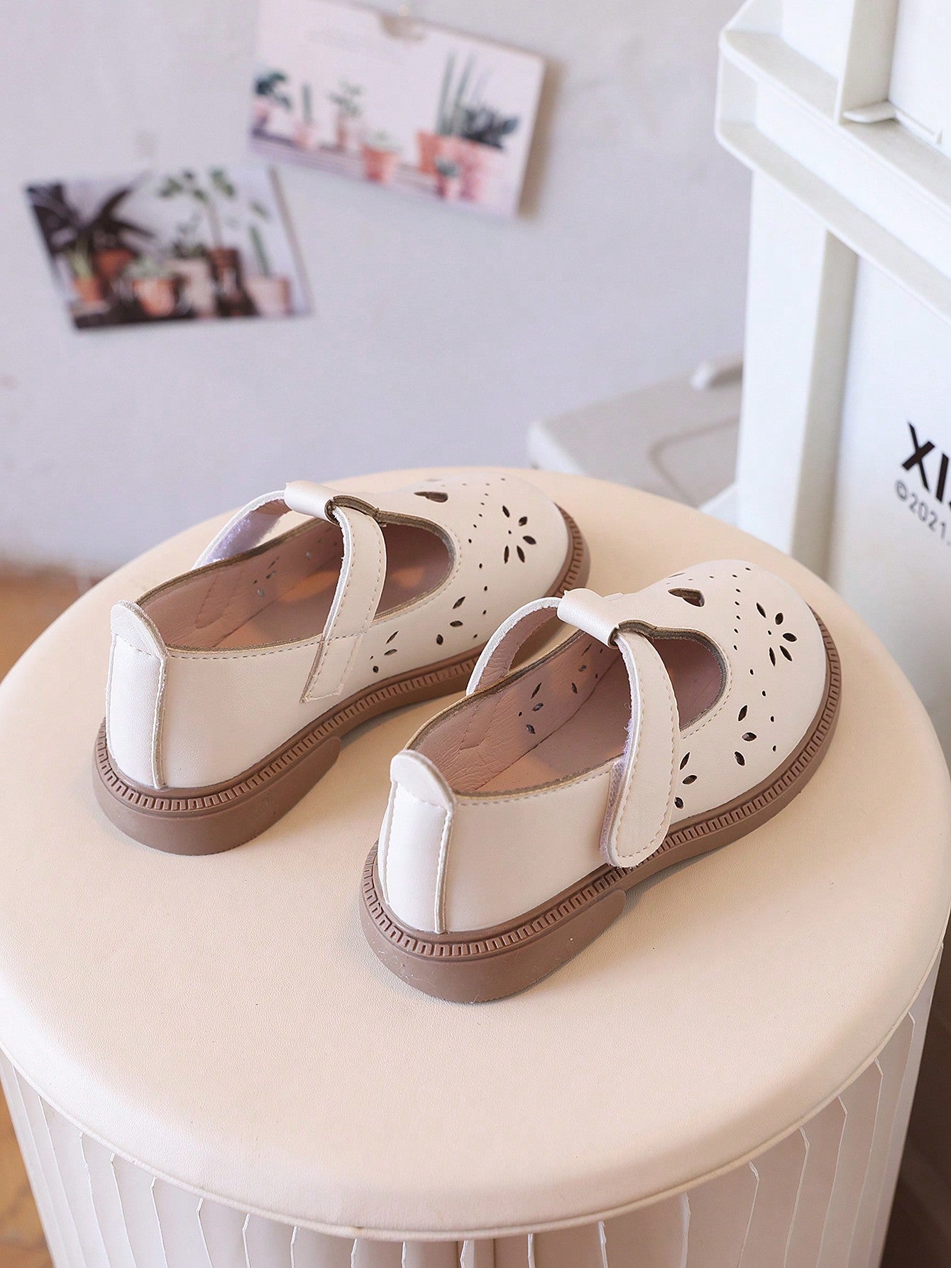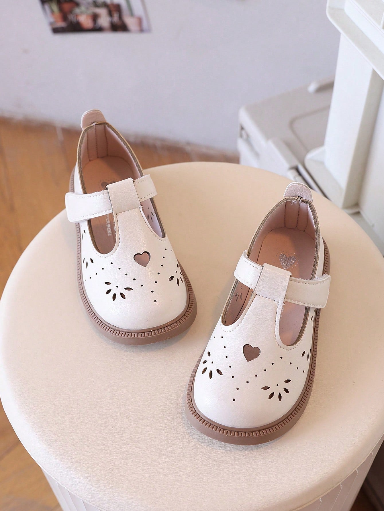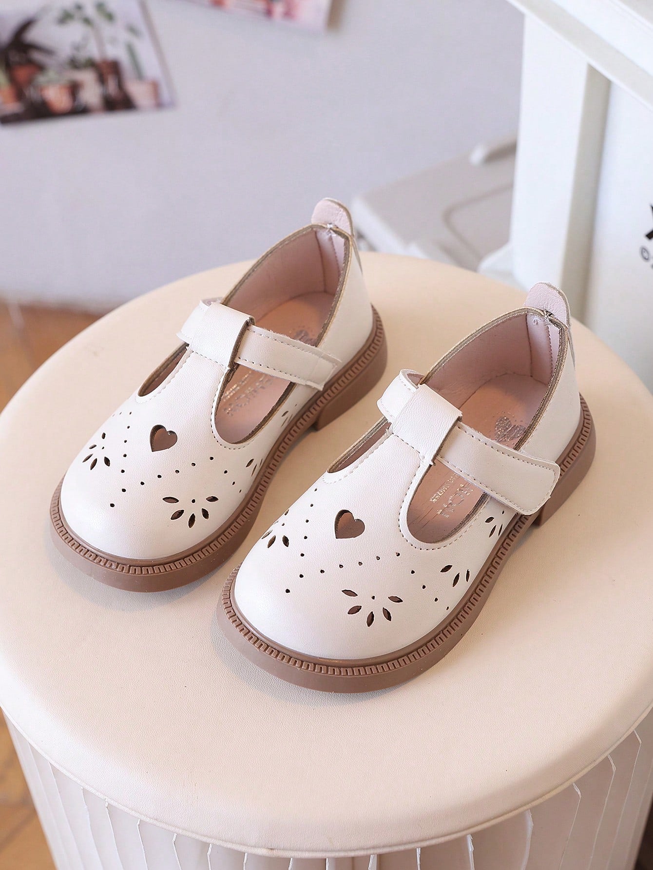 Children Brown Leather Shoes -Toddler Girls Beige Flats