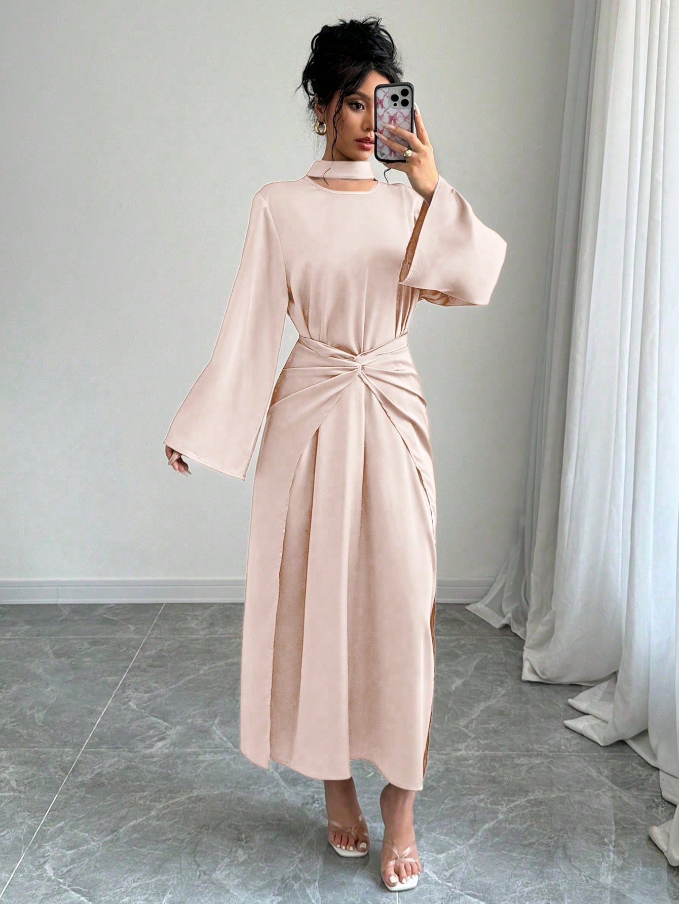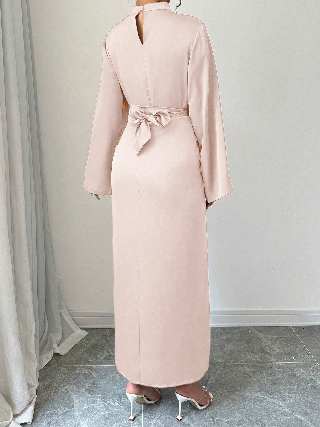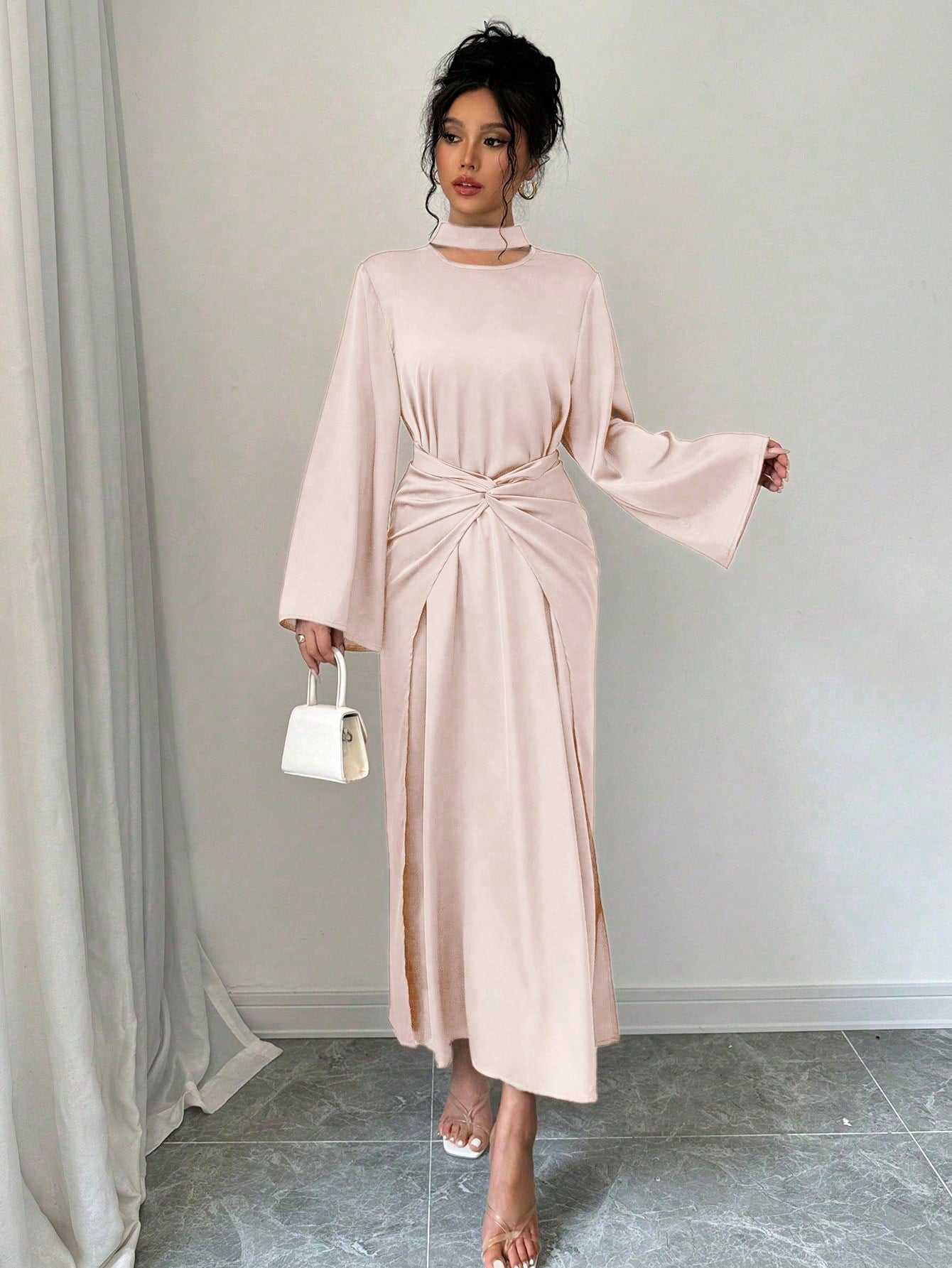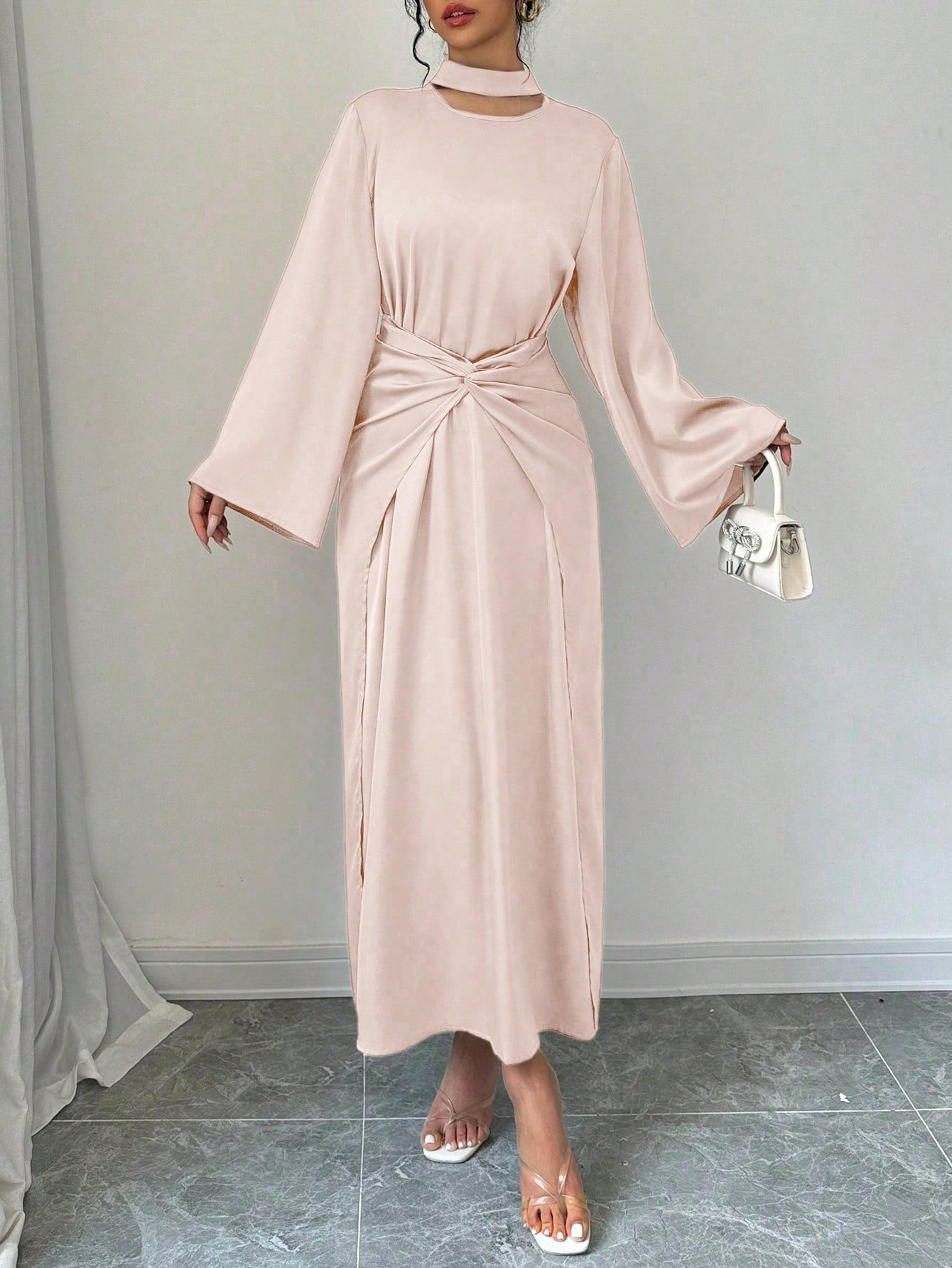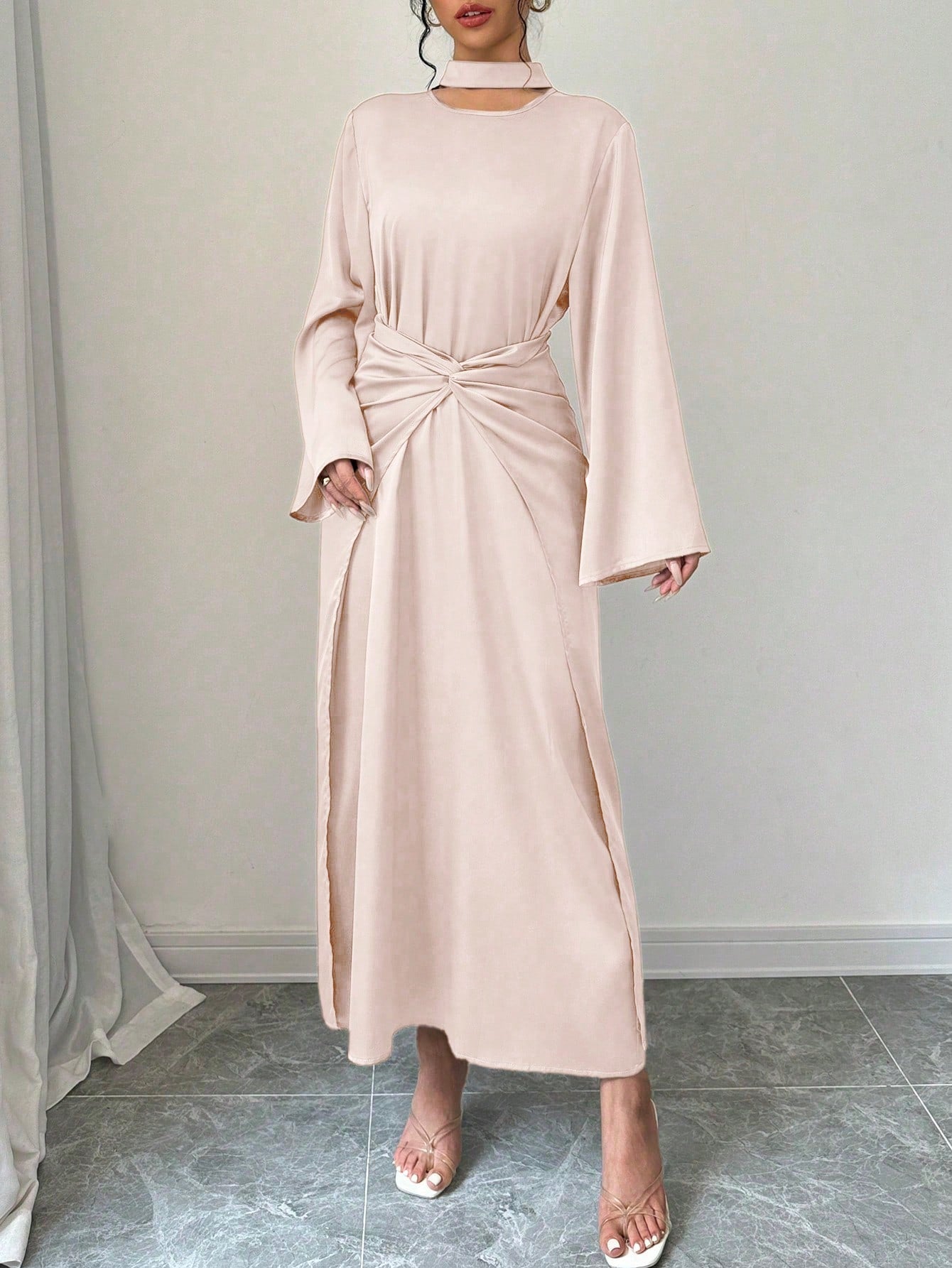 Chiquease Elegant Charming Round Neck Tie-Up Waist Dress