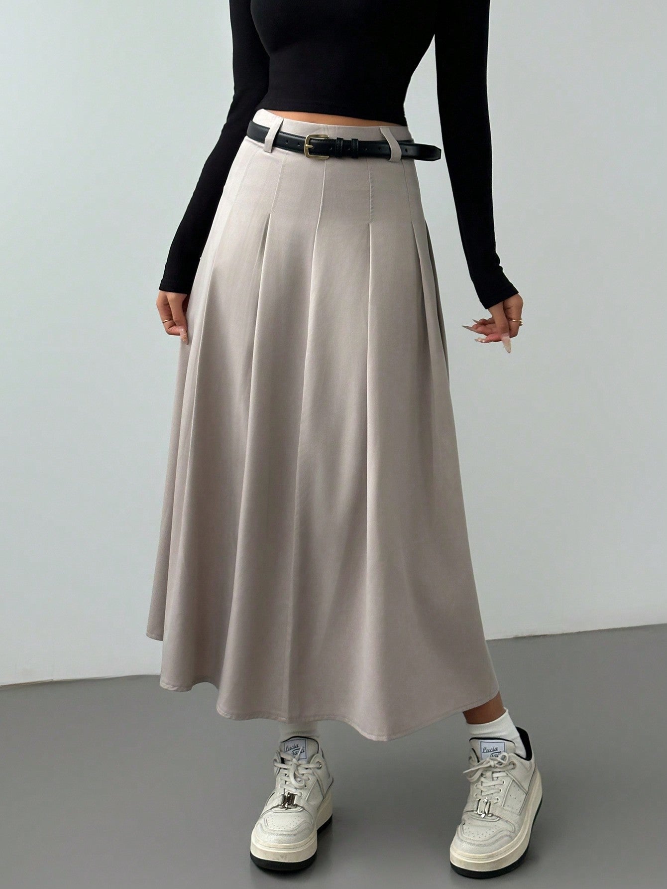Chiquease Spring & Autumn New High Waist A-Line Knee-Length Pleated Skirt Maxi Women Outfit
