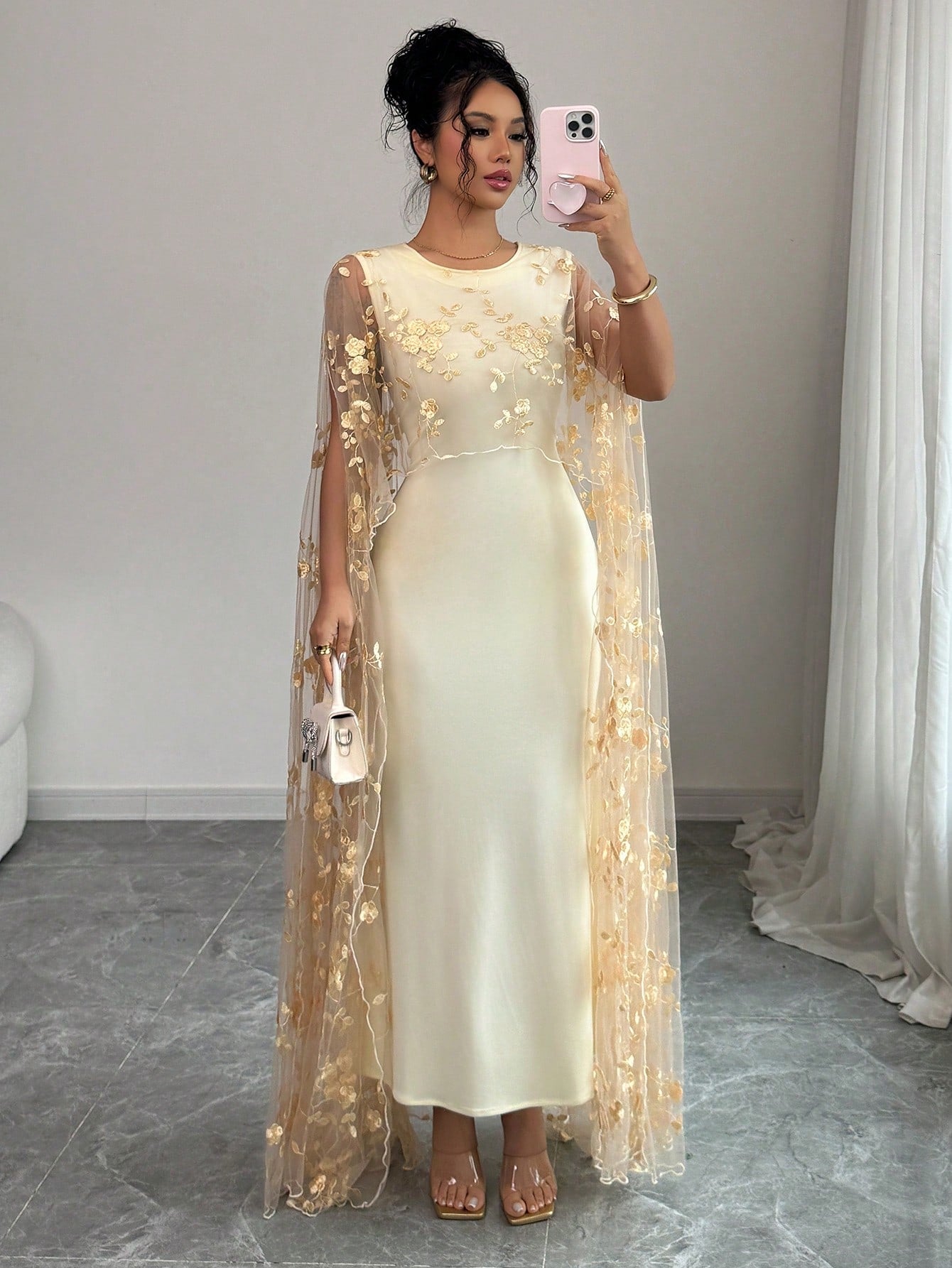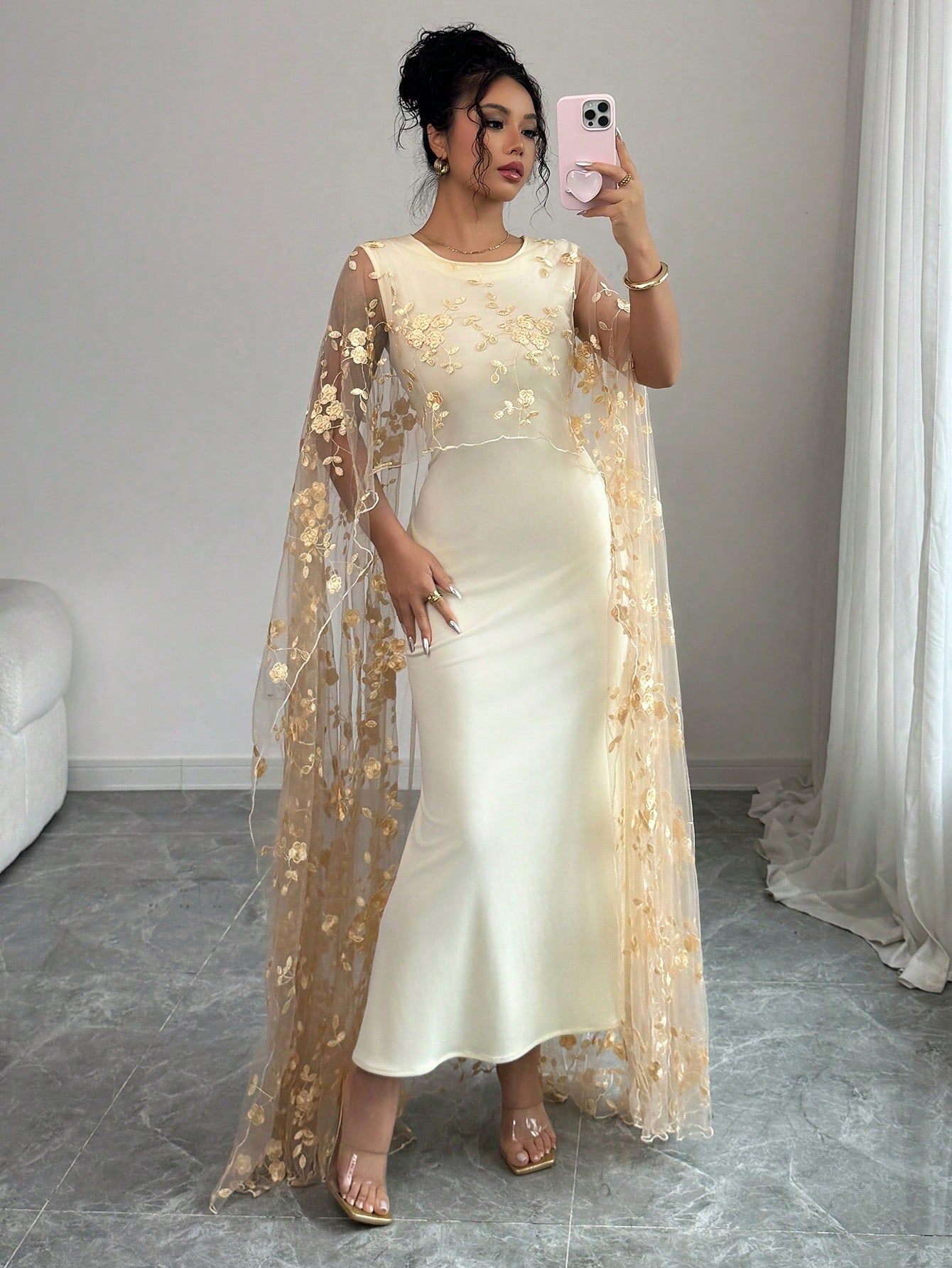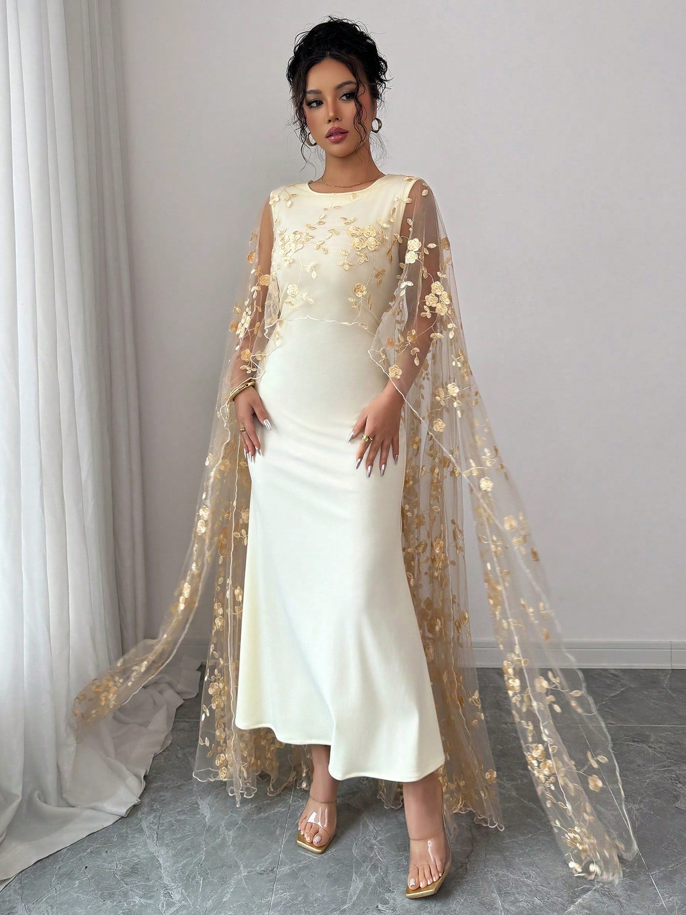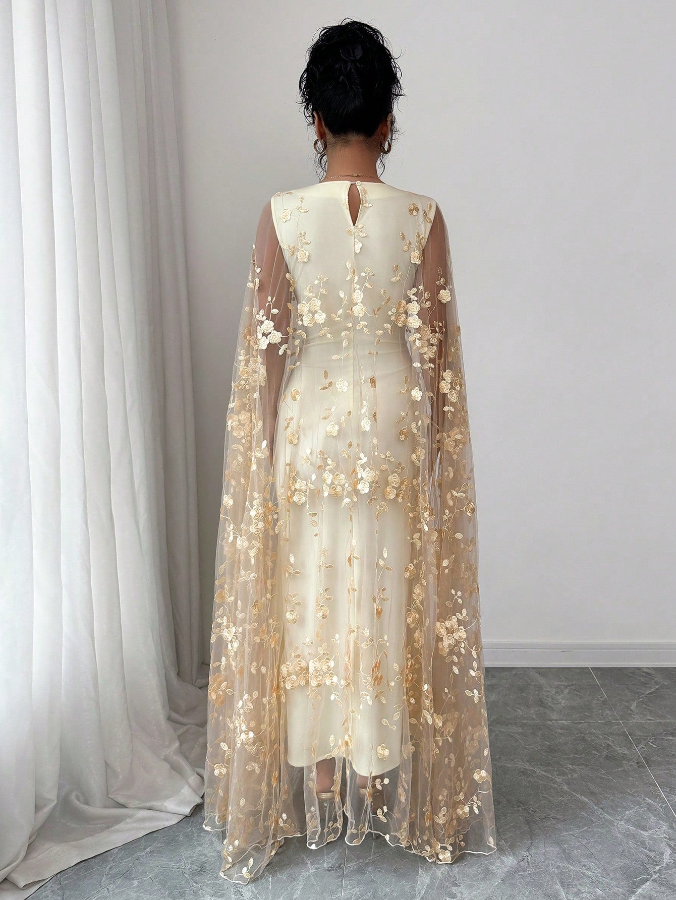 Chiquease Women's Elegant Embroidered Shawl Dress Fall Cloth For Women