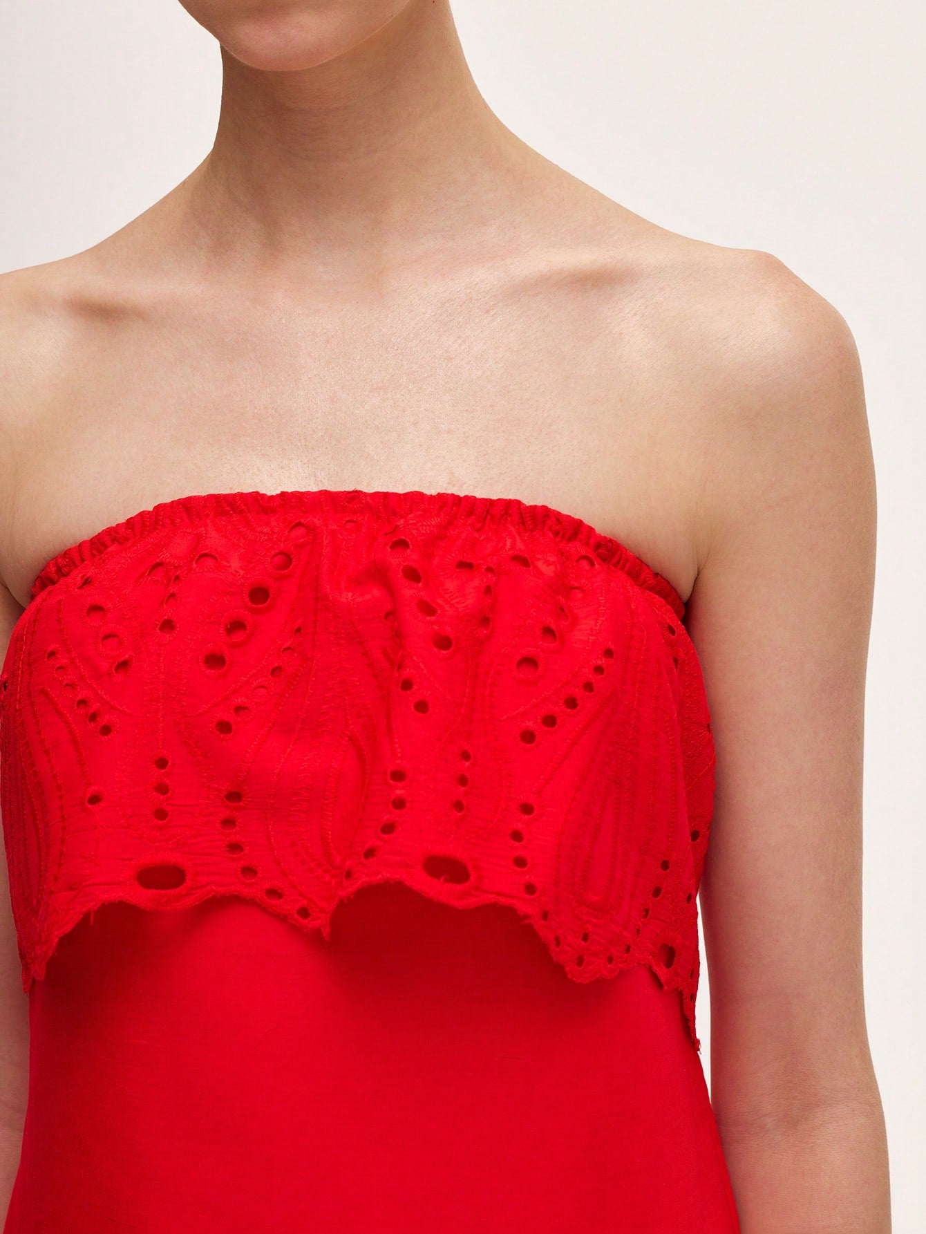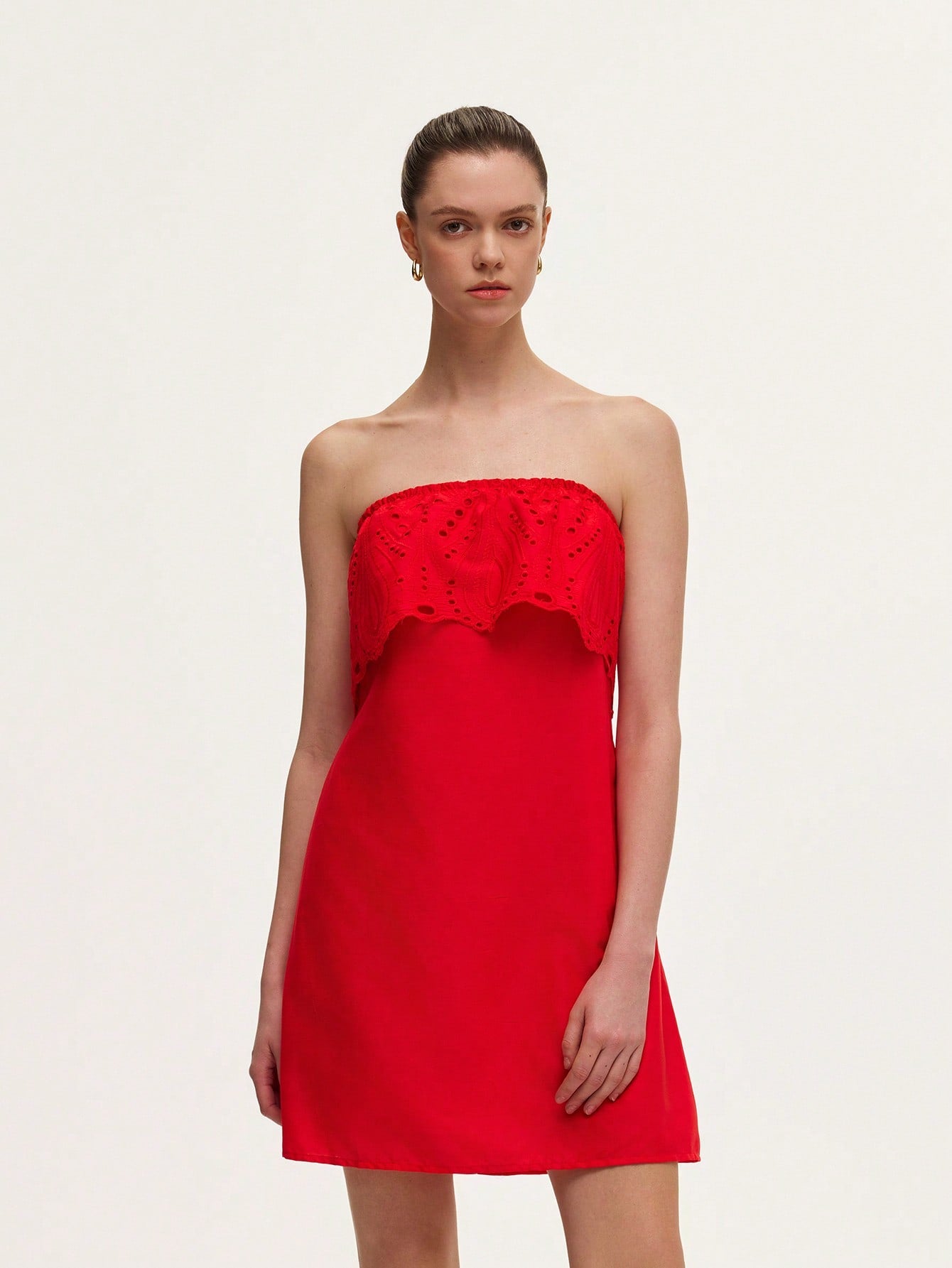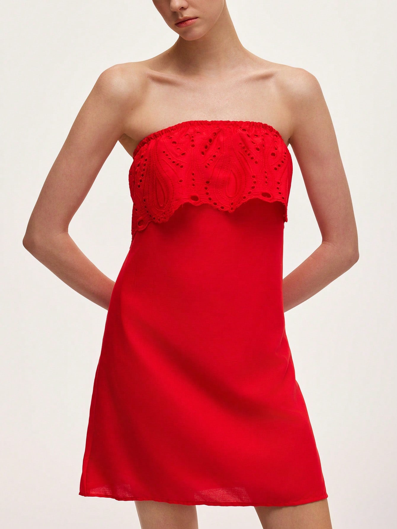 Chiquease Women's Solid Color Hollow Embroidery Camisole Sleeveless Elegant Vacation Comfortable Dress