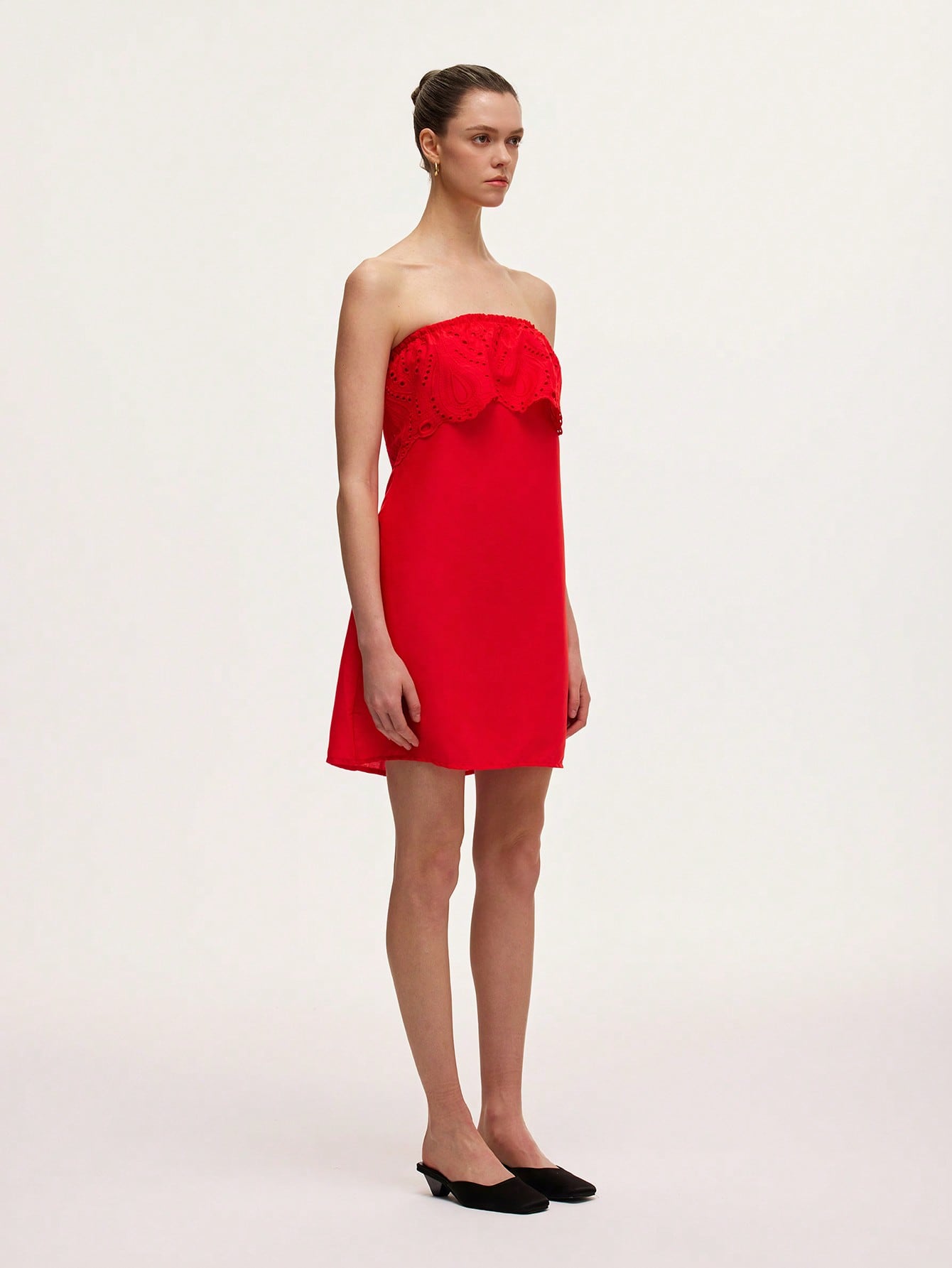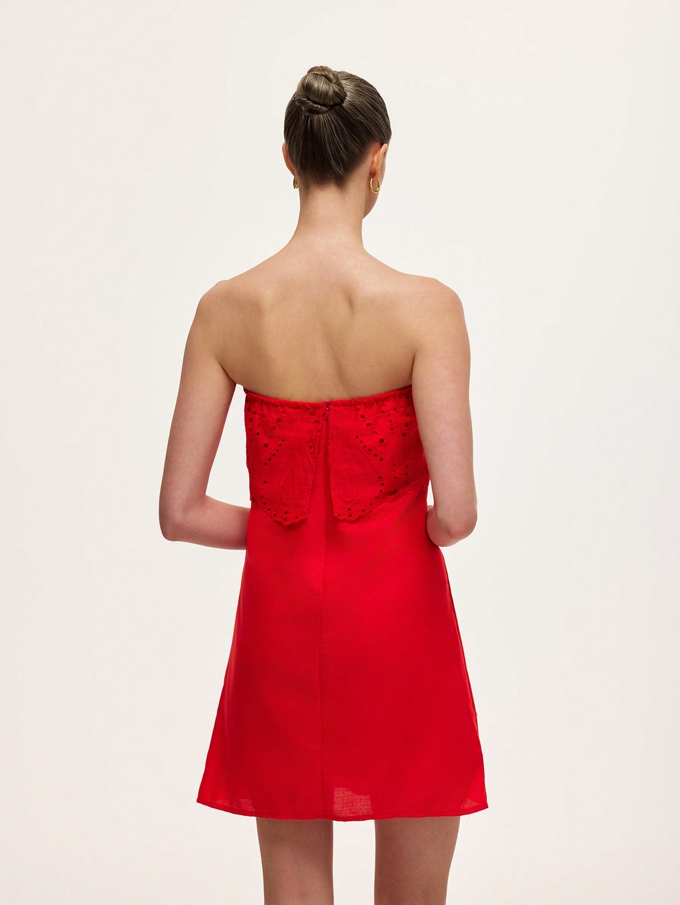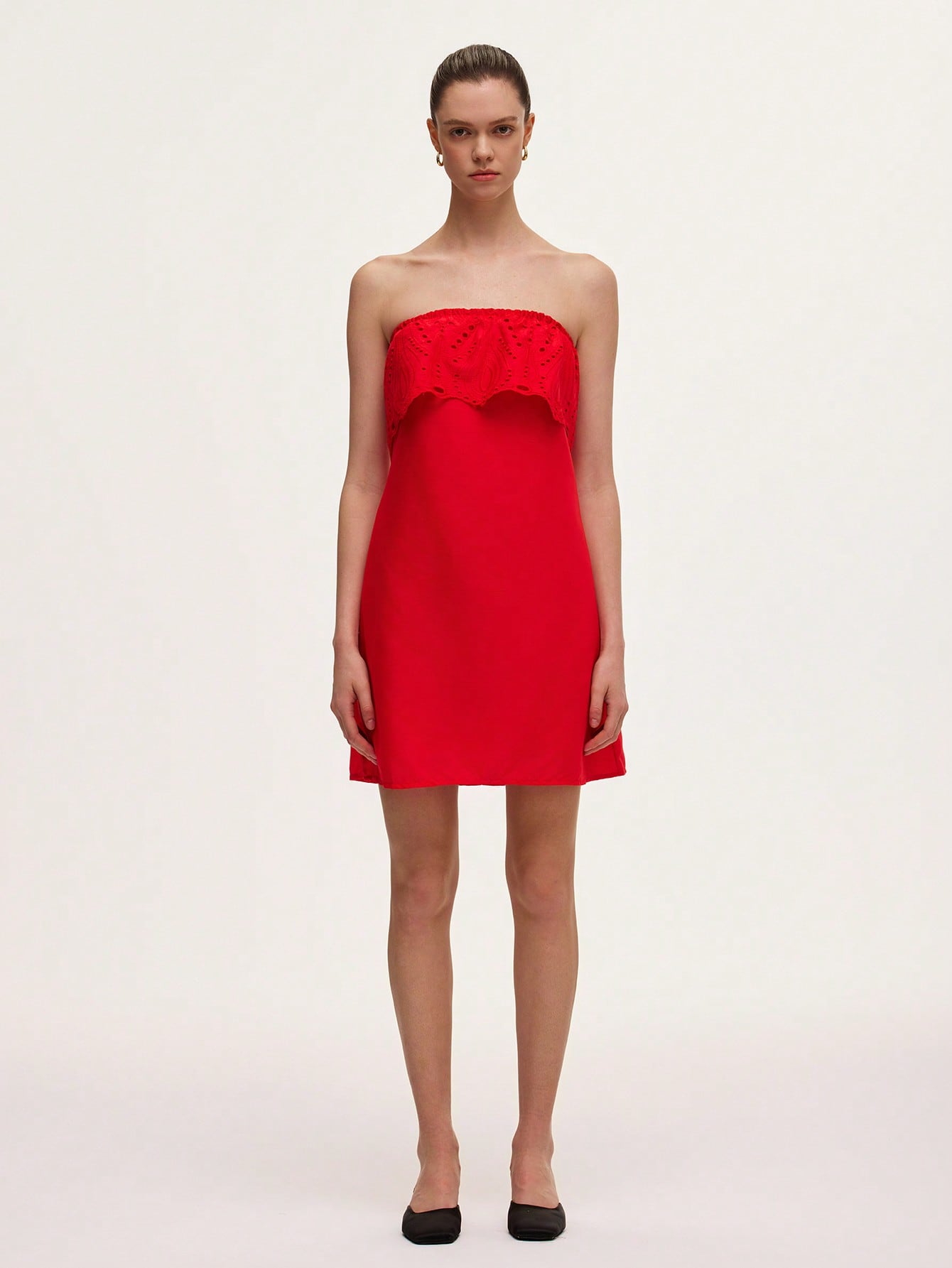 Chiquease Women's Solid Color Hollow Embroidery Camisole Sleeveless Elegant Vacation Comfortable Dress