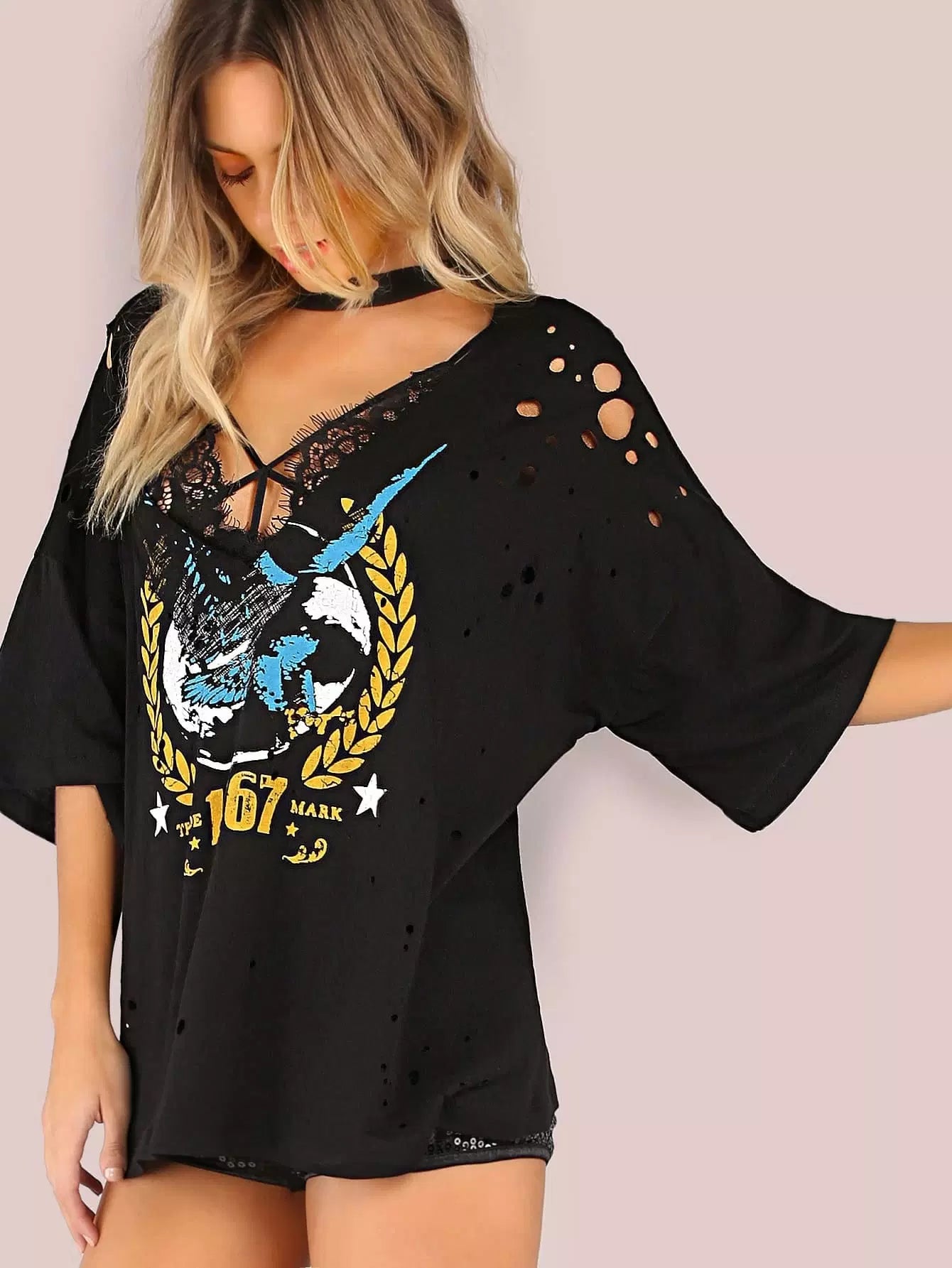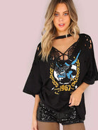 Choker Neck Letter Graphic Boyfriend Tee