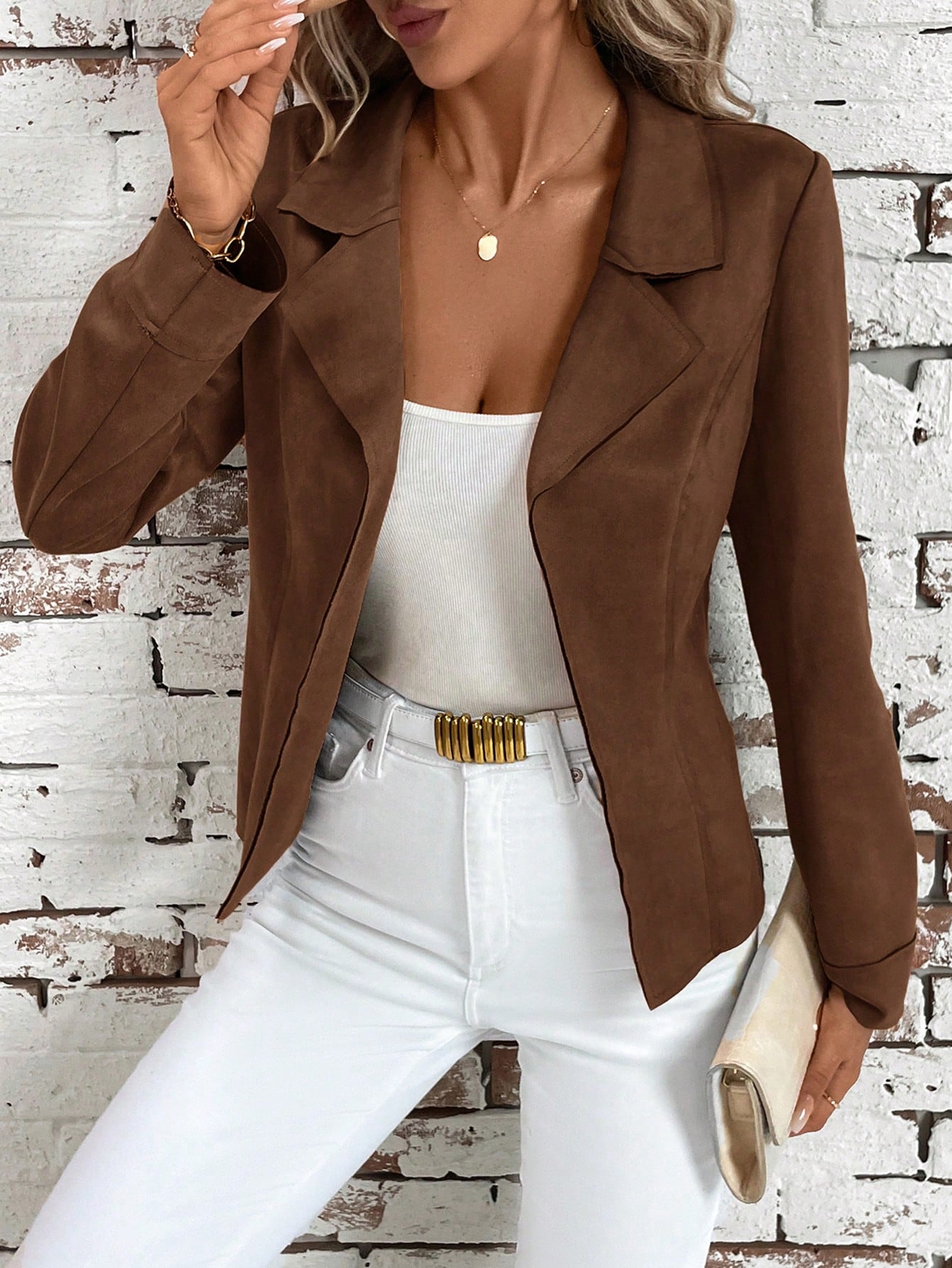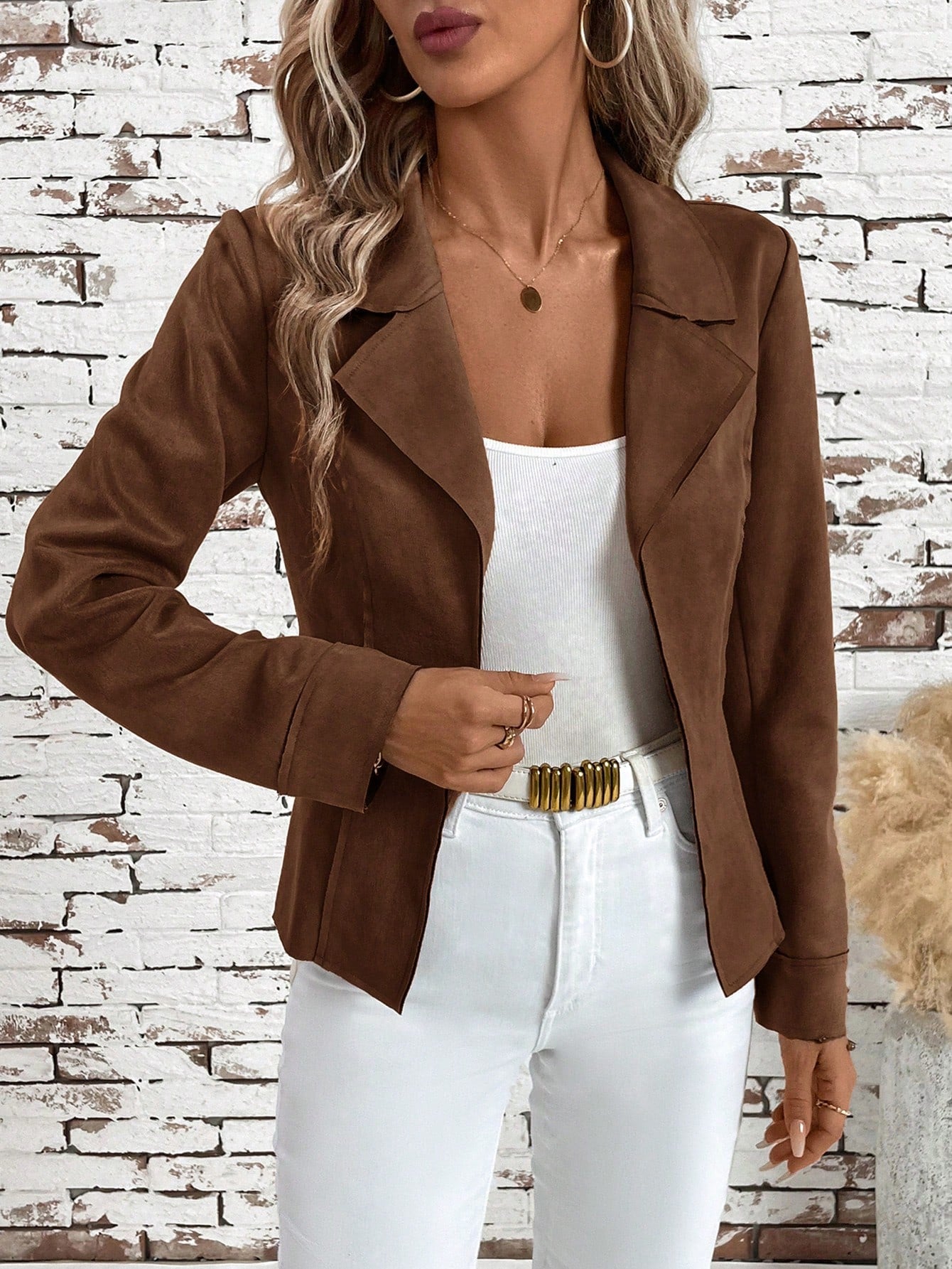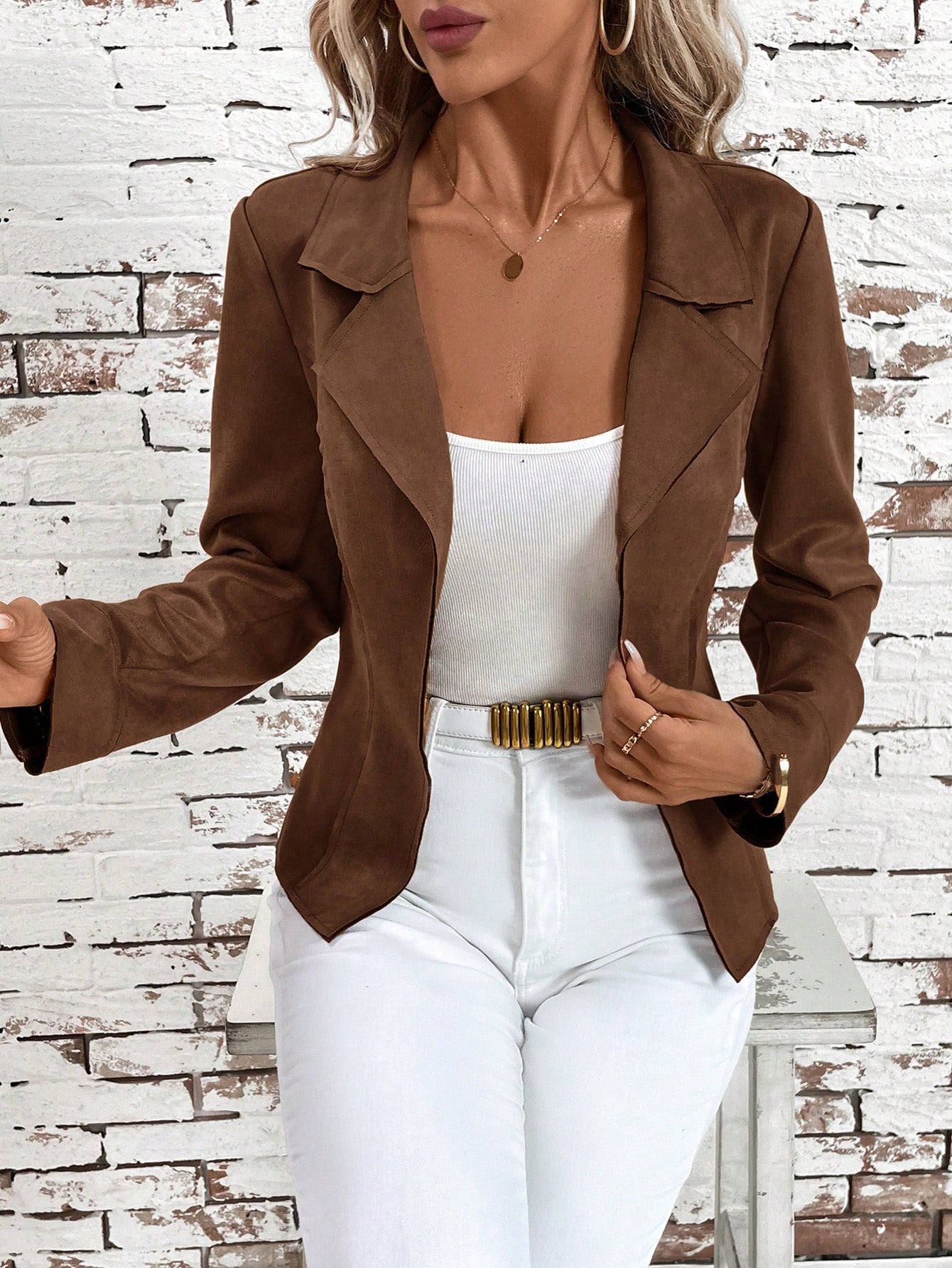Clasi 1pc Women Elegant Lapel Waistline Faux Suede Jacket In Fall/Winter