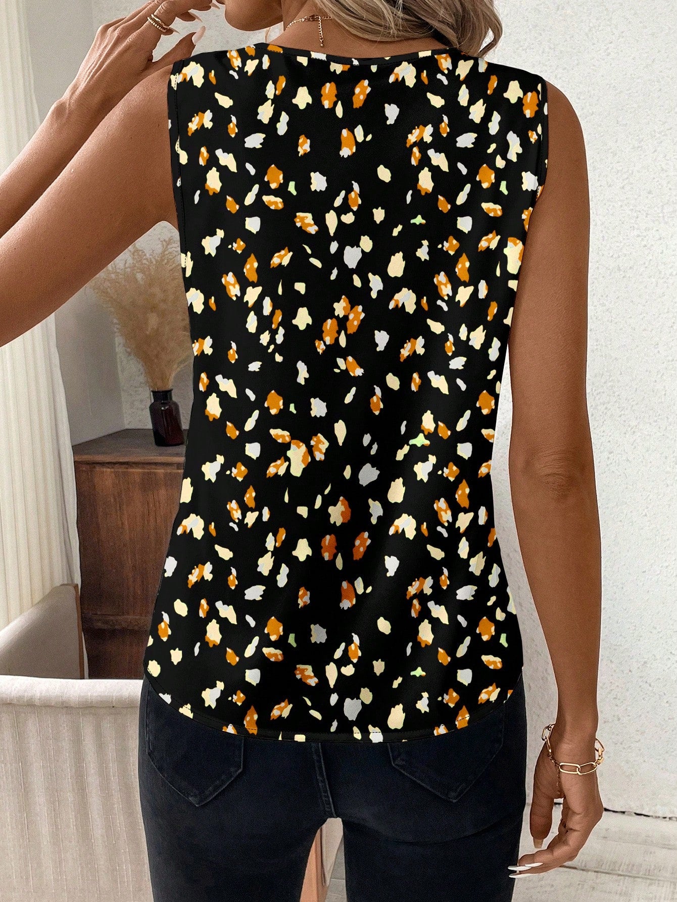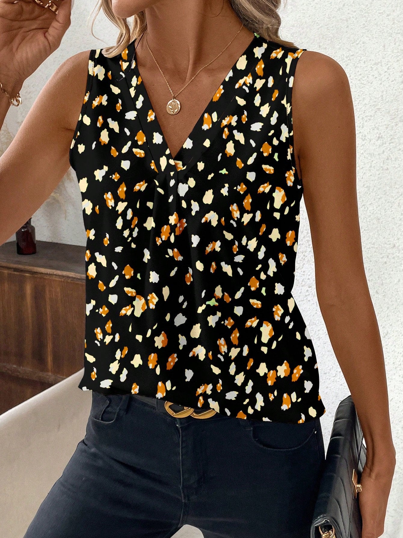 Clasi Casual V-Neck Polka Dot Pattern Tank Top For Women